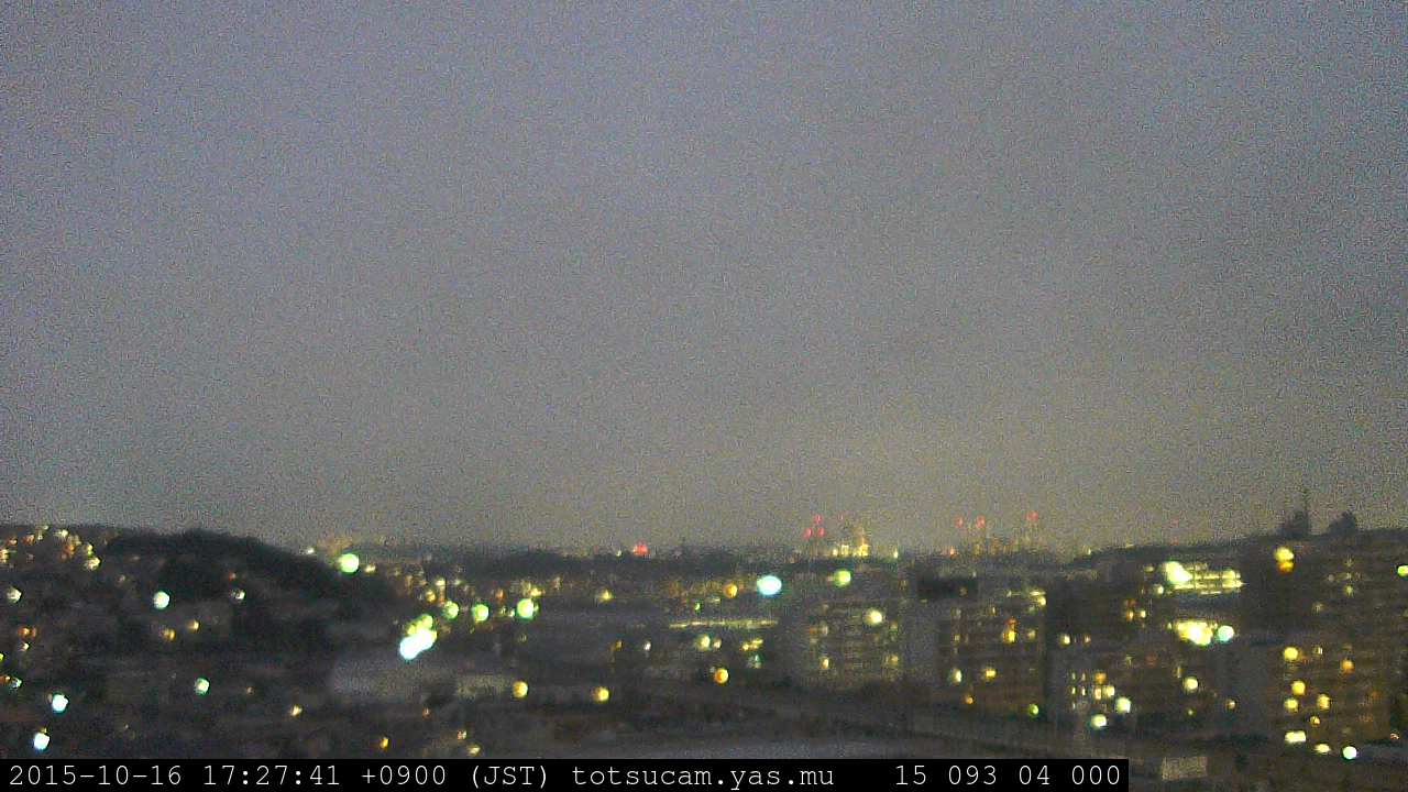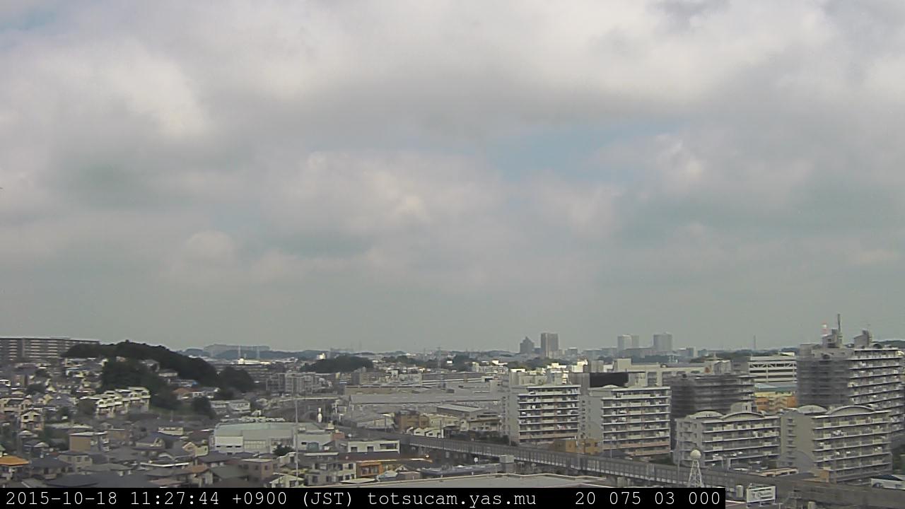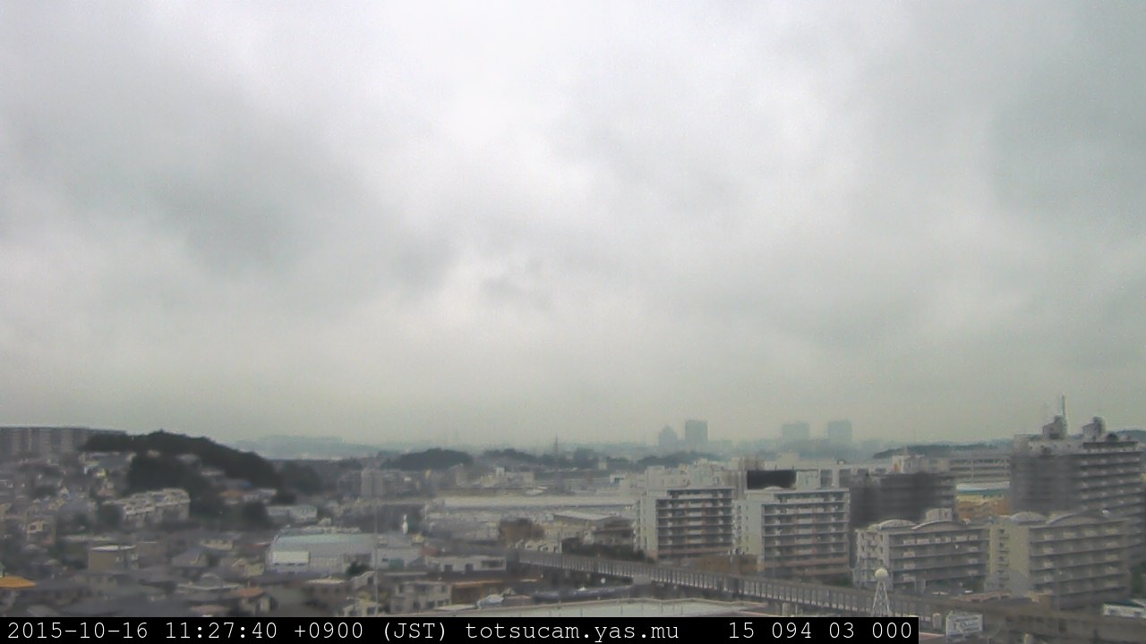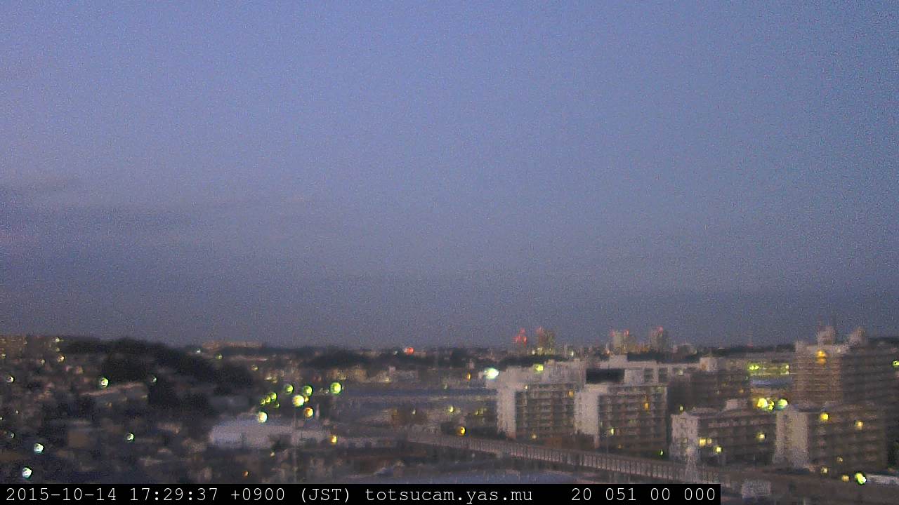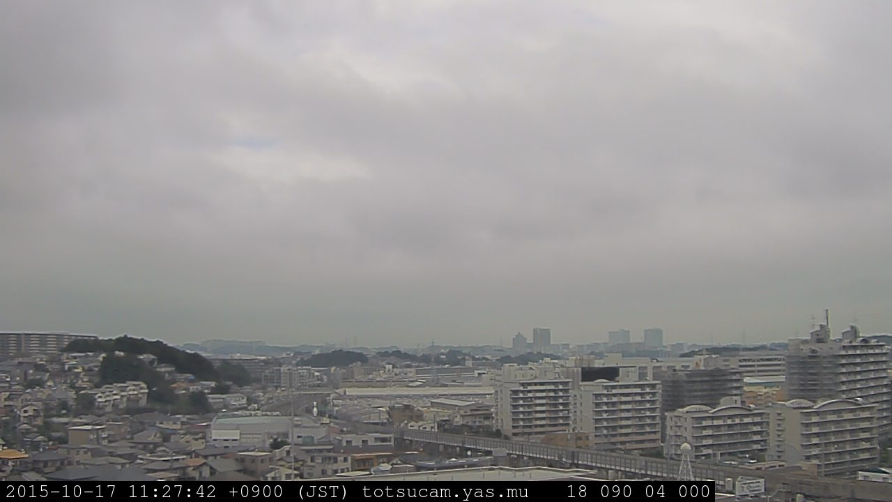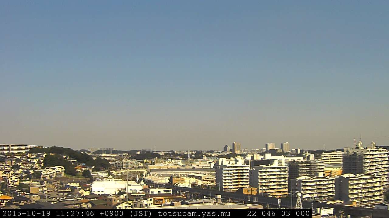 適度に曇った日の雲の動き (例: 2005-10-24) がとても楽しめます。 正面を横切っている高架は横須賀線下りです。 その下に横須賀線上り、東海道線、同貨物線が走っていますが、 高架に隠れていてよく見えません。 夜間は特に中央左寄りの車の動きがよく見えます。