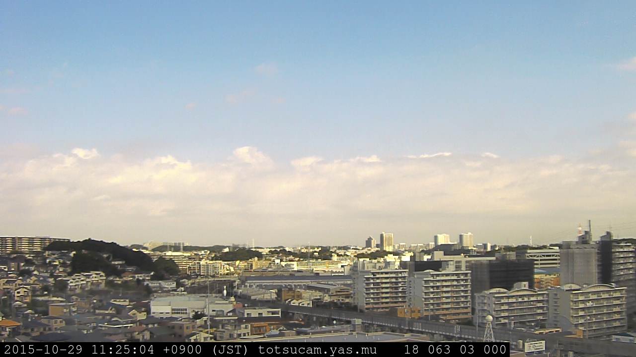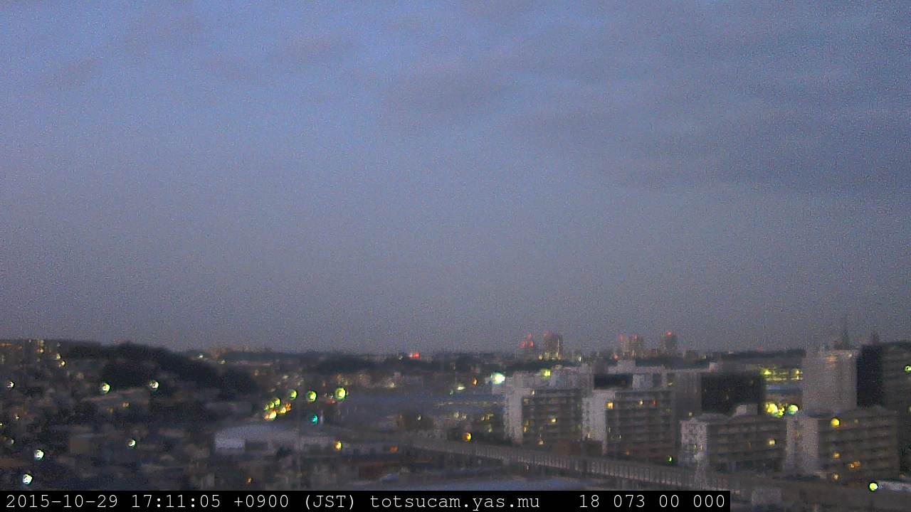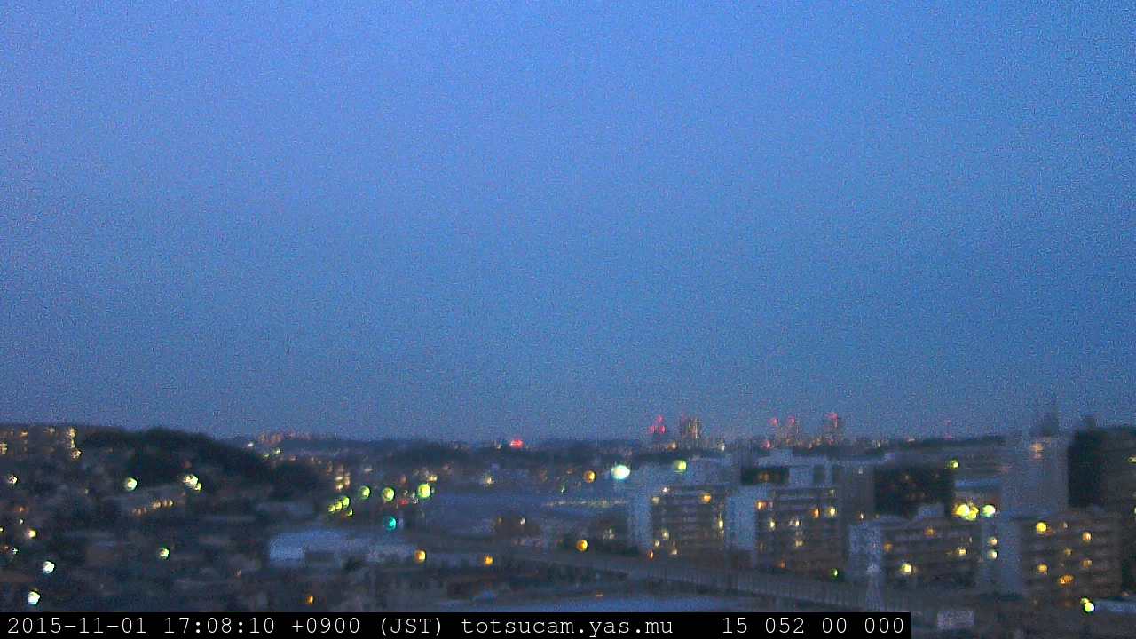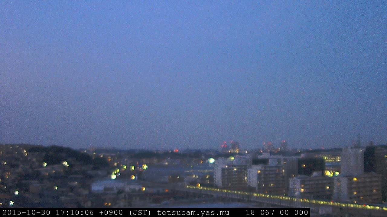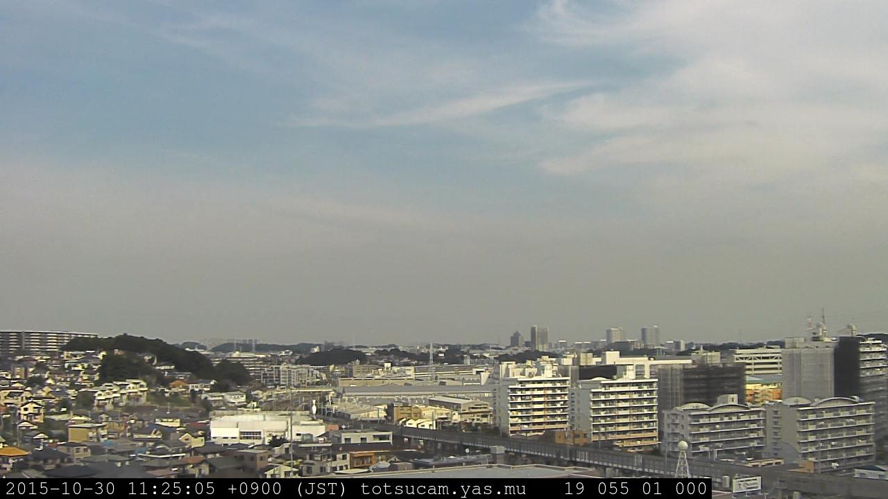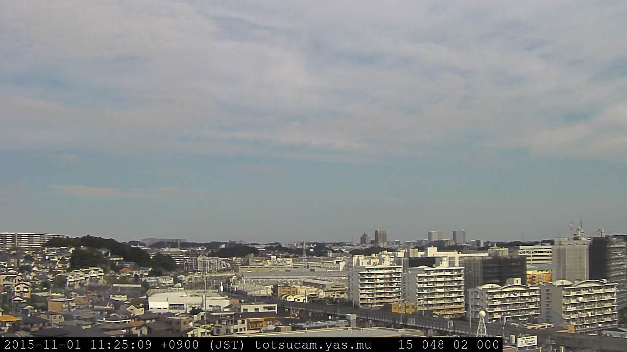 適度に曇った日の雲の動き (例: 2005-10-24) がとても楽しめます。 正面を横切っている高架は横須賀線下りです。 その下に横須賀線上り、東海道線、同貨物線が走っていますが、 高架に隠れていてよく見えません。 夜間は特に中央左寄りの車の動きがよく見えます。