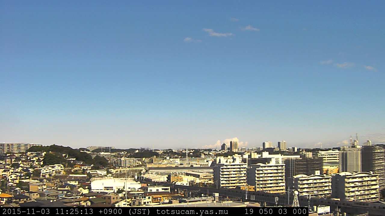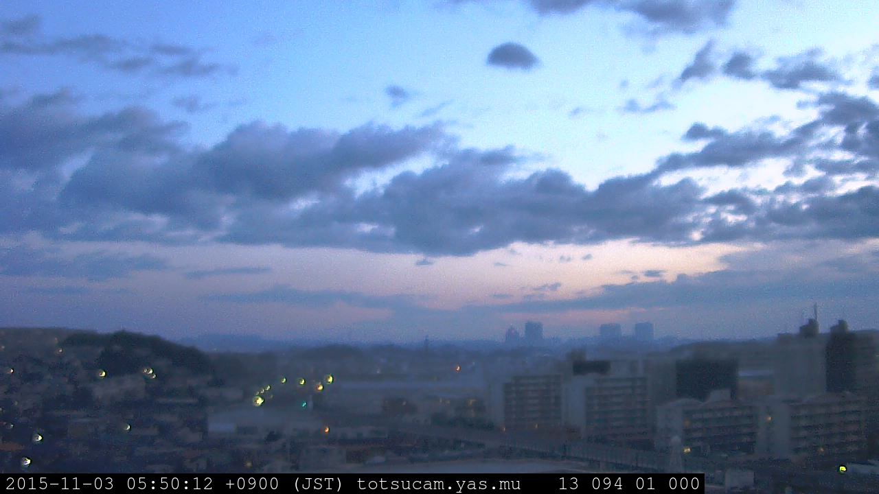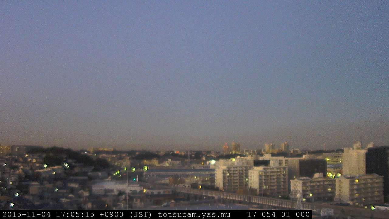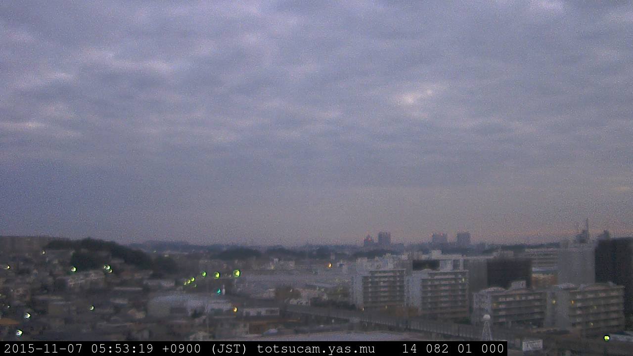横浜市戸塚駅周辺から 東戸塚方面(北北東)を望む展望カメラの映像です。 左は現在の映像です。 下に並んでいるのは、 7日間に亘る日の出どき、昼間、夕暮れどきの写真(サムネイル)です。 それぞれ、日の出15分前、南中時、日没20分後の写真となっています。 各写真の下にはmpeg形式の動画へのリンクがあります。 それぞれ、日の出、南中、日没の前後1時間の画像です。 右欄にはその日24時間の動画へのリンクがあります。 この7日間以外は日付が一覧表示されています。 日付部分をクリックすると、 その日付から7日分が展開されて表示されます。