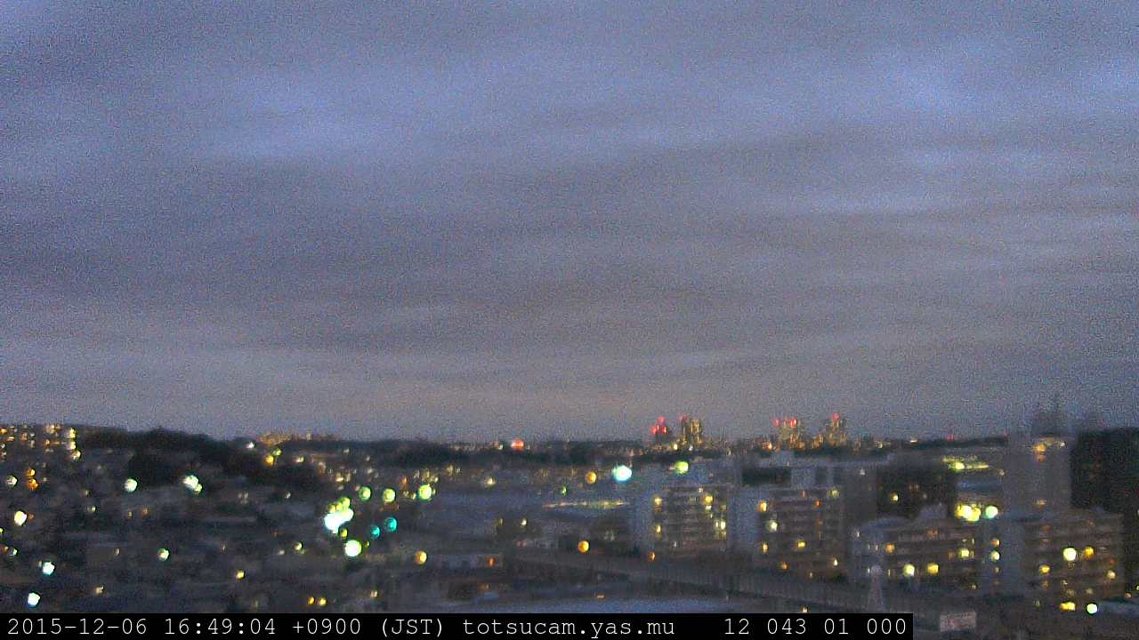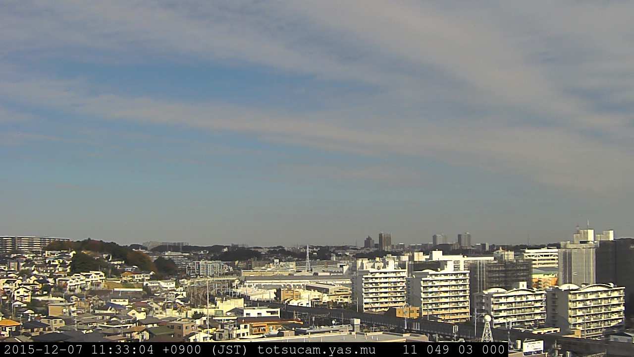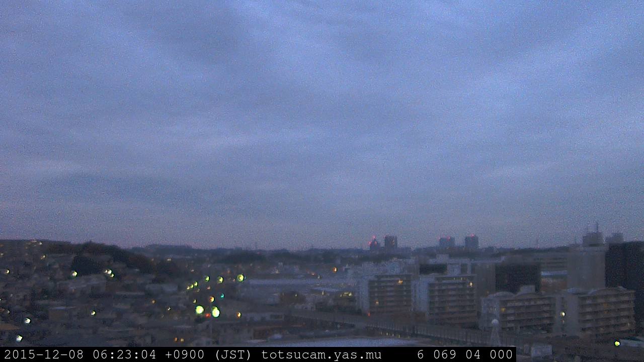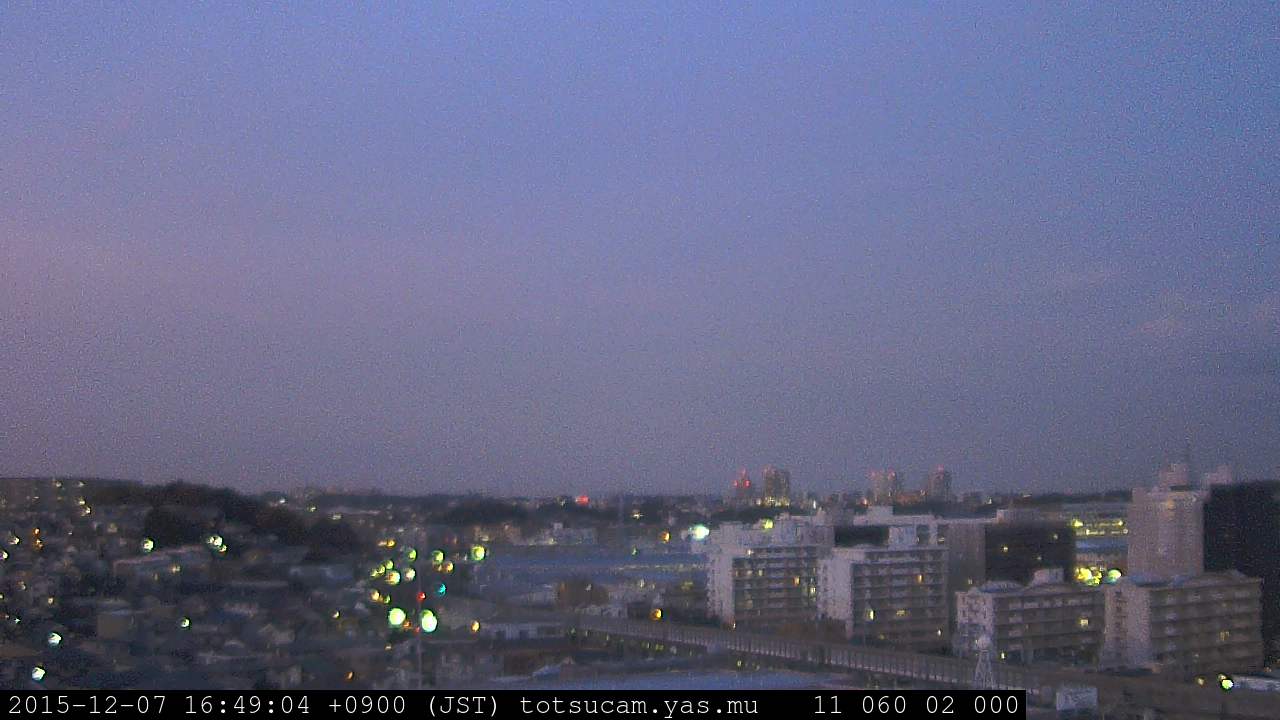 横浜市戸塚駅周辺から 東戸塚方面(北北東)を望む展望カメラの映像です。 左は現在の映像です。 下に並んでいるのは、 7日間に亘る日の出どき、昼間、夕暮れどきの写真(サムネイル)です。 それぞれ、日の出15分前、南中時、日没20分後の写真となっています。 各写真の下にはmpeg形式の動画へのリンクがあります。 それぞれ、日の出、南中、日没の前後1時間の画像です。 右欄にはその日24時間の動画へのリンクがあります。 この7日間以外は日付が一覧表示されています。 日付部分をクリックすると、 その日付から7日分が展開されて表示されます。
