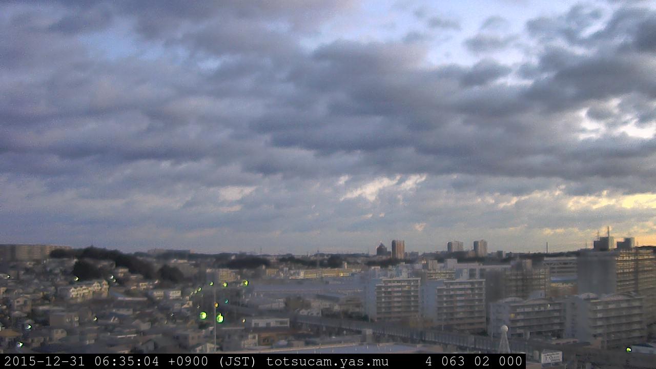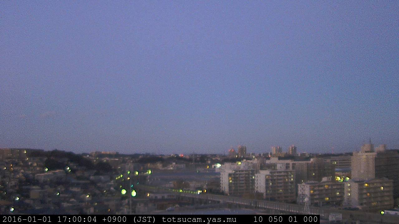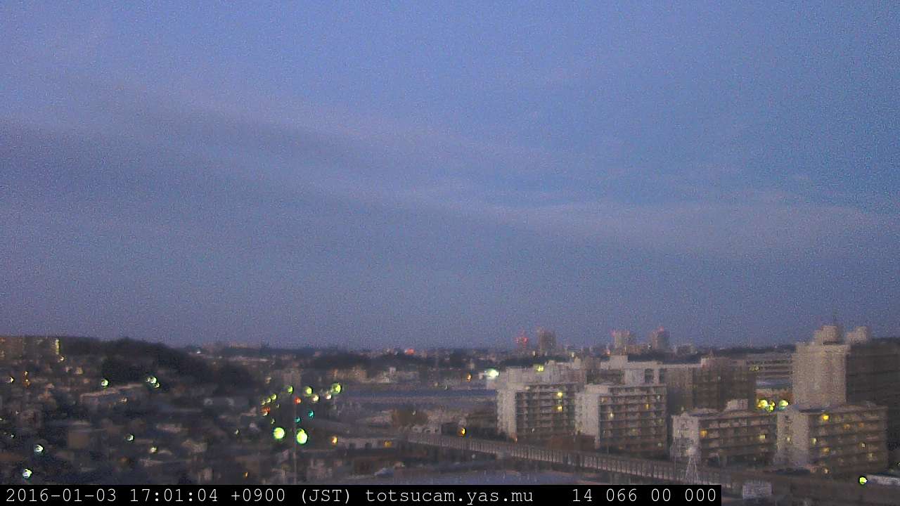 横浜市戸塚駅周辺から 東戸塚方面(北北東)を望む展望カメラの映像です。 左は現在の映像です。 下に並んでいるのは、 7日間に亘る日の出どき、昼間、夕暮れどきの写真(サムネイル)です。 それぞれ、日の出15分前、南中時、日没20分後の写真となっています。 各写真の下にはmpeg形式の動画へのリンクがあります。 それぞれ、日の出、南中、日没の前後1時間の画像です。 右欄にはその日24時間の動画へのリンクがあります。 この7日間以外は日付が一覧表示されています。 日付部分をクリックすると、 その日付から7日分が展開されて表示されます。