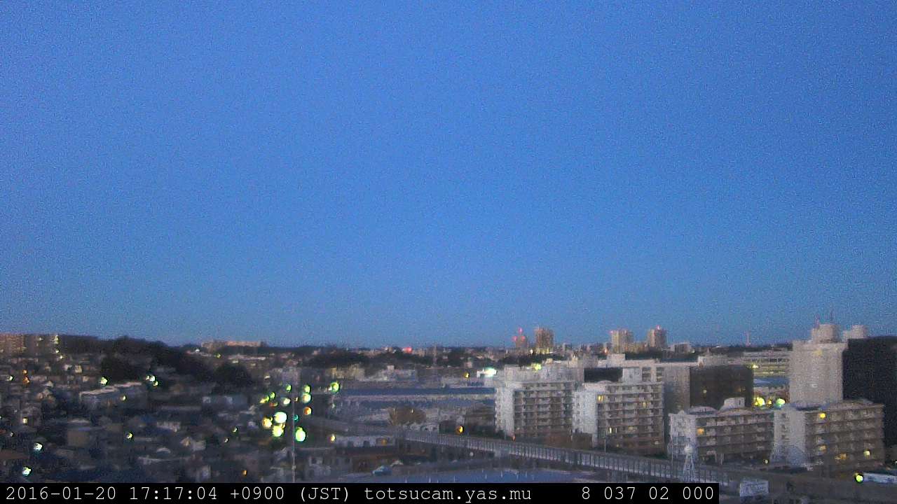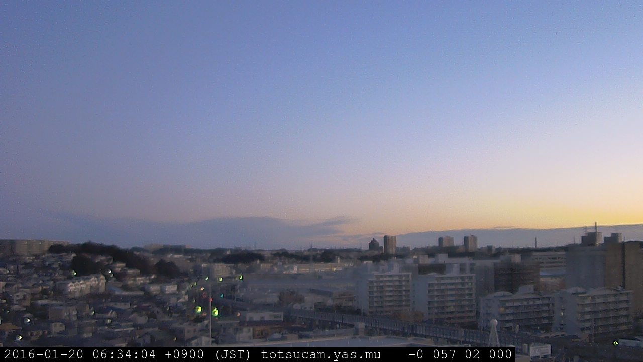 横浜市戸塚駅周辺から 東戸塚方面(北北東)を望む展望カメラの映像です。 左は現在の映像です。 下に並んでいるのは、 7日間に亘る日の出どき、昼間、夕暮れどきの写真(サムネイル)です。 それぞれ、日の出15分前、南中時、日没20分後の写真となっています。 各写真の下にはmpeg形式の動画へのリンクがあります。 それぞれ、日の出、南中、日没の前後1時間の画像です。 右欄にはその日24時間の動画へのリンクがあります。 この7日間以外は日付が一覧表示されています。 日付部分をクリックすると、 その日付から7日分が展開されて表示されます。