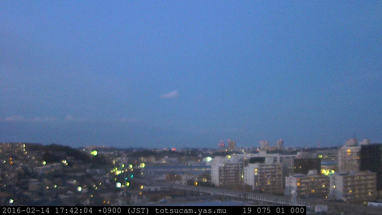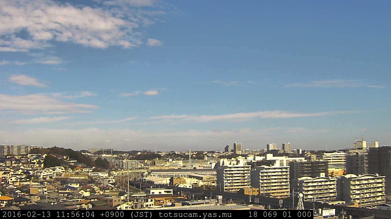 横浜市戸塚駅周辺から 東戸塚方面(北北東)を望む展望カメラの映像です。 左は現在の映像です。 下に並んでいるのは、 7日間に亘る日の出どき、昼間、夕暮れどきの写真(サムネイル)です。 それぞれ、日の出15分前、南中時、日没20分後の写真となっています。 各写真の下にはmpeg形式の動画へのリンクがあります。 それぞれ、日の出、南中、日没の前後1時間の画像です。 右欄にはその日24時間の動画へのリンクがあります。 この7日間以外は日付が一覧表示されています。 日付部分をクリックすると、 その日付から7日分が展開されて表示されます。