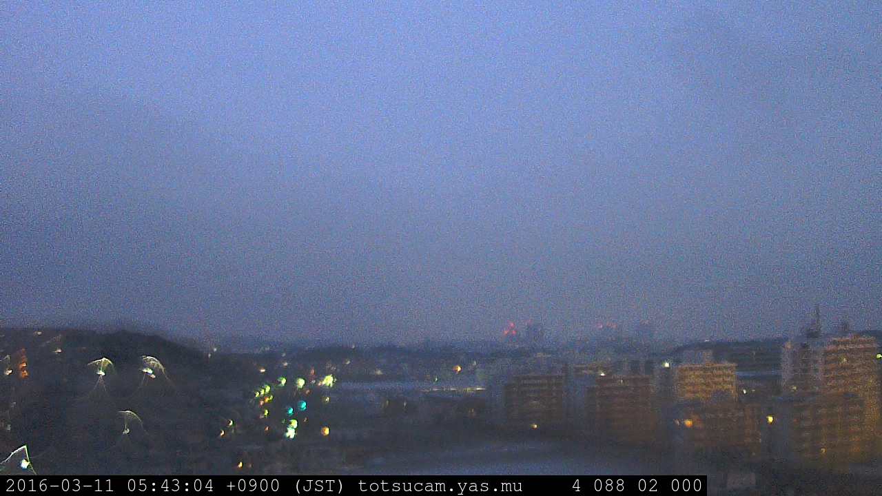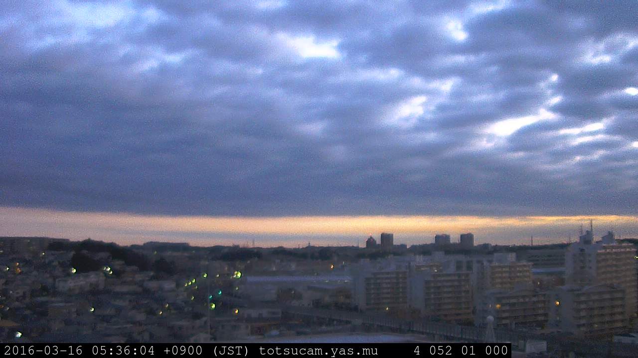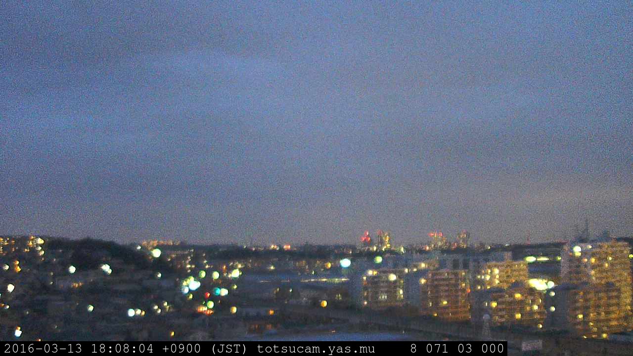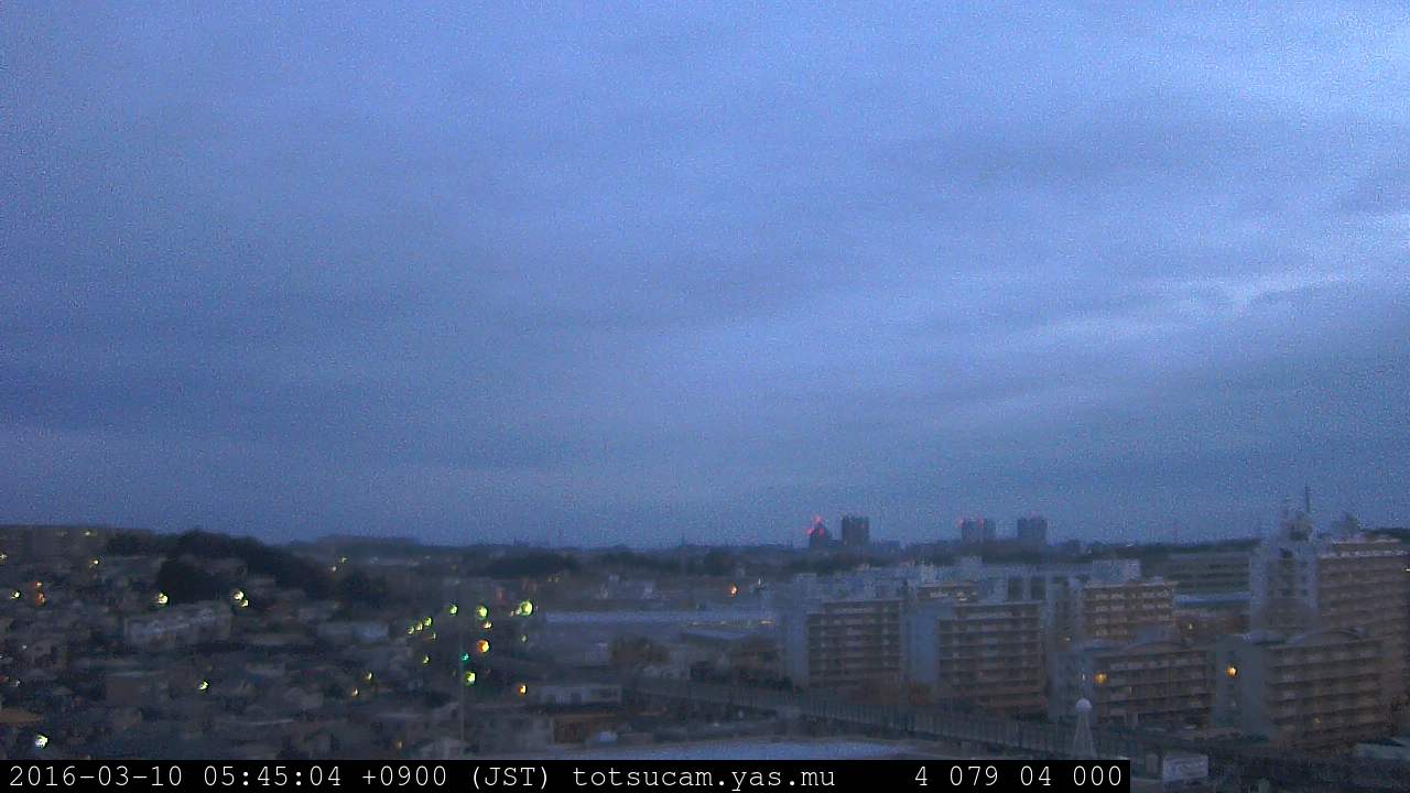 横浜市戸塚駅周辺から 東戸塚方面(北北東)を望む展望カメラの映像です。 左は現在の映像です。 下に並んでいるのは、 7日間に亘る日の出どき、昼間、夕暮れどきの写真(サムネイル)です。 それぞれ、日の出15分前、南中時、日没20分後の写真となっています。 各写真の下にはmpeg形式の動画へのリンクがあります。 それぞれ、日の出、南中、日没の前後1時間の画像です。 右欄にはその日24時間の動画へのリンクがあります。 この7日間以外は日付が一覧表示されています。 日付部分をクリックすると、 その日付から7日分が展開されて表示されます。