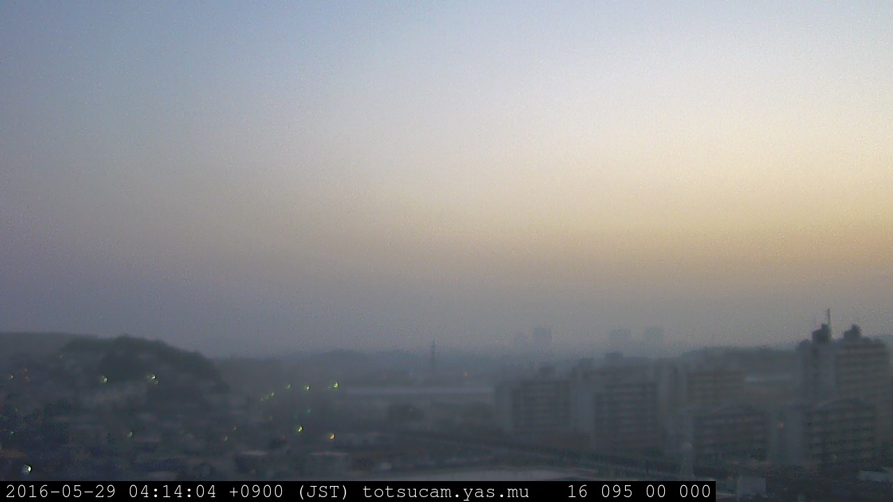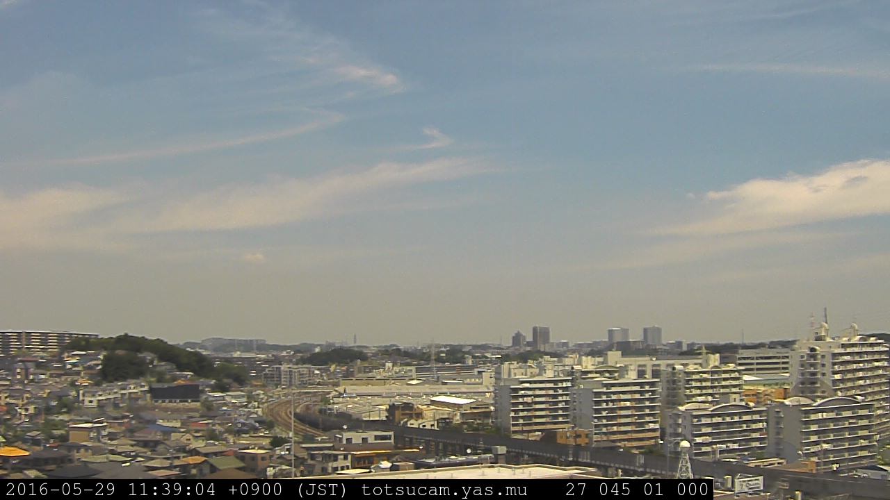 横浜市戸塚駅周辺から 東戸塚方面(北北東)を望む展望カメラの映像です。 左は現在の映像です。 下に並んでいるのは、 7日間に亘る日の出どき、昼間、夕暮れどきの写真(サムネイル)です。 それぞれ、日の出15分前、南中時、日没20分後の写真となっています。 各写真の下にはmpeg形式の動画へのリンクがあります。 それぞれ、日の出、南中、日没の前後1時間の画像です。 右欄にはその日24時間の動画へのリンクがあります。 この7日間以外は日付が一覧表示されています。 日付部分をクリックすると、 その日付から7日分が展開されて表示されます。