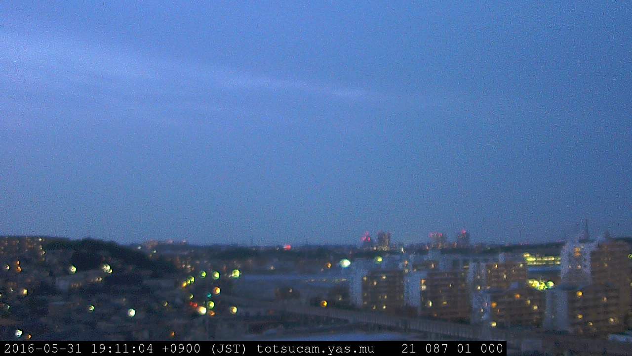 横浜市戸塚駅周辺から 東戸塚方面(北北東)を望む展望カメラの映像です。 左は現在の映像です。 下に並んでいるのは、 7日間に亘る日の出どき、昼間、夕暮れどきの写真(サムネイル)です。 それぞれ、日の出15分前、南中時、日没20分後の写真となっています。 各写真の下にはmpeg形式の動画へのリンクがあります。 それぞれ、日の出、南中、日没の前後1時間の画像です。 右欄にはその日24時間の動画へのリンクがあります。 この7日間以外は日付が一覧表示されています。 日付部分をクリックすると、 その日付から7日分が展開されて表示されます。