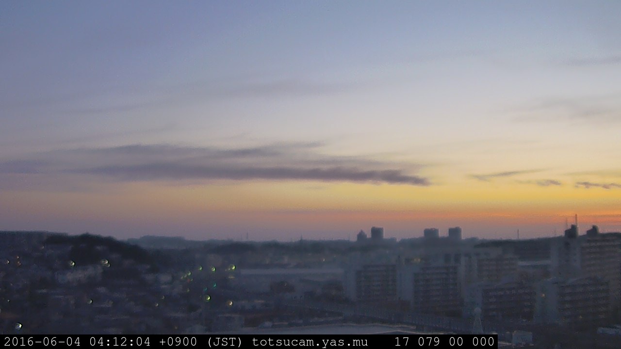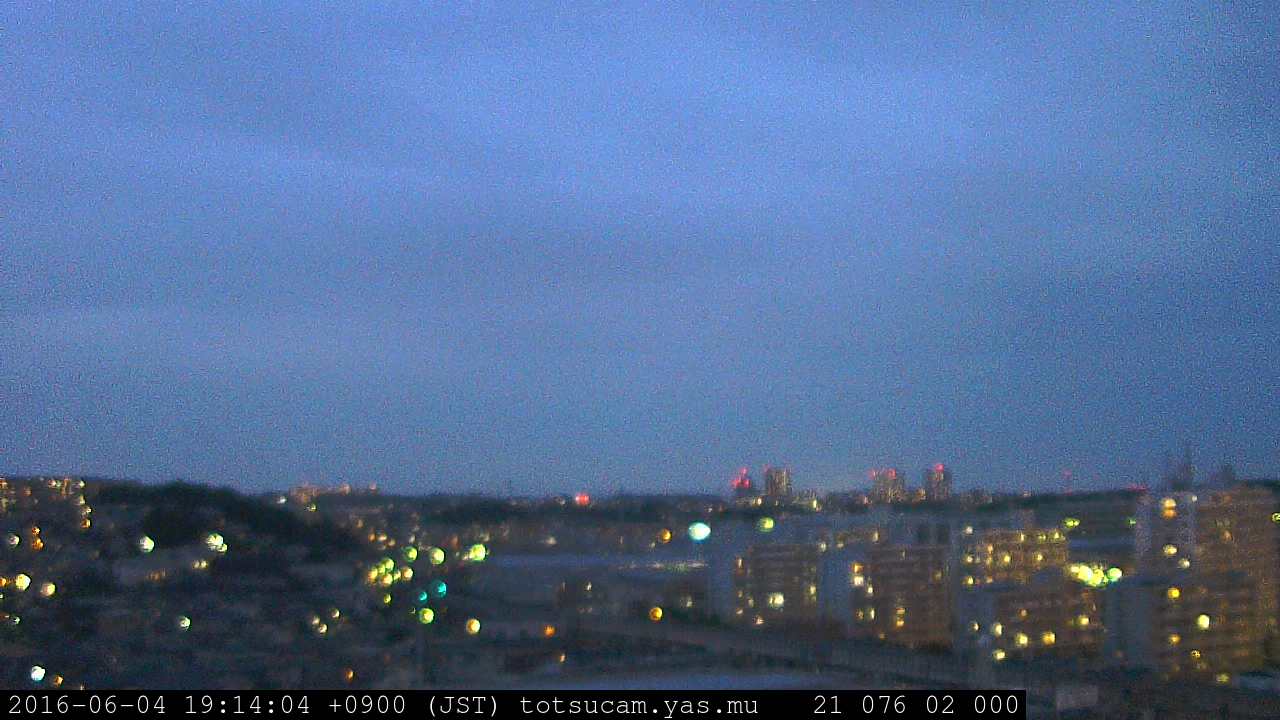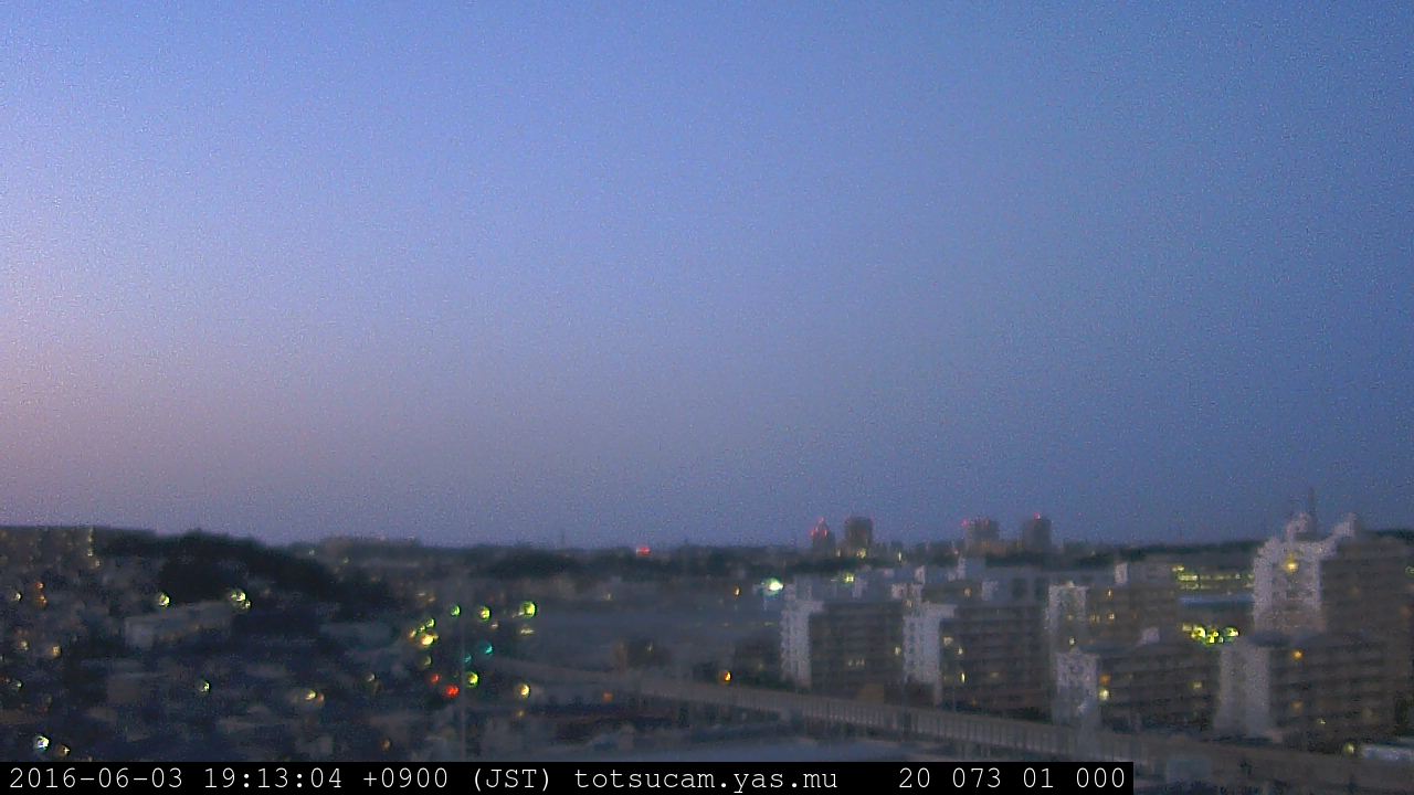 横浜市戸塚駅周辺から 東戸塚方面(北北東)を望む展望カメラの映像です。 左は現在の映像です。 下に並んでいるのは、 7日間に亘る日の出どき、昼間、夕暮れどきの写真(サムネイル)です。 それぞれ、日の出15分前、南中時、日没20分後の写真となっています。 各写真の下にはmpeg形式の動画へのリンクがあります。 それぞれ、日の出、南中、日没の前後1時間の画像です。 右欄にはその日24時間の動画へのリンクがあります。 この7日間以外は日付が一覧表示されています。 日付部分をクリックすると、 その日付から7日分が展開されて表示されます。