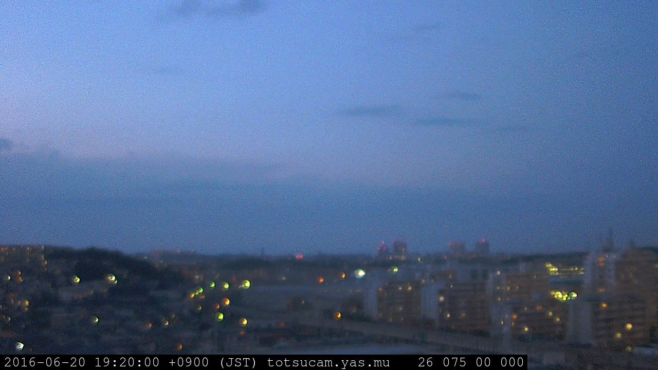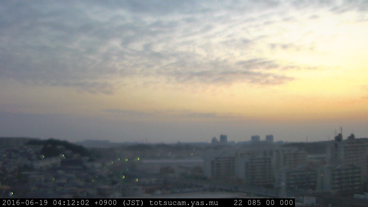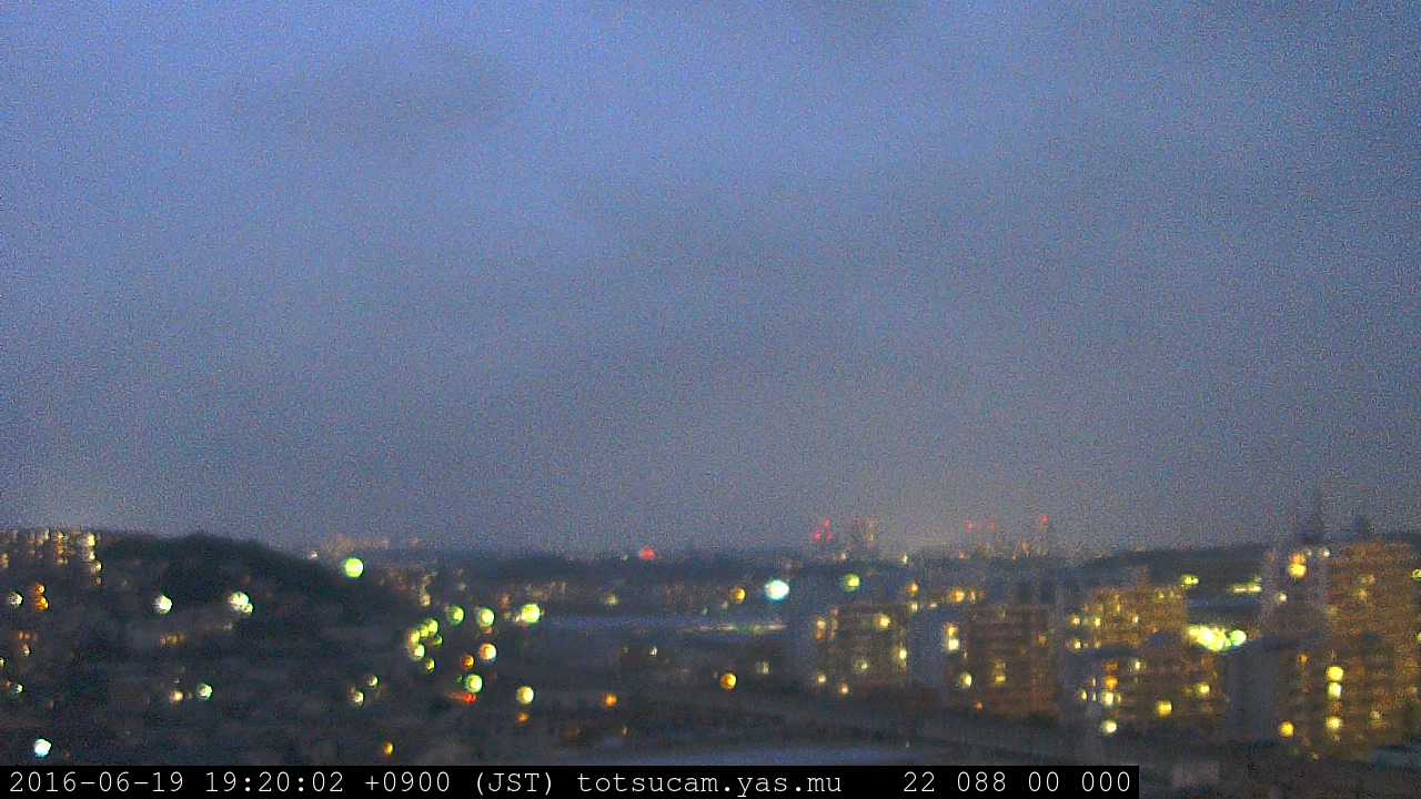 横浜市戸塚駅周辺から 東戸塚方面(北北東)を望む展望カメラの映像です。 左は現在の映像です。 下に並んでいるのは、 7日間に亘る日の出どき、昼間、夕暮れどきの写真(サムネイル)です。 それぞれ、日の出15分前、南中時、日没20分後の写真となっています。 各写真の下にはmpeg形式の動画へのリンクがあります。 それぞれ、日の出、南中、日没の前後1時間の画像です。 右欄にはその日24時間の動画へのリンクがあります。 この7日間以外は日付が一覧表示されています。 日付部分をクリックすると、 その日付から7日分が展開されて表示されます。