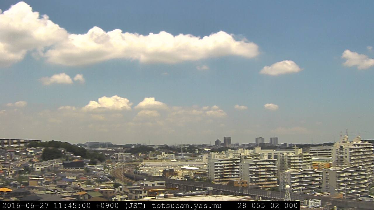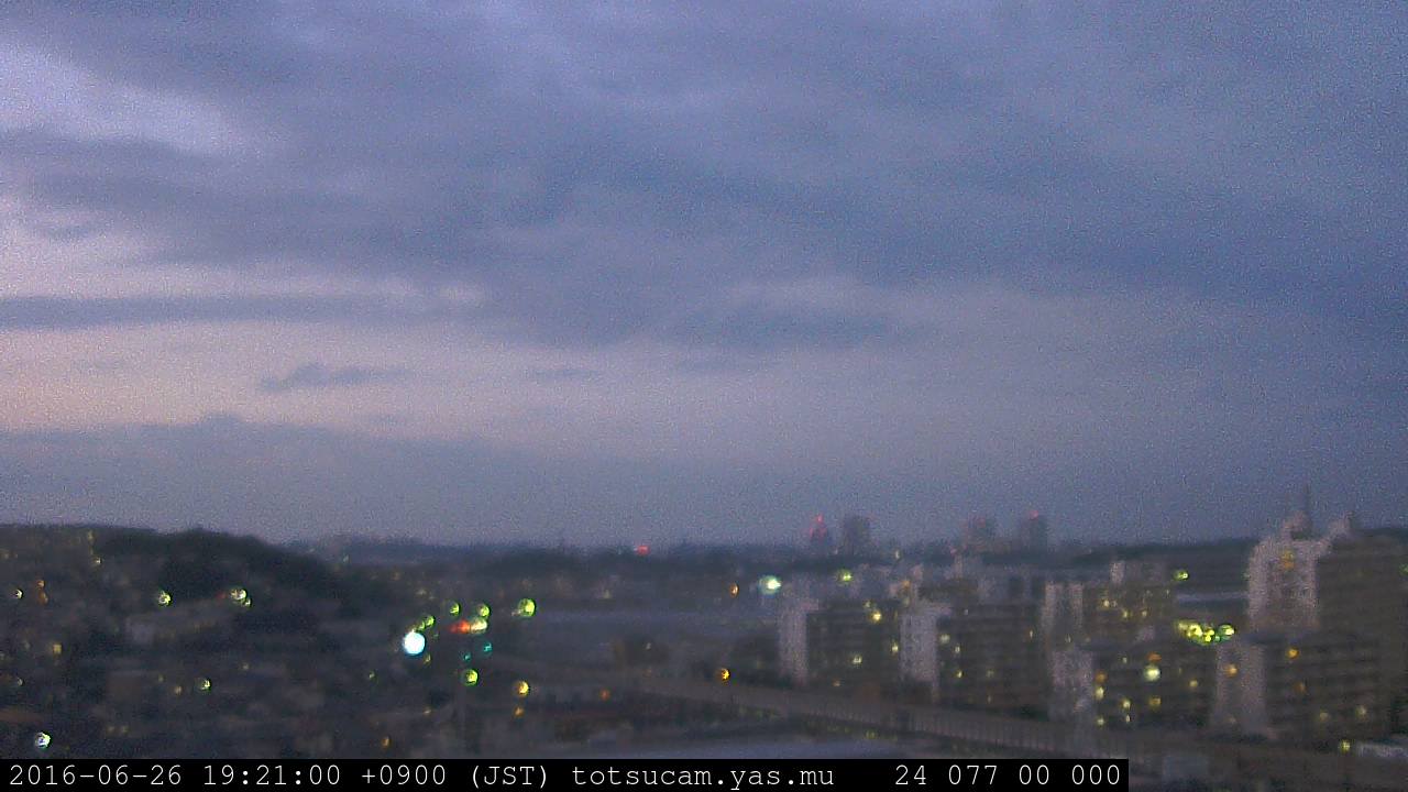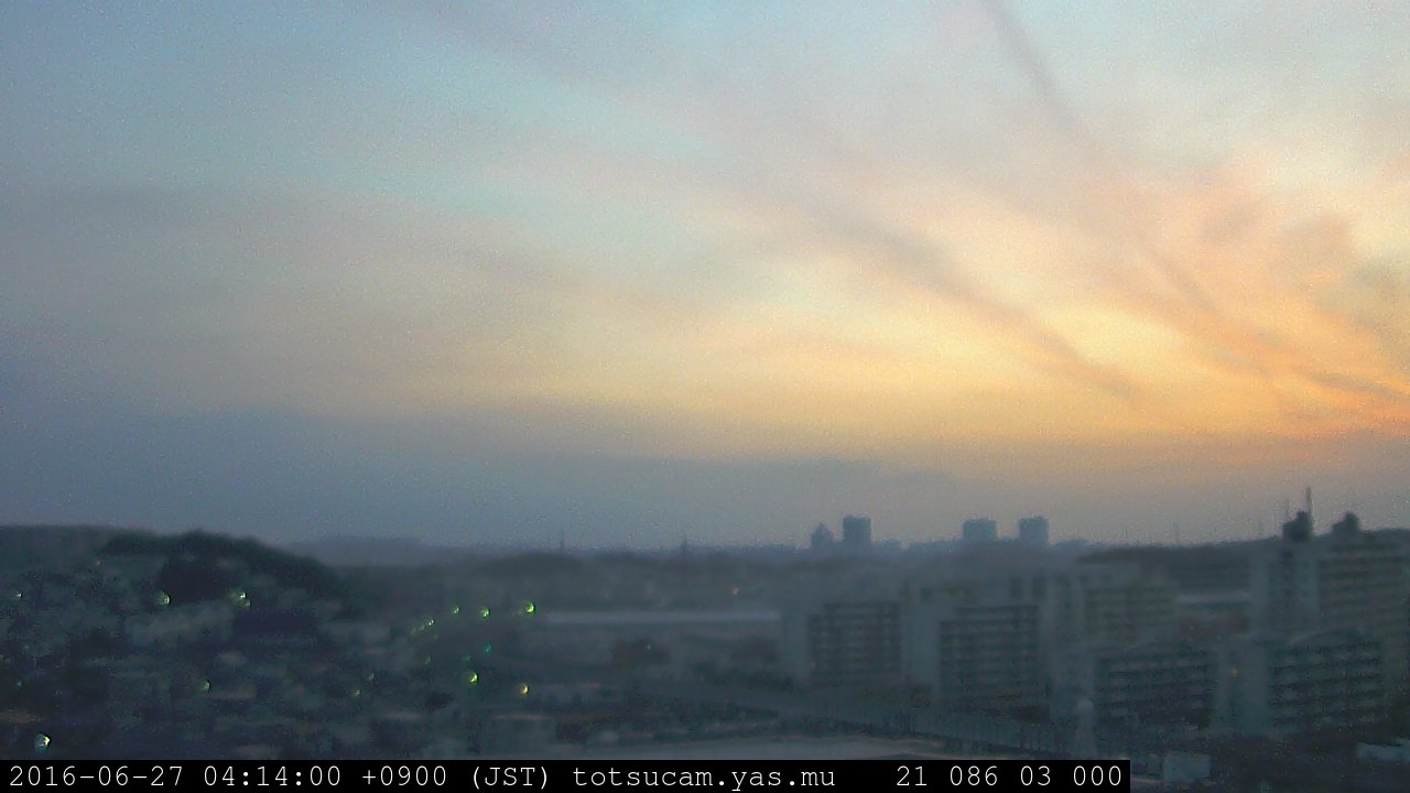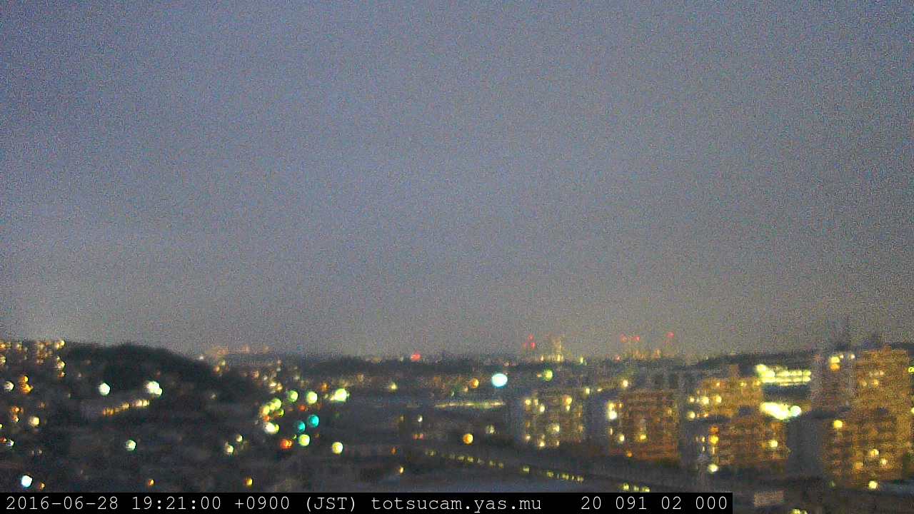 横浜市戸塚駅周辺から 東戸塚方面(北北東)を望む展望カメラの映像です。 左は現在の映像です。 下に並んでいるのは、 7日間に亘る日の出どき、昼間、夕暮れどきの写真(サムネイル)です。 それぞれ、日の出15分前、南中時、日没20分後の写真となっています。 各写真の下にはmpeg形式の動画へのリンクがあります。 それぞれ、日の出、南中、日没の前後1時間の画像です。 右欄にはその日24時間の動画へのリンクがあります。 この7日間以外は日付が一覧表示されています。 日付部分をクリックすると、 その日付から7日分が展開されて表示されます。