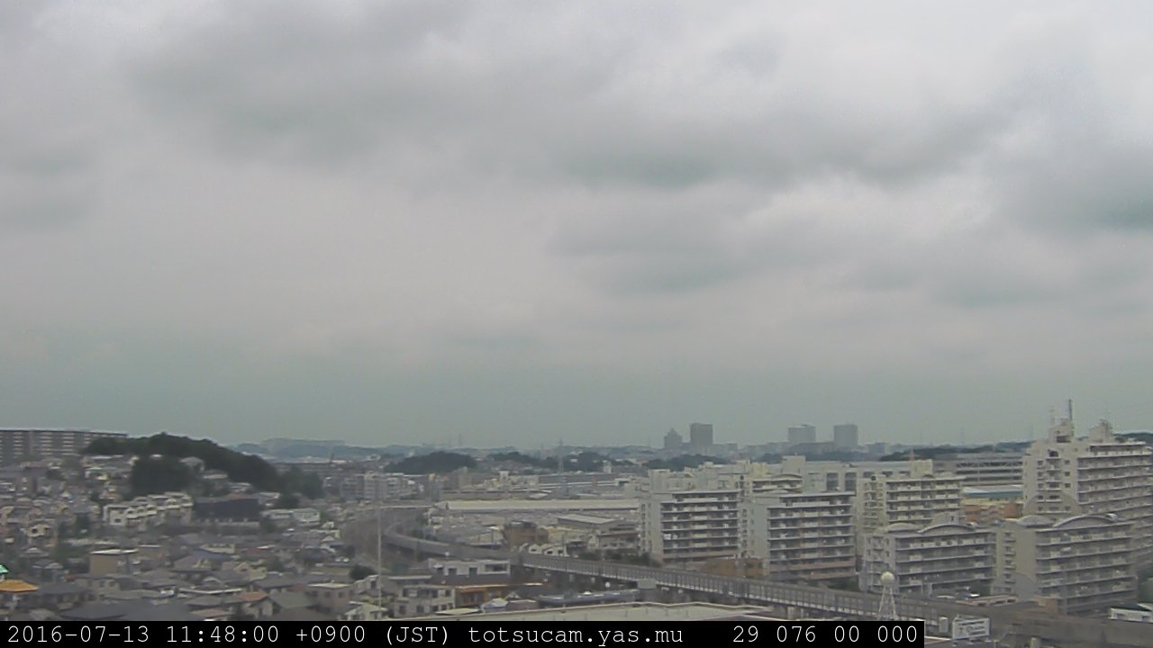 適度に曇った日の雲の動き (例: 2005-10-24) がとても楽しめます。 正面を横切っている高架は横須賀線下りです。 その下に横須賀線上り、東海道線、同貨物線が走っていますが、 高架に隠れていてよく見えません。 夜間は特に中央左寄りの車の動きがよく見えます。