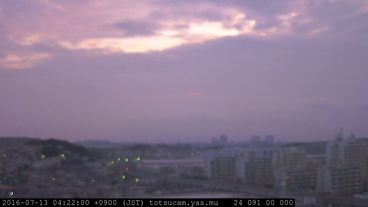 横浜市戸塚駅周辺から 東戸塚方面(北北東)を望む展望カメラの映像です。 左は現在の映像です。 下に並んでいるのは、 7日間に亘る日の出どき、昼間、夕暮れどきの写真(サムネイル)です。 それぞれ、日の出15分前、南中時、日没20分後の写真となっています。 各写真の下にはmpeg形式の動画へのリンクがあります。 それぞれ、日の出、南中、日没の前後1時間の画像です。 右欄にはその日24時間の動画へのリンクがあります。 この7日間以外は日付が一覧表示されています。 日付部分をクリックすると、 その日付から7日分が展開されて表示されます。