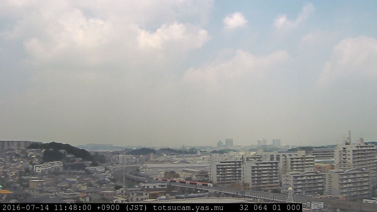 適度に曇った日の雲の動き (例: 2005-10-24) がとても楽しめます。 正面を横切っている高架は横須賀線下りです。 その下に横須賀線上り、東海道線、同貨物線が走っていますが、 高架に隠れていてよく見えません。 夜間は特に中央左寄りの車の動きがよく見えます。