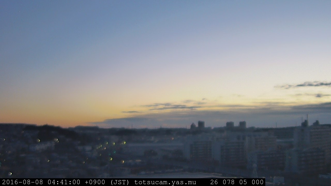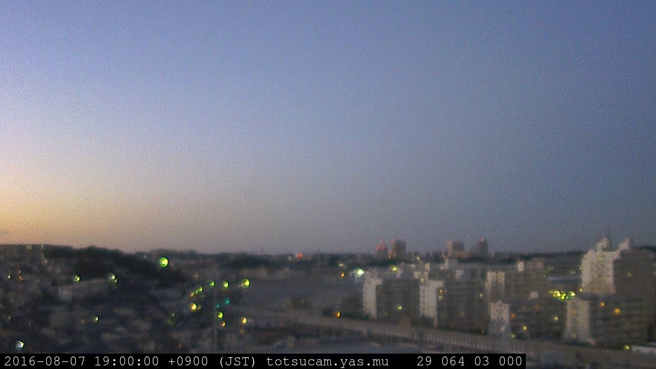 横浜市戸塚駅周辺から 東戸塚方面(北北東)を望む展望カメラの映像です。 左は現在の映像です。 下に並んでいるのは、 7日間に亘る日の出どき、昼間、夕暮れどきの写真(サムネイル)です。 それぞれ、日の出15分前、南中時、日没20分後の写真となっています。 各写真の下にはmpeg形式の動画へのリンクがあります。 それぞれ、日の出、南中、日没の前後1時間の画像です。 右欄にはその日24時間の動画へのリンクがあります。 この7日間以外は日付が一覧表示されています。 日付部分をクリックすると、 その日付から7日分が展開されて表示されます。