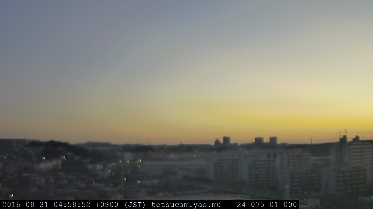 横浜市戸塚駅周辺から 東戸塚方面(北北東)を望む展望カメラの映像です。 左は現在の映像です。 下に並んでいるのは、 7日間に亘る日の出どき、昼間、夕暮れどきの写真(サムネイル)です。 それぞれ、日の出15分前、南中時、日没20分後の写真となっています。 各写真の下にはmpeg形式の動画へのリンクがあります。 それぞれ、日の出、南中、日没の前後1時間の画像です。 右欄にはその日24時間の動画へのリンクがあります。 この7日間以外は日付が一覧表示されています。 日付部分をクリックすると、 その日付から7日分が展開されて表示されます。
