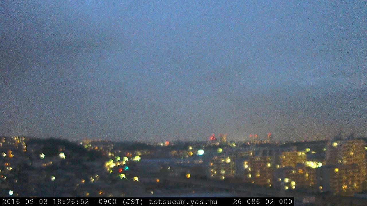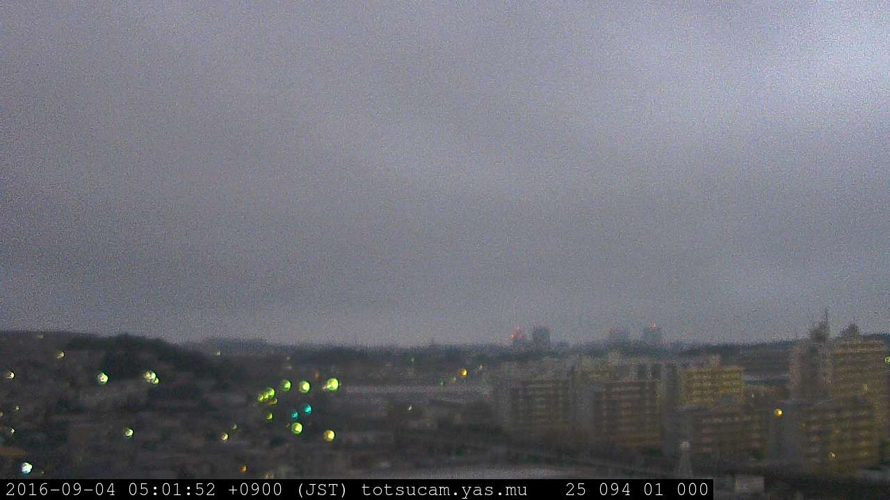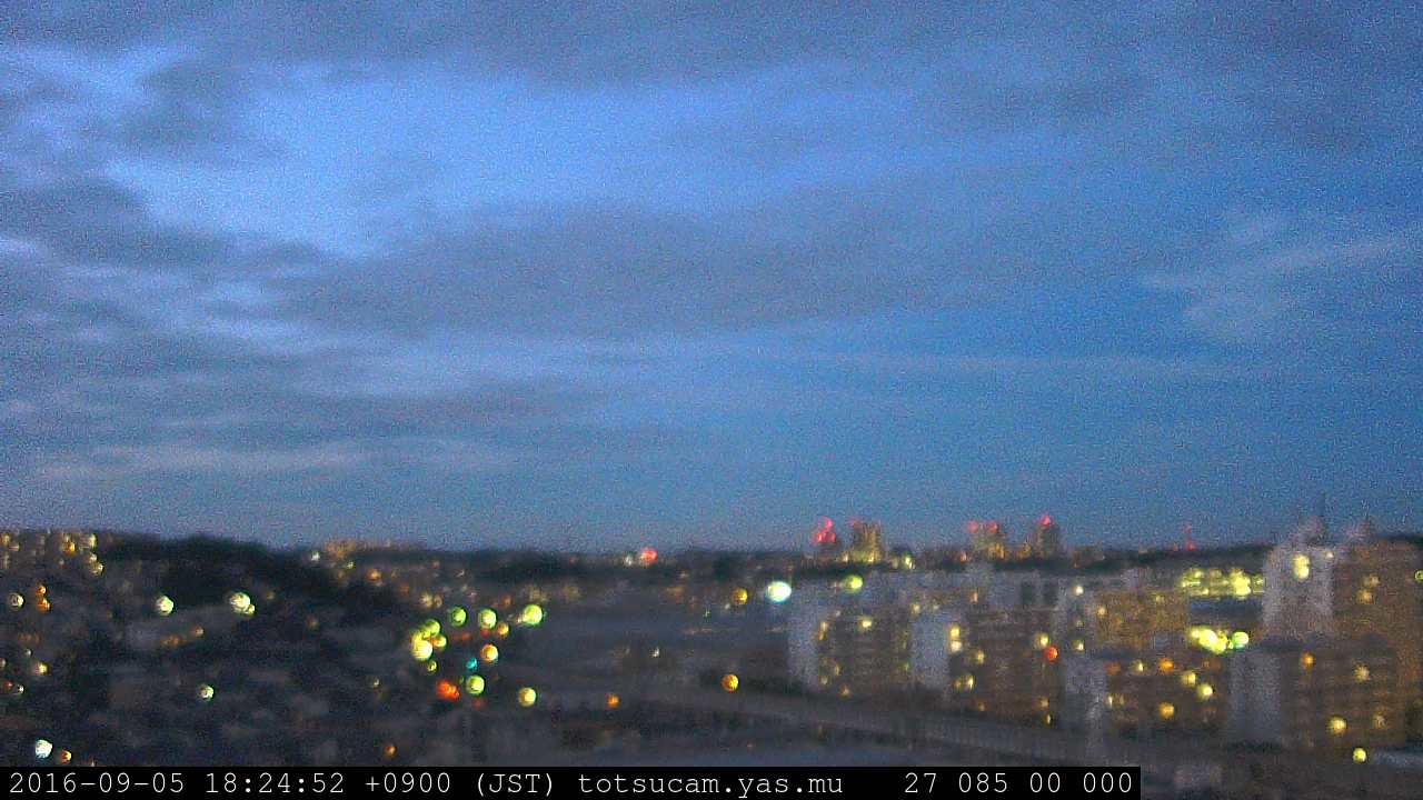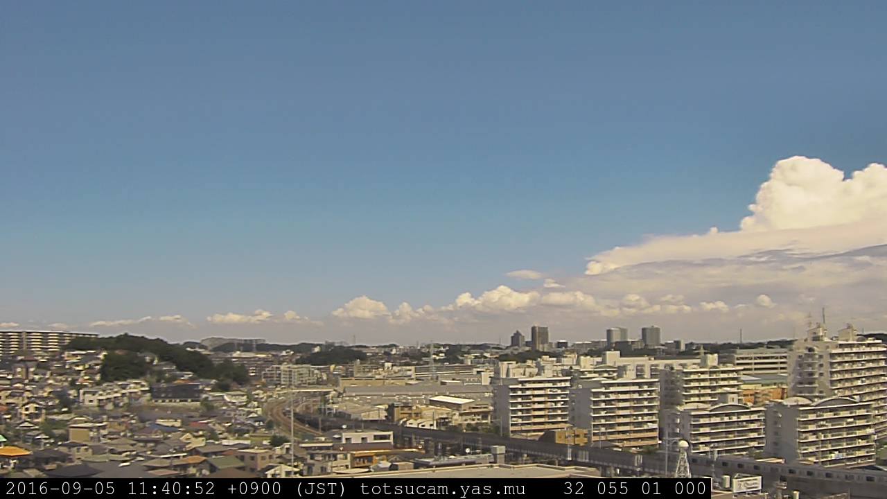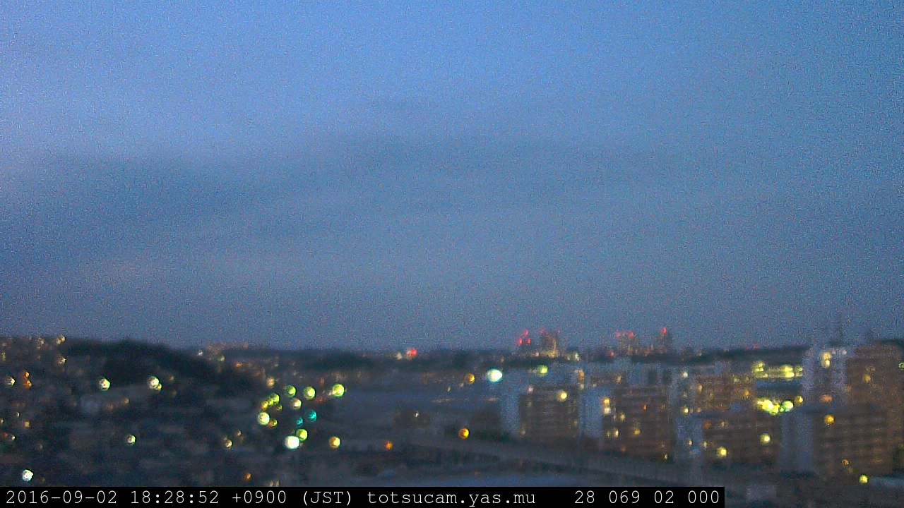 横浜市戸塚駅周辺から 東戸塚方面(北北東)を望む展望カメラの映像です。 左は現在の映像です。 下に並んでいるのは、 7日間に亘る日の出どき、昼間、夕暮れどきの写真(サムネイル)です。 それぞれ、日の出15分前、南中時、日没20分後の写真となっています。 各写真の下にはmpeg形式の動画へのリンクがあります。 それぞれ、日の出、南中、日没の前後1時間の画像です。 右欄にはその日24時間の動画へのリンクがあります。 この7日間以外は日付が一覧表示されています。 日付部分をクリックすると、 その日付から7日分が展開されて表示されます。