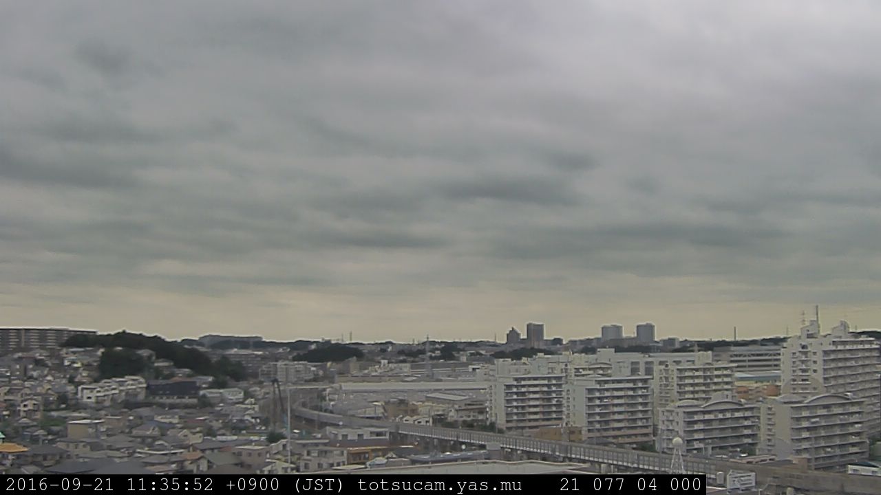 適度に曇った日の雲の動き (例: 2005-10-24) がとても楽しめます。 正面を横切っている高架は横須賀線下りです。 その下に横須賀線上り、東海道線、同貨物線が走っていますが、 高架に隠れていてよく見えません。 夜間は特に中央左寄りの車の動きがよく見えます。