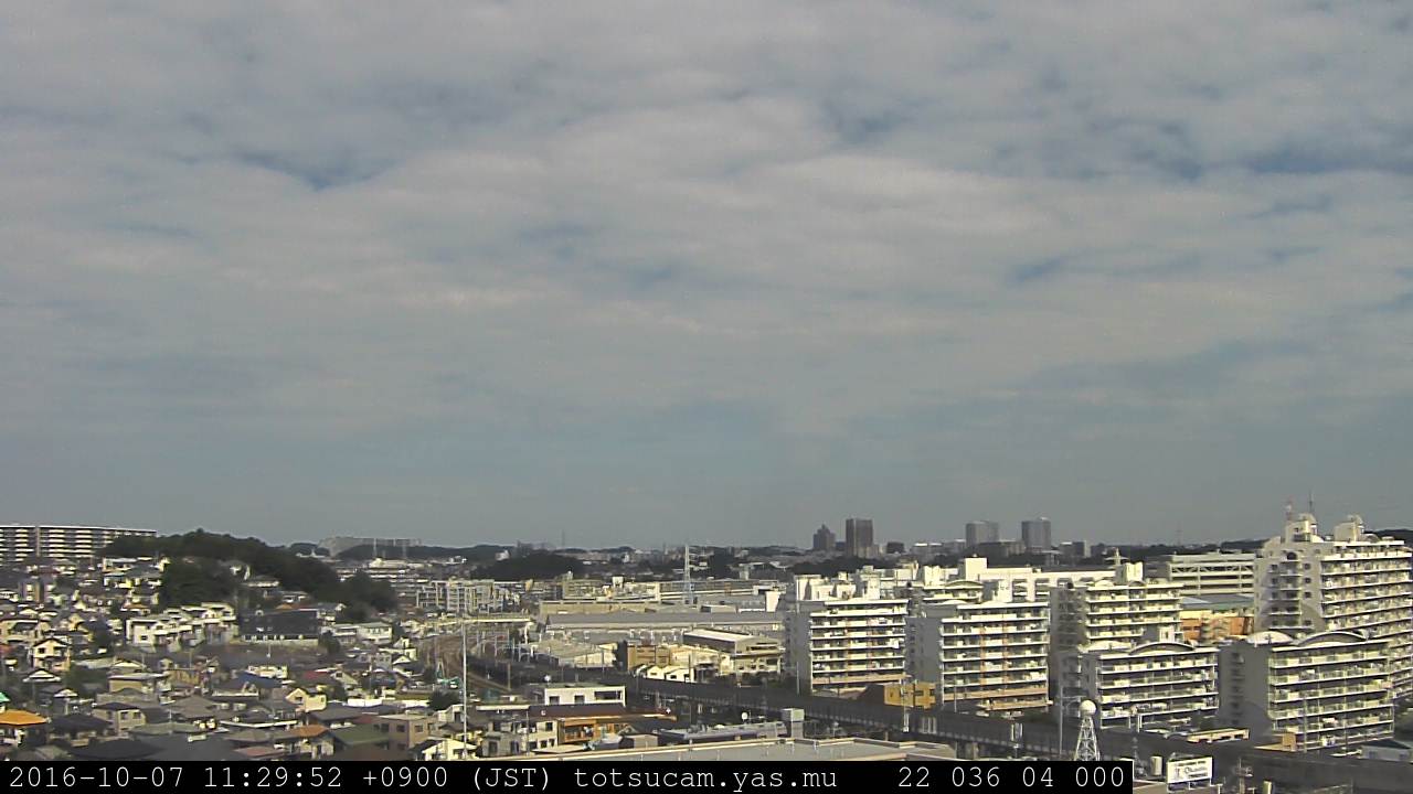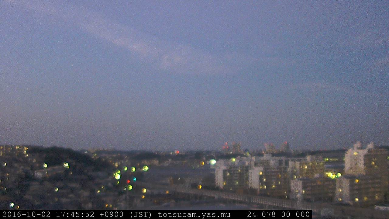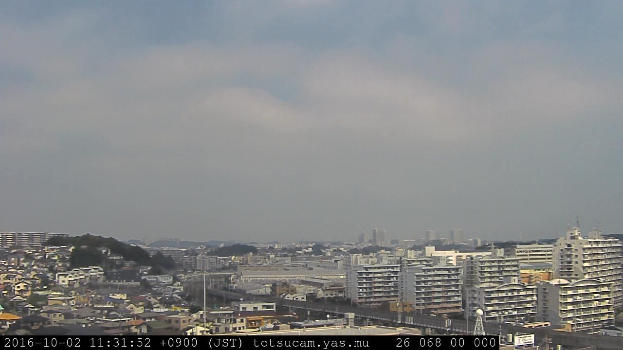 適度に曇った日の雲の動き (例: 2005-10-24) がとても楽しめます。 正面を横切っている高架は横須賀線下りです。 その下に横須賀線上り、東海道線、同貨物線が走っていますが、 高架に隠れていてよく見えません。 夜間は特に中央左寄りの車の動きがよく見えます。