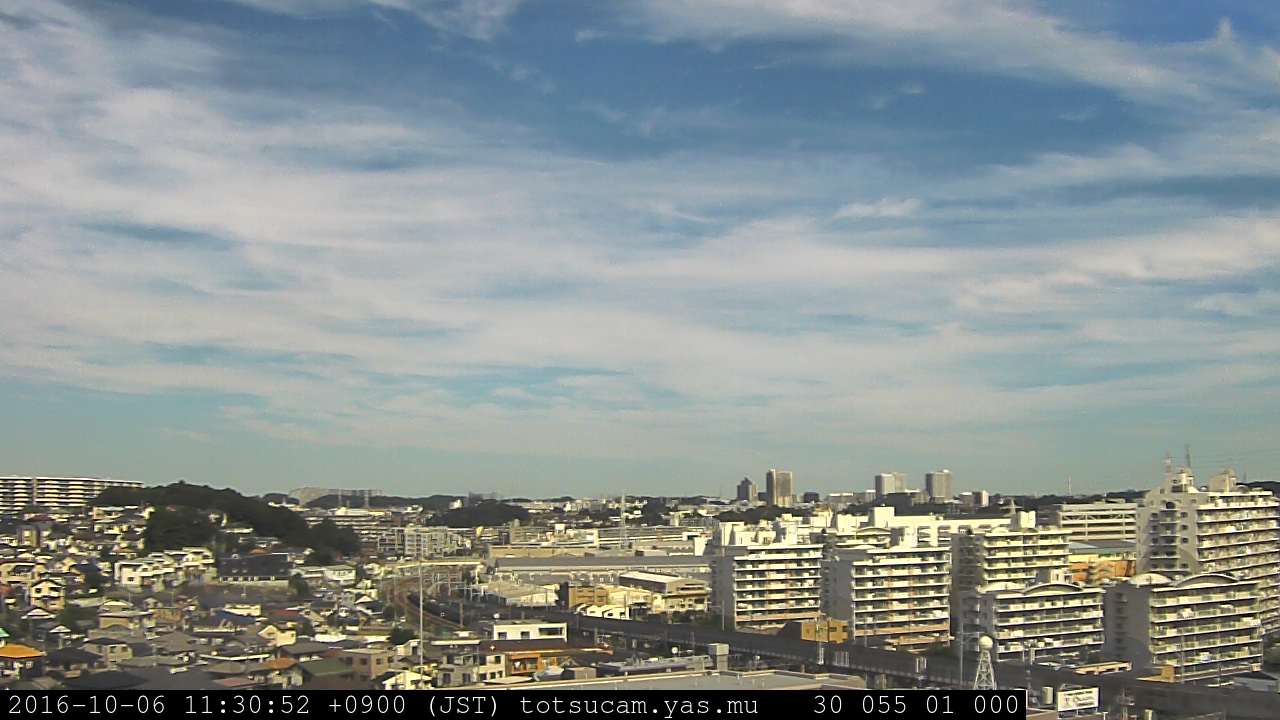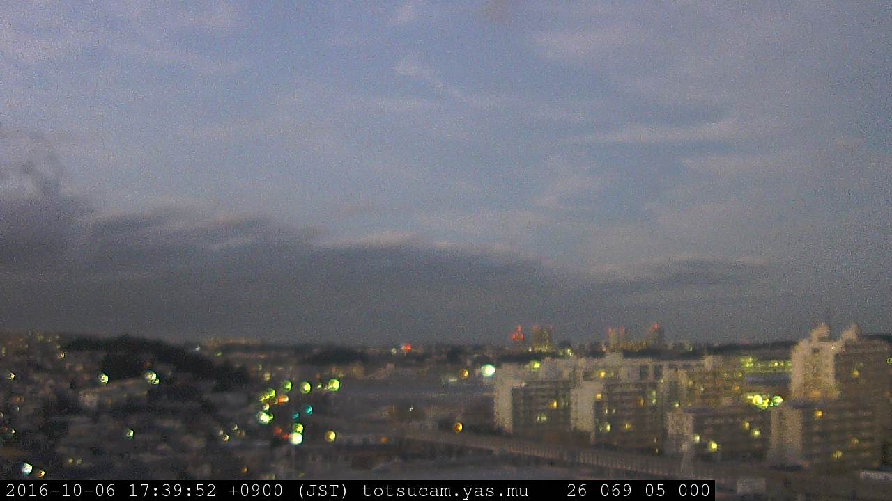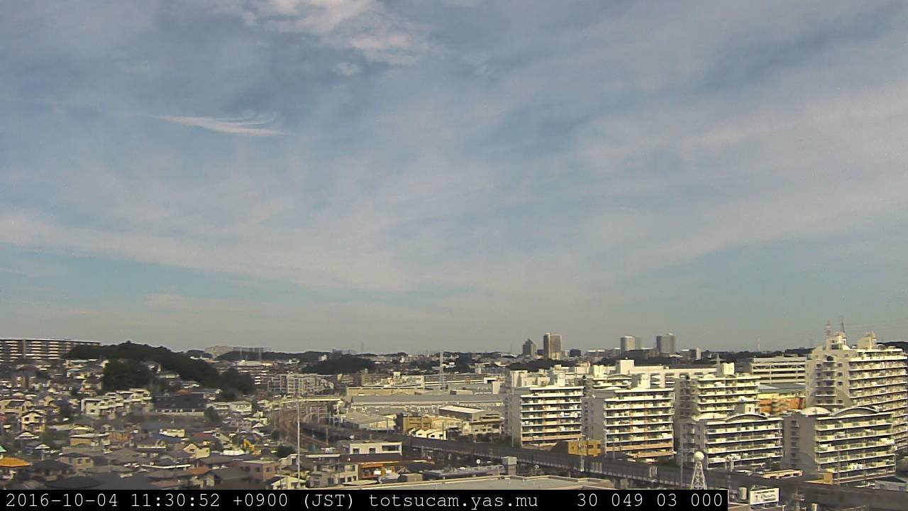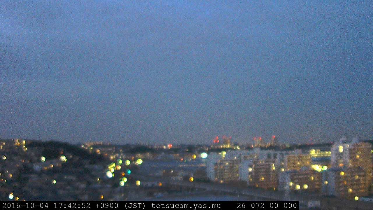 適度に曇った日の雲の動き (例: 2005-10-24) がとても楽しめます。 正面を横切っている高架は横須賀線下りです。 その下に横須賀線上り、東海道線、同貨物線が走っていますが、 高架に隠れていてよく見えません。 夜間は特に中央左寄りの車の動きがよく見えます。