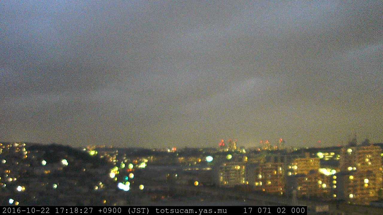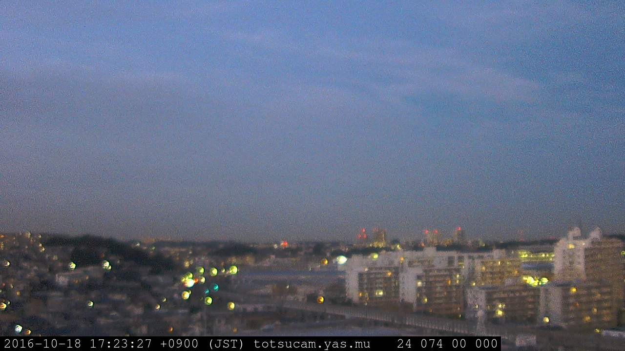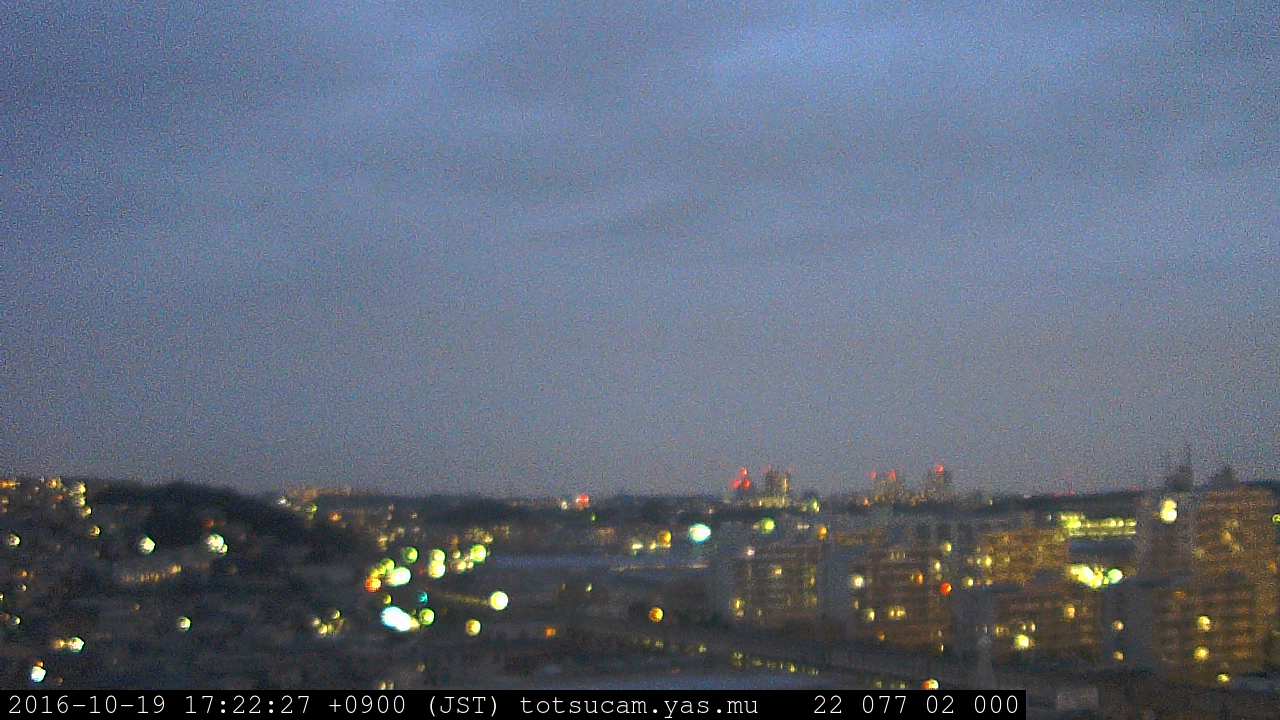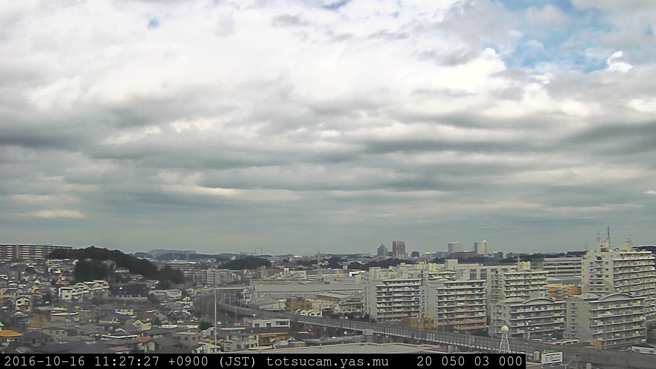 適度に曇った日の雲の動き (例: 2005-10-24) がとても楽しめます。 正面を横切っている高架は横須賀線下りです。 その下に横須賀線上り、東海道線、同貨物線が走っていますが、 高架に隠れていてよく見えません。 夜間は特に中央左寄りの車の動きがよく見えます。