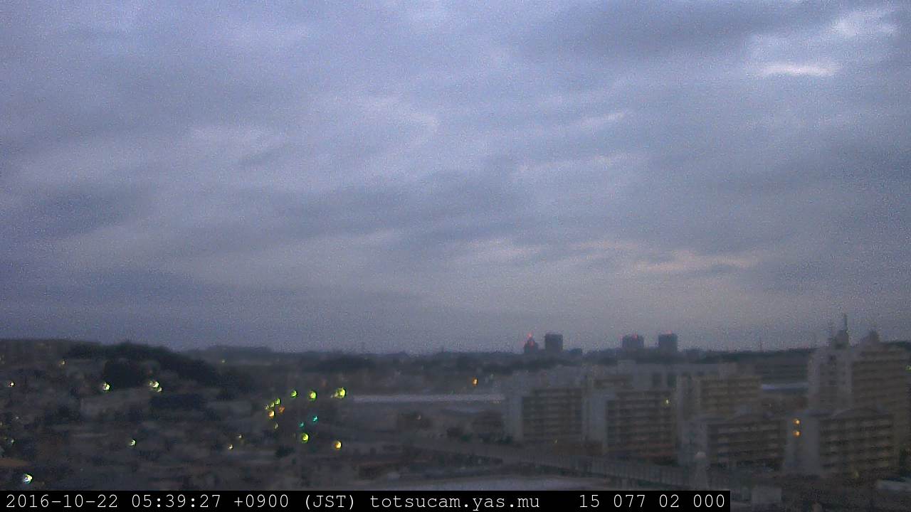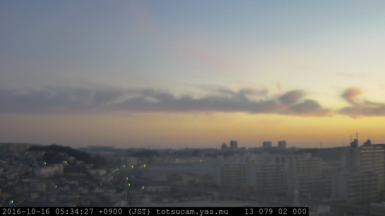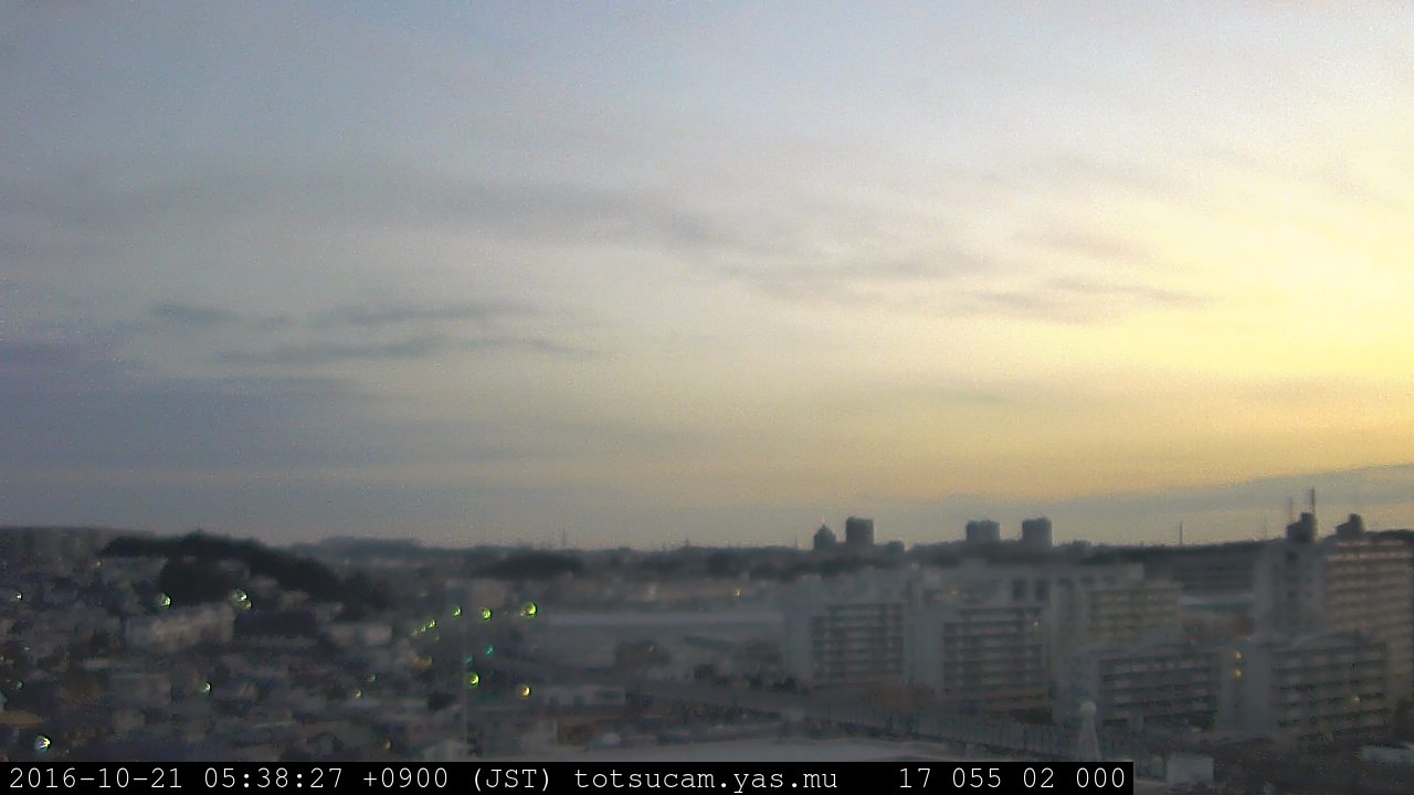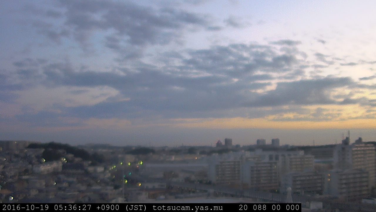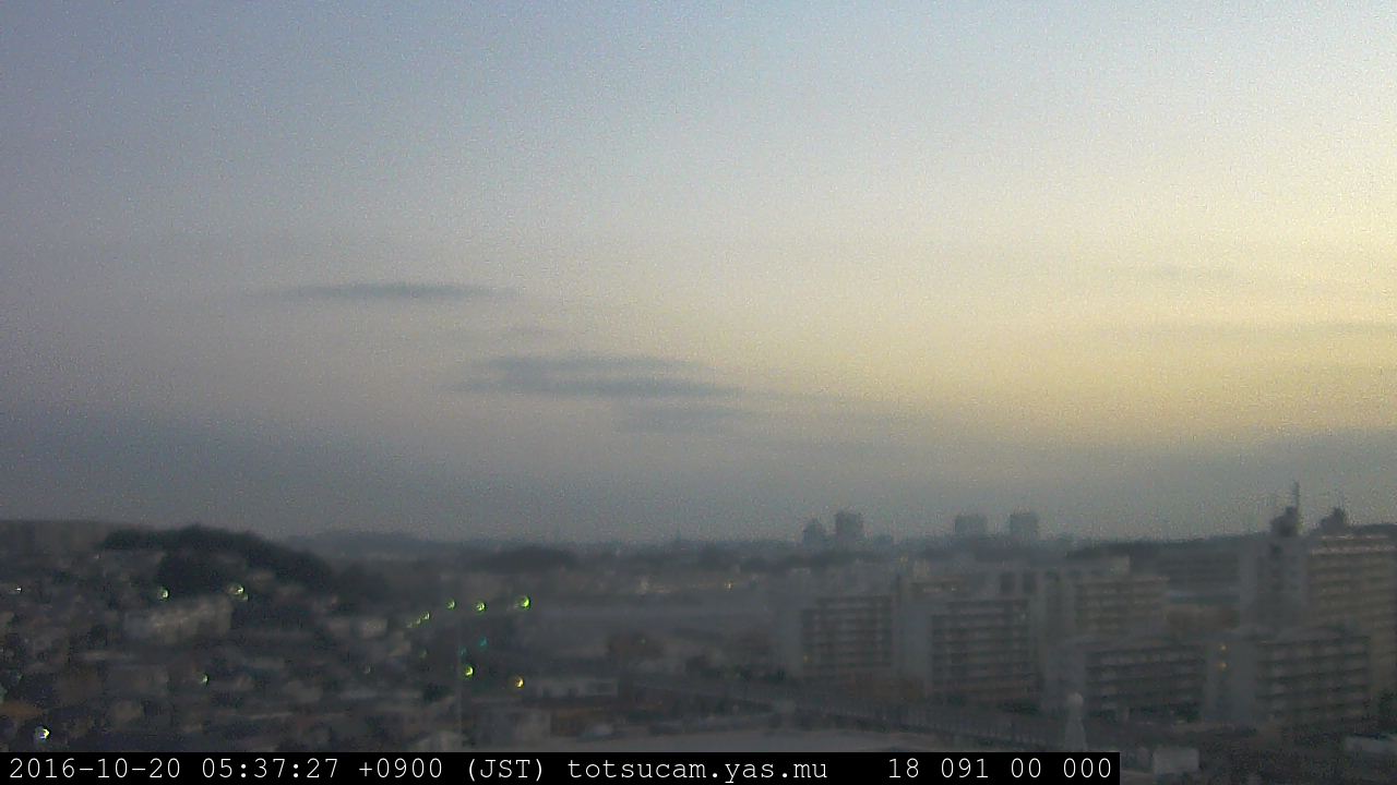 横浜市戸塚駅周辺から 東戸塚方面(北北東)を望む展望カメラの映像です。 左は現在の映像です。 下に並んでいるのは、 7日間に亘る日の出どき、昼間、夕暮れどきの写真(サムネイル)です。 それぞれ、日の出15分前、南中時、日没20分後の写真となっています。 各写真の下にはmpeg形式の動画へのリンクがあります。 それぞれ、日の出、南中、日没の前後1時間の画像です。 右欄にはその日24時間の動画へのリンクがあります。 この7日間以外は日付が一覧表示されています。 日付部分をクリックすると、 その日付から7日分が展開されて表示されます。