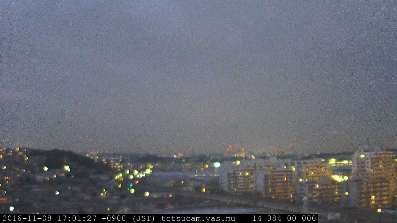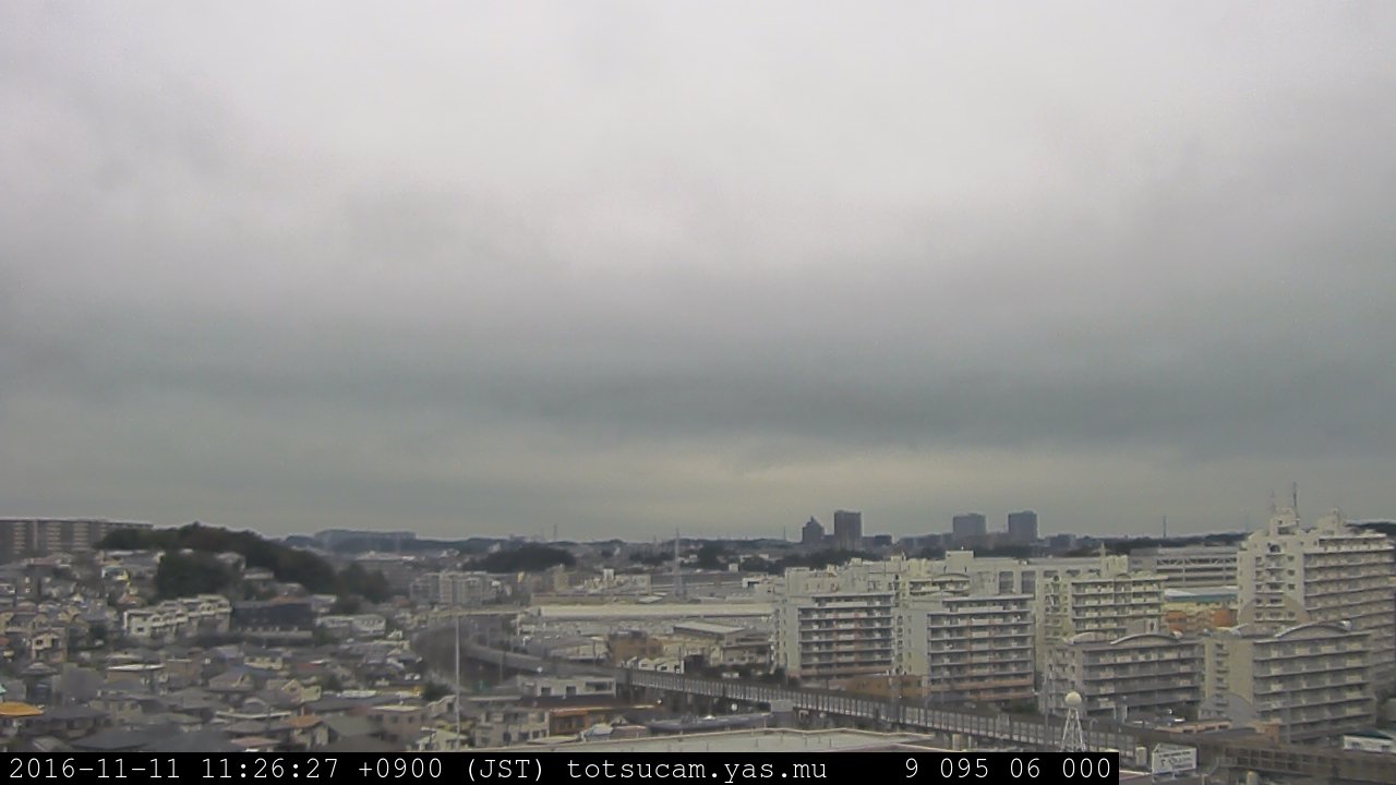 適度に曇った日の雲の動き (例: 2005-10-24) がとても楽しめます。 正面を横切っている高架は横須賀線下りです。 その下に横須賀線上り、東海道線、同貨物線が走っていますが、 高架に隠れていてよく見えません。 夜間は特に中央左寄りの車の動きがよく見えます。