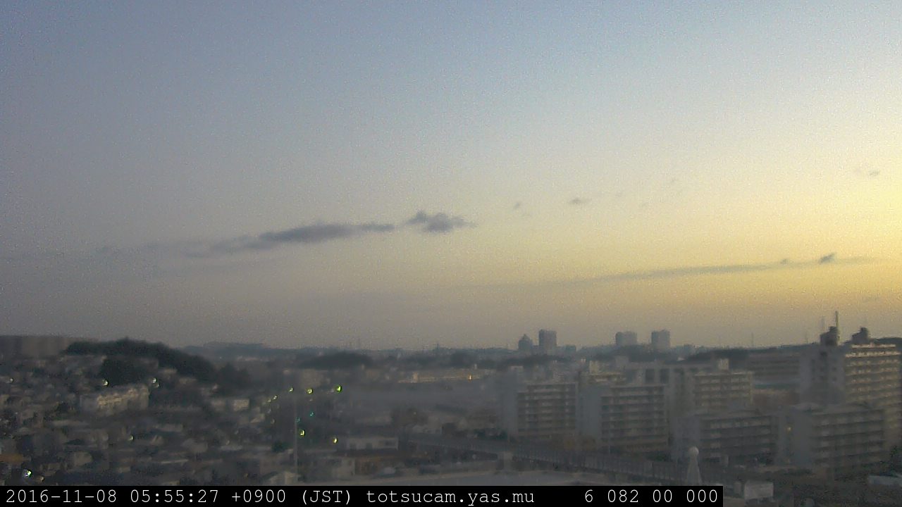 横浜市戸塚駅周辺から 東戸塚方面(北北東)を望む展望カメラの映像です。 左は現在の映像です。 下に並んでいるのは、 7日間に亘る日の出どき、昼間、夕暮れどきの写真(サムネイル)です。 それぞれ、日の出15分前、南中時、日没20分後の写真となっています。 各写真の下にはmpeg形式の動画へのリンクがあります。 それぞれ、日の出、南中、日没の前後1時間の画像です。 右欄にはその日24時間の動画へのリンクがあります。 この7日間以外は日付が一覧表示されています。 日付部分をクリックすると、 その日付から7日分が展開されて表示されます。