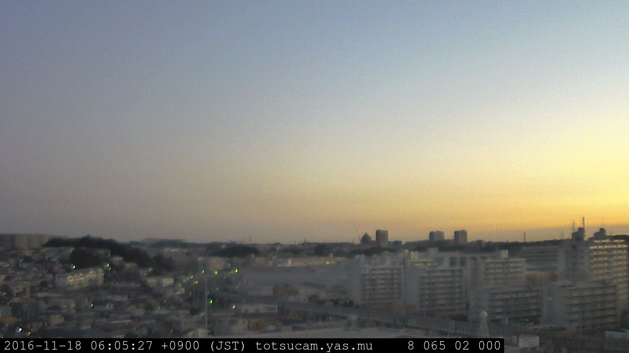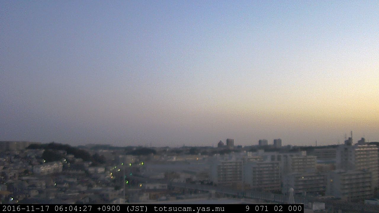 横浜市戸塚駅周辺から 東戸塚方面(北北東)を望む展望カメラの映像です。 左は現在の映像です。 下に並んでいるのは、 7日間に亘る日の出どき、昼間、夕暮れどきの写真(サムネイル)です。 それぞれ、日の出15分前、南中時、日没20分後の写真となっています。 各写真の下にはmpeg形式の動画へのリンクがあります。 それぞれ、日の出、南中、日没の前後1時間の画像です。 右欄にはその日24時間の動画へのリンクがあります。 この7日間以外は日付が一覧表示されています。 日付部分をクリックすると、 その日付から7日分が展開されて表示されます。