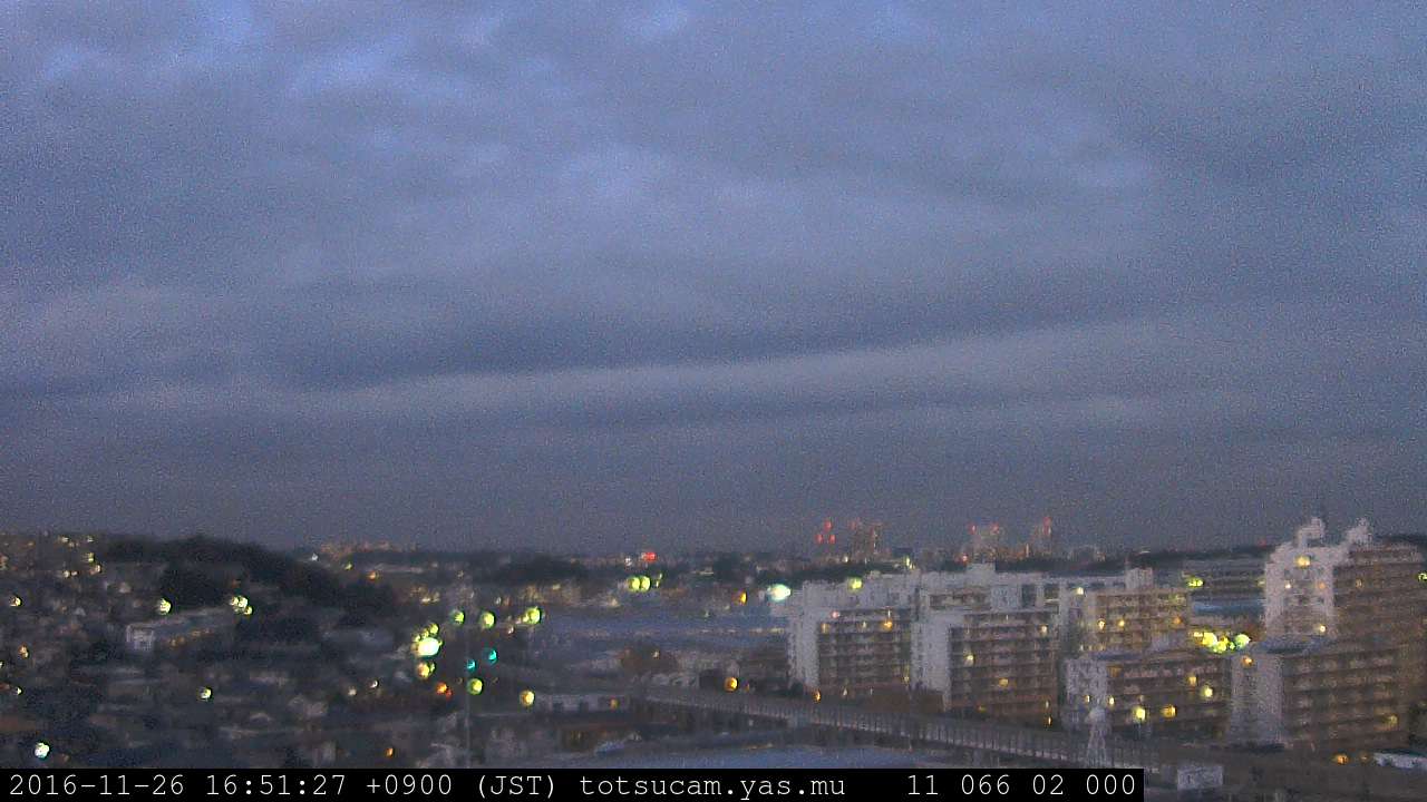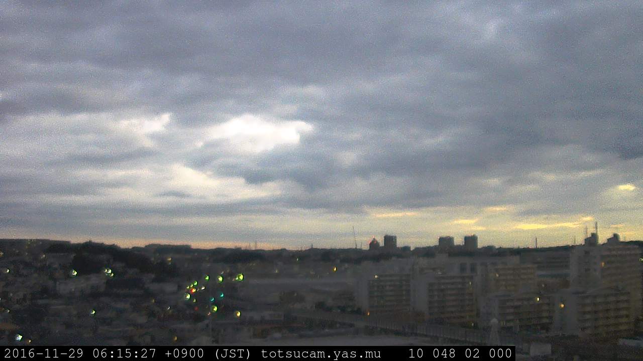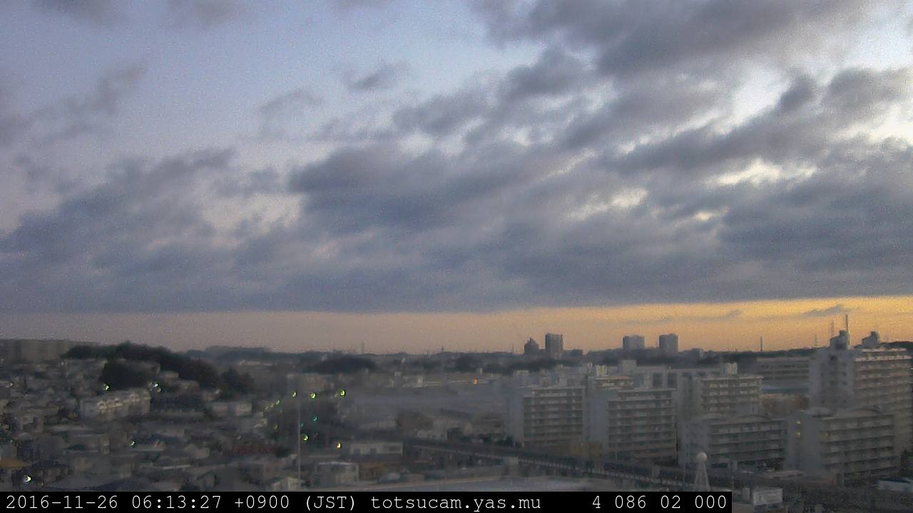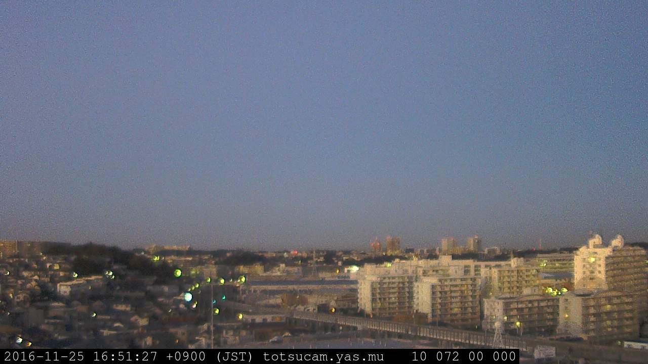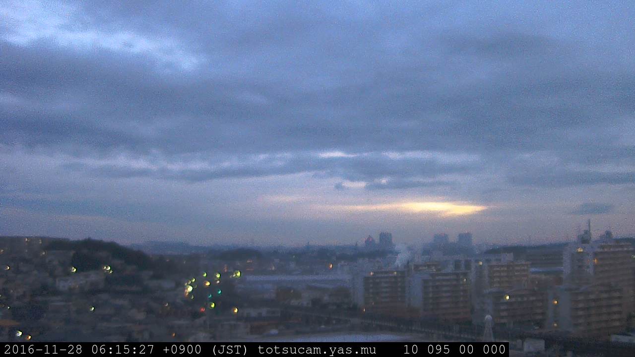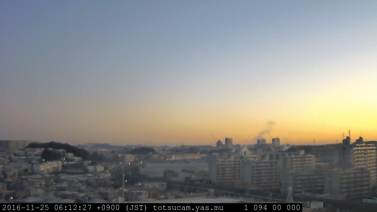 横浜市戸塚駅周辺から 東戸塚方面(北北東)を望む展望カメラの映像です。 左は現在の映像です。 下に並んでいるのは、 7日間に亘る日の出どき、昼間、夕暮れどきの写真(サムネイル)です。 それぞれ、日の出15分前、南中時、日没20分後の写真となっています。 各写真の下にはmpeg形式の動画へのリンクがあります。 それぞれ、日の出、南中、日没の前後1時間の画像です。 右欄にはその日24時間の動画へのリンクがあります。 この7日間以外は日付が一覧表示されています。 日付部分をクリックすると、 その日付から7日分が展開されて表示されます。
