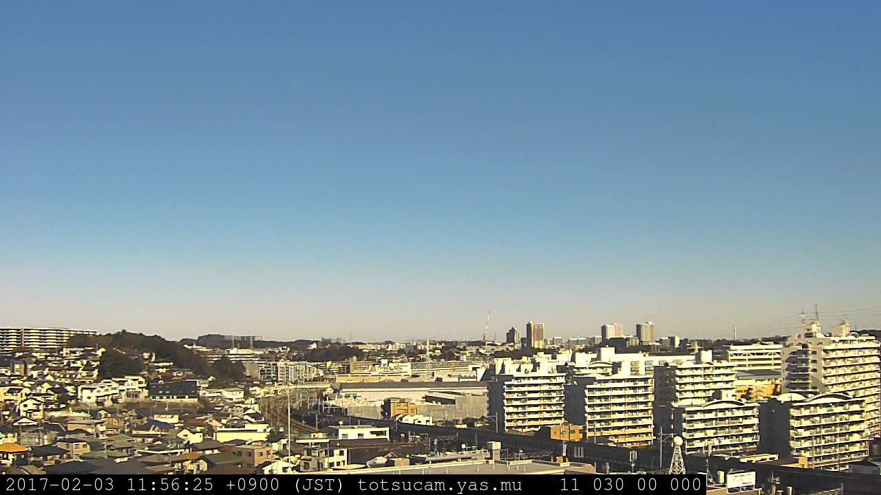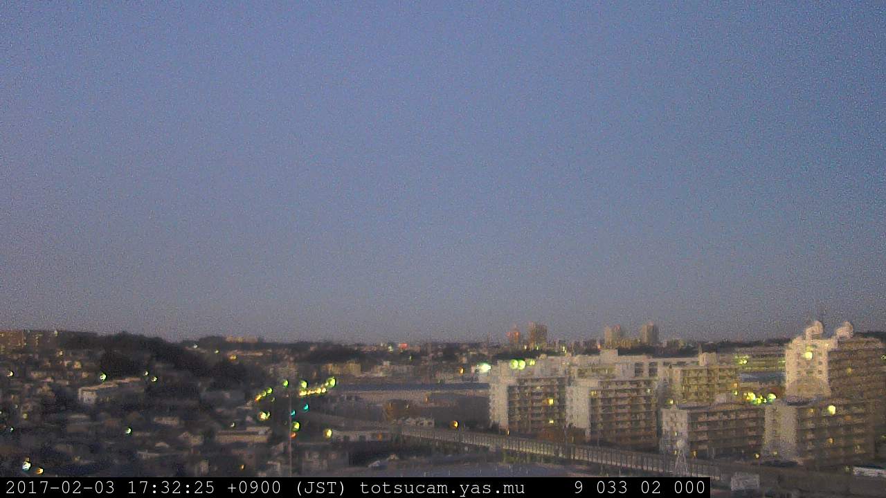 横浜市戸塚駅周辺から 東戸塚方面(北北東)を望む展望カメラの映像です。 左は現在の映像です。 下に並んでいるのは、 7日間に亘る日の出どき、昼間、夕暮れどきの写真(サムネイル)です。 それぞれ、日の出15分前、南中時、日没20分後の写真となっています。 各写真の下にはmpeg形式の動画へのリンクがあります。 それぞれ、日の出、南中、日没の前後1時間の画像です。 右欄にはその日24時間の動画へのリンクがあります。 この7日間以外は日付が一覧表示されています。 日付部分をクリックすると、 その日付から7日分が展開されて表示されます。