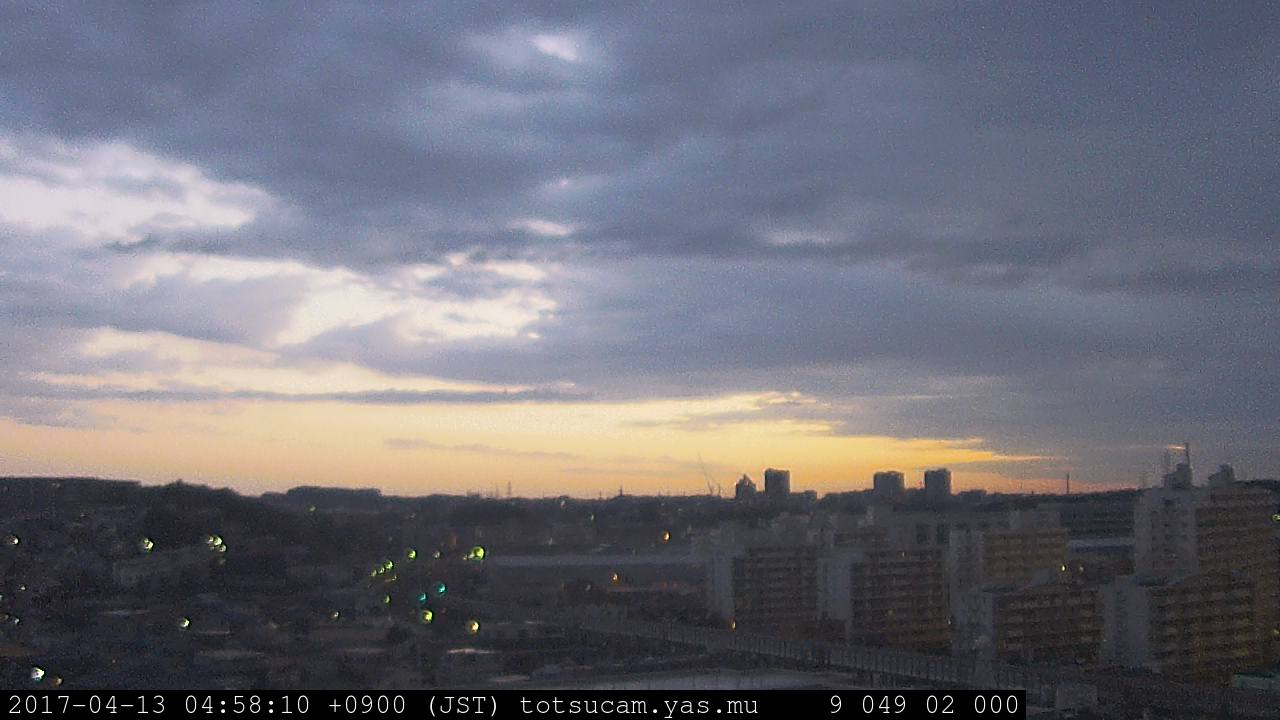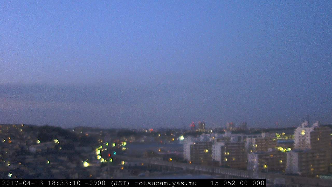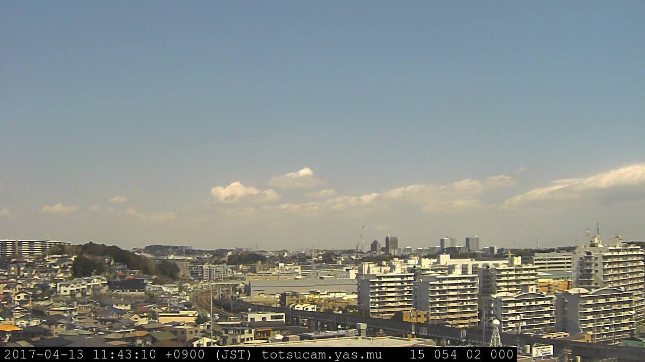 横浜市戸塚駅周辺から 東戸塚方面(北北東)を望む展望カメラの映像です。 左は現在の映像です。 下に並んでいるのは、 7日間に亘る日の出どき、昼間、夕暮れどきの写真(サムネイル)です。 それぞれ、日の出15分前、南中時、日没20分後の写真となっています。 各写真の下にはmpeg形式の動画へのリンクがあります。 それぞれ、日の出、南中、日没の前後1時間の画像です。 右欄にはその日24時間の動画へのリンクがあります。 この7日間以外は日付が一覧表示されています。 日付部分をクリックすると、 その日付から7日分が展開されて表示されます。