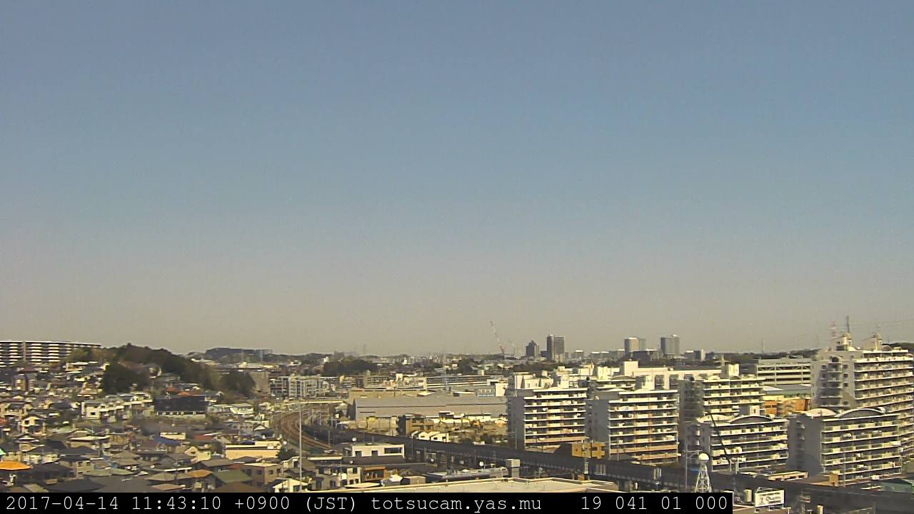 適度に曇った日の雲の動き (例: 2005-10-24) がとても楽しめます。 正面を横切っている高架は横須賀線下りです。 その下に横須賀線上り、東海道線、同貨物線が走っていますが、 高架に隠れていてよく見えません。 夜間は特に中央左寄りの車の動きがよく見えます。