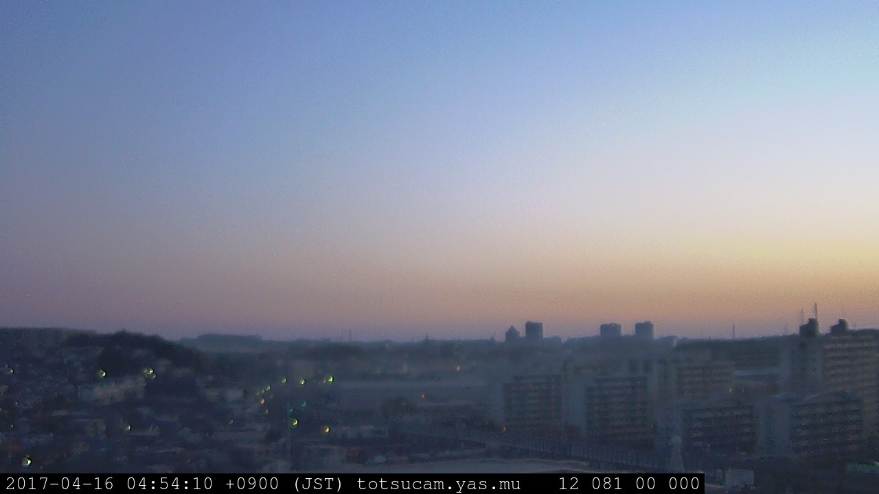 横浜市戸塚駅周辺から 東戸塚方面(北北東)を望む展望カメラの映像です。 左は現在の映像です。 下に並んでいるのは、 7日間に亘る日の出どき、昼間、夕暮れどきの写真(サムネイル)です。 それぞれ、日の出15分前、南中時、日没20分後の写真となっています。 各写真の下にはmpeg形式の動画へのリンクがあります。 それぞれ、日の出、南中、日没の前後1時間の画像です。 右欄にはその日24時間の動画へのリンクがあります。 この7日間以外は日付が一覧表示されています。 日付部分をクリックすると、 その日付から7日分が展開されて表示されます。