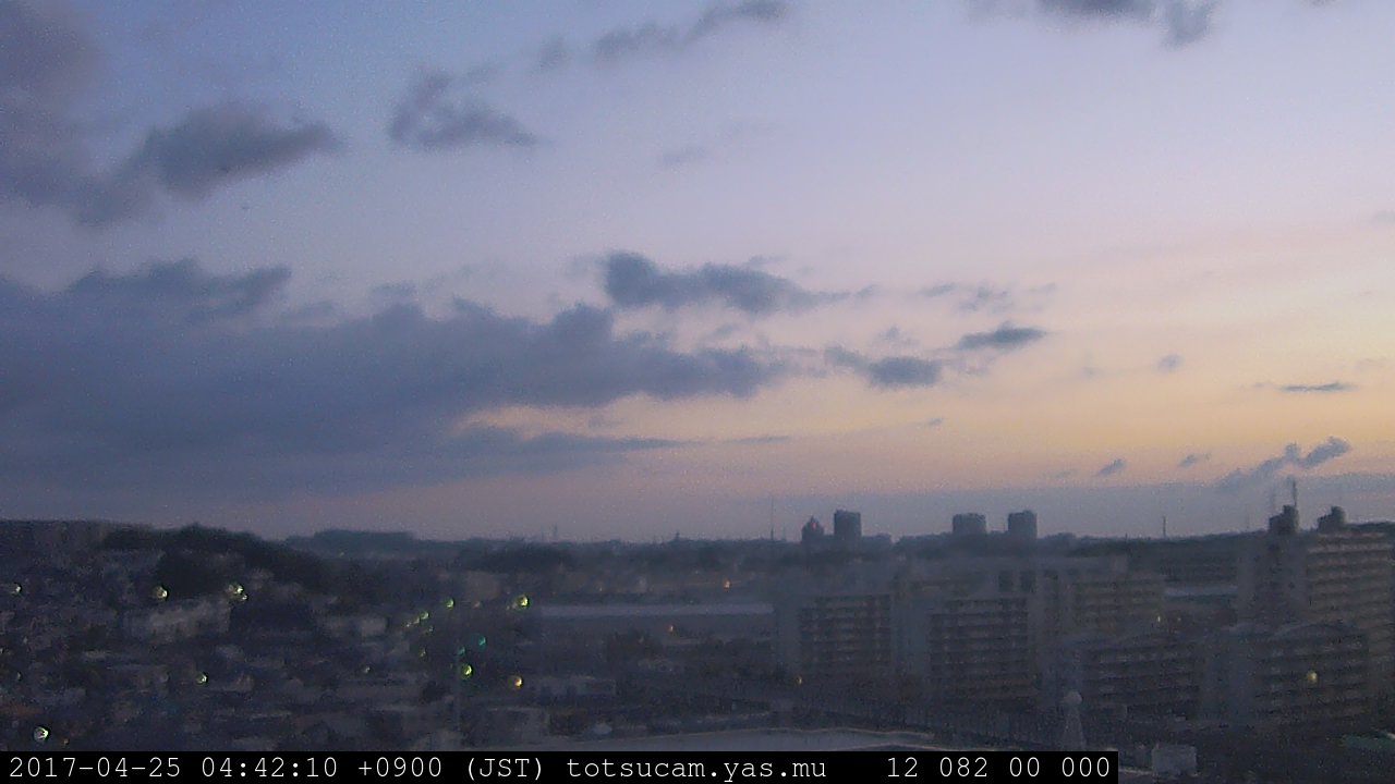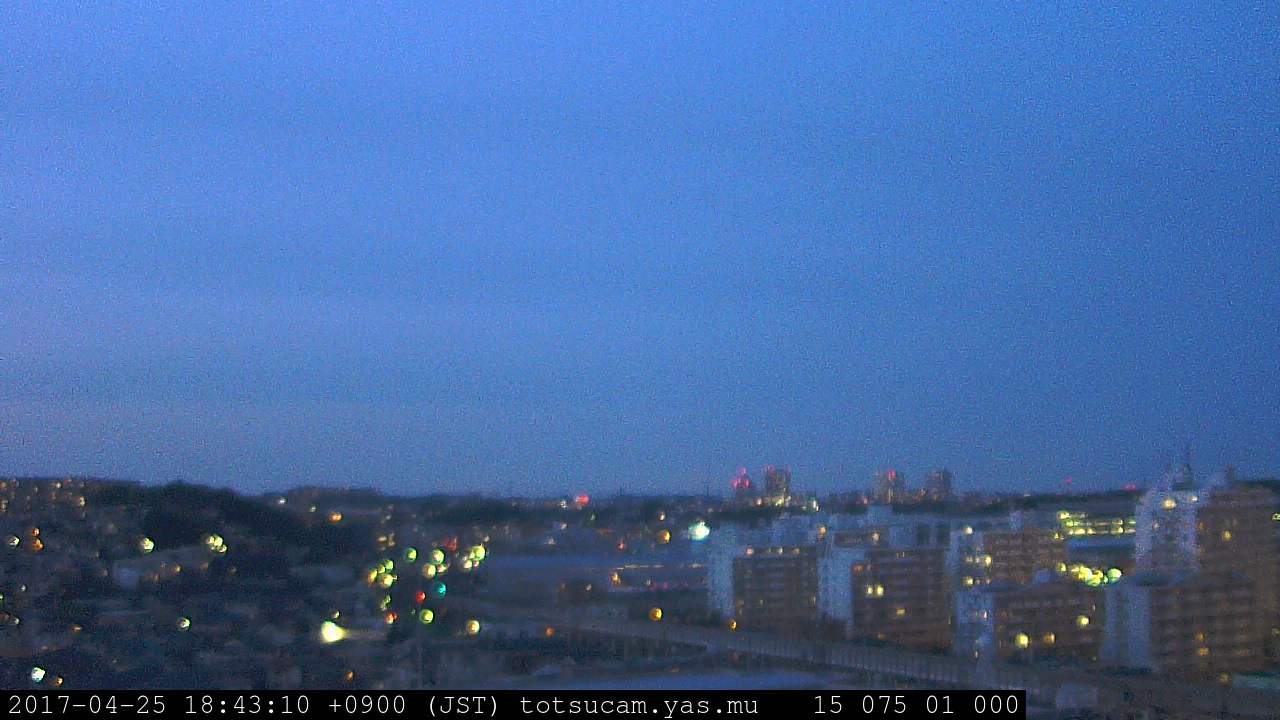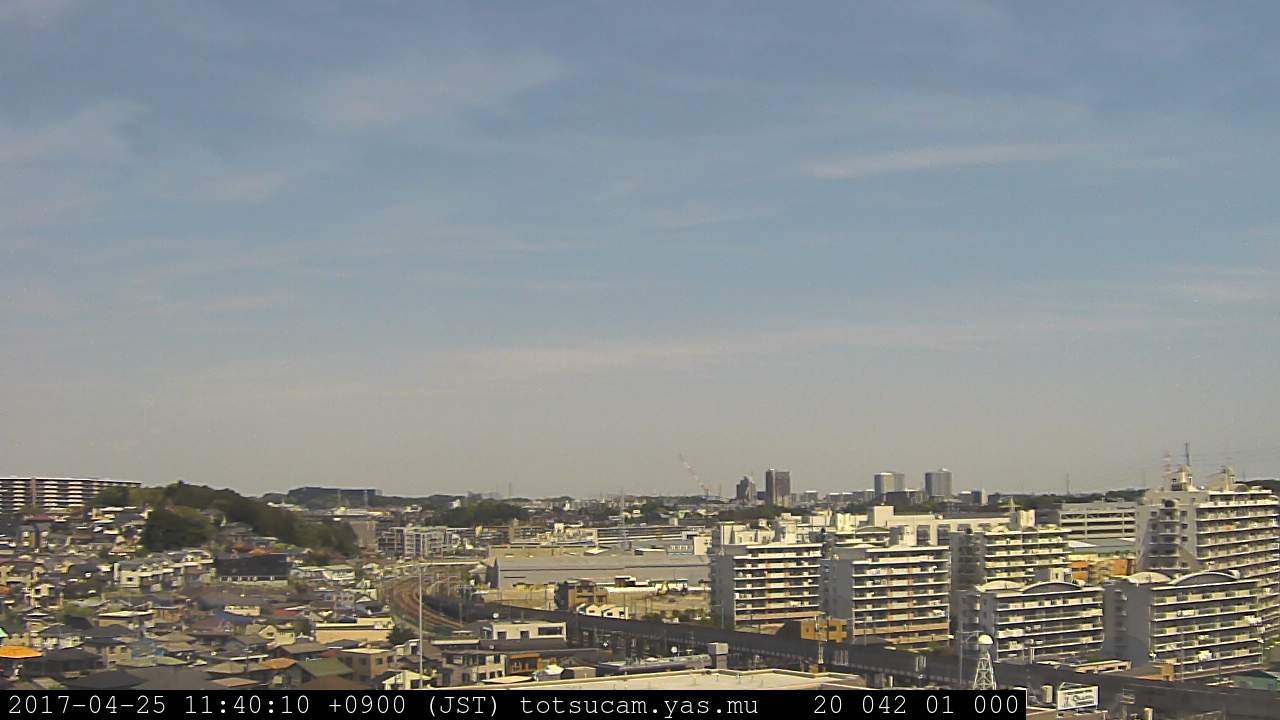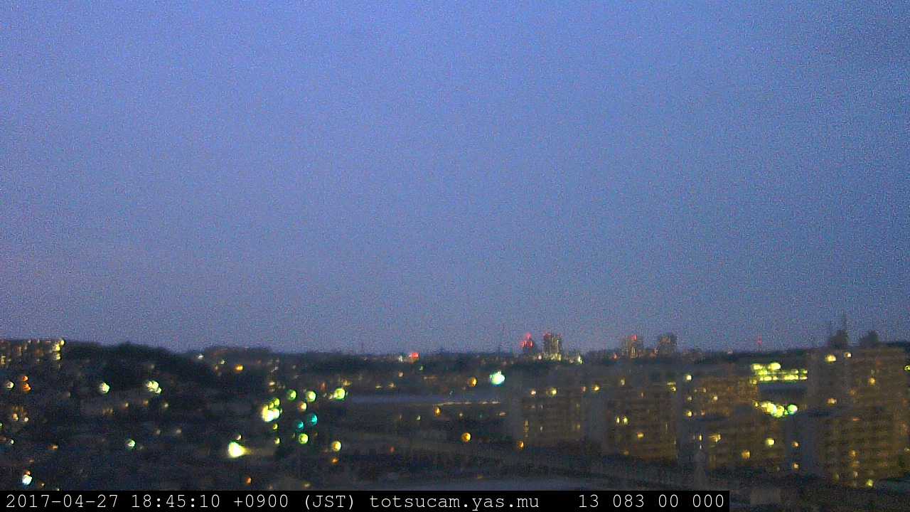 横浜市戸塚駅周辺から 東戸塚方面(北北東)を望む展望カメラの映像です。 左は現在の映像です。 下に並んでいるのは、 7日間に亘る日の出どき、昼間、夕暮れどきの写真(サムネイル)です。 それぞれ、日の出15分前、南中時、日没20分後の写真となっています。 各写真の下にはmpeg形式の動画へのリンクがあります。 それぞれ、日の出、南中、日没の前後1時間の画像です。 右欄にはその日24時間の動画へのリンクがあります。 この7日間以外は日付が一覧表示されています。 日付部分をクリックすると、 その日付から7日分が展開されて表示されます。