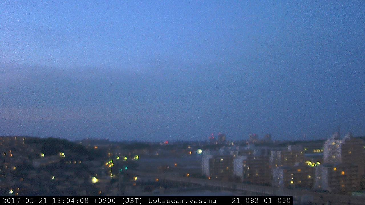 横浜市戸塚駅周辺から 東戸塚方面(北北東)を望む展望カメラの映像です。 左は現在の映像です。 下に並んでいるのは、 7日間に亘る日の出どき、昼間、夕暮れどきの写真(サムネイル)です。 それぞれ、日の出15分前、南中時、日没20分後の写真となっています。 各写真の下にはmpeg形式の動画へのリンクがあります。 それぞれ、日の出、南中、日没の前後1時間の画像です。 右欄にはその日24時間の動画へのリンクがあります。 この7日間以外は日付が一覧表示されています。 日付部分をクリックすると、 その日付から7日分が展開されて表示されます。