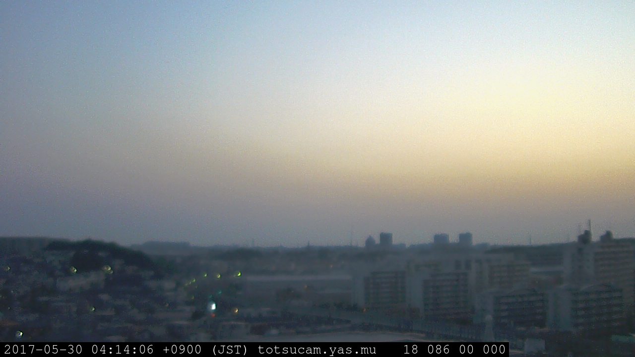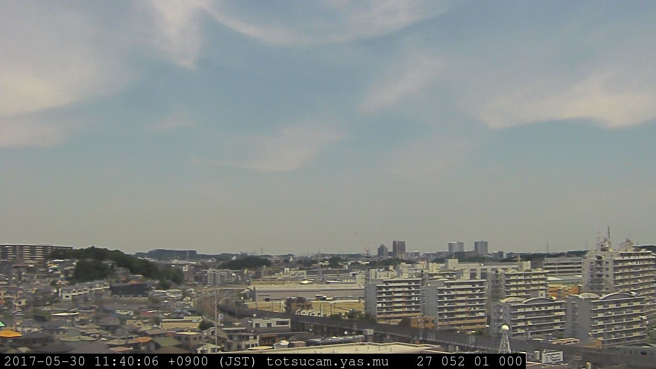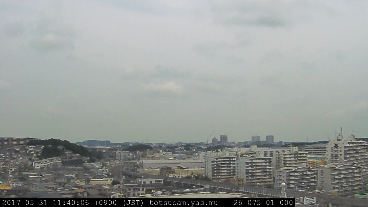 横浜市戸塚駅周辺から 東戸塚方面(北北東)を望む展望カメラの映像です。 左は現在の映像です。 下に並んでいるのは、 7日間に亘る日の出どき、昼間、夕暮れどきの写真(サムネイル)です。 それぞれ、日の出15分前、南中時、日没20分後の写真となっています。 各写真の下にはmpeg形式の動画へのリンクがあります。 それぞれ、日の出、南中、日没の前後1時間の画像です。 右欄にはその日24時間の動画へのリンクがあります。 この7日間以外は日付が一覧表示されています。 日付部分をクリックすると、 その日付から7日分が展開されて表示されます。