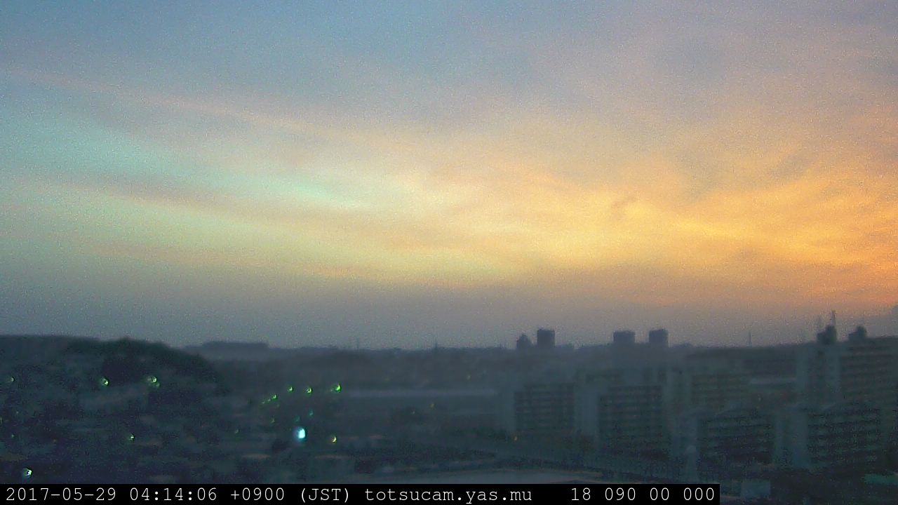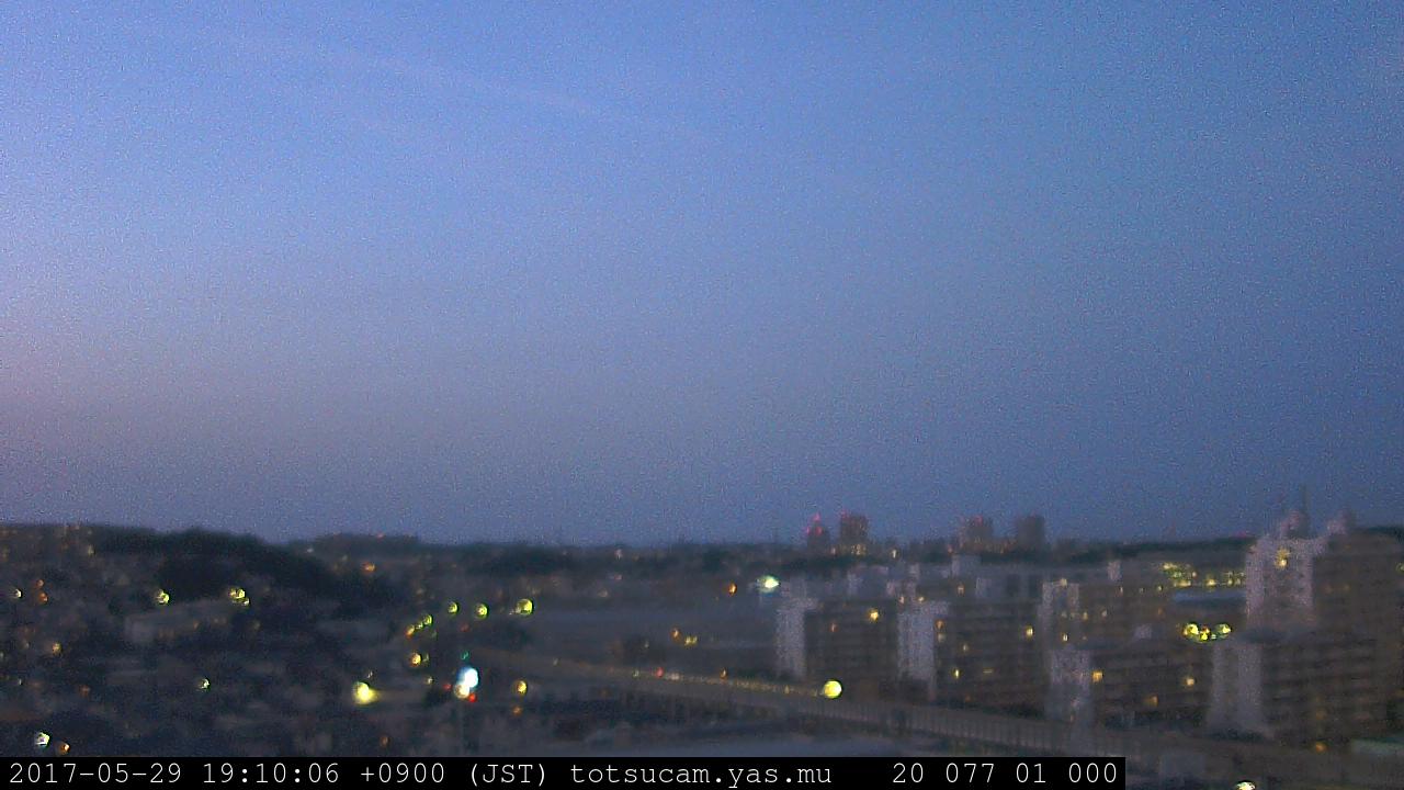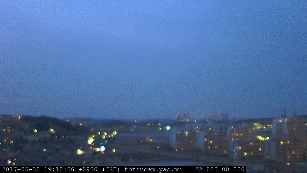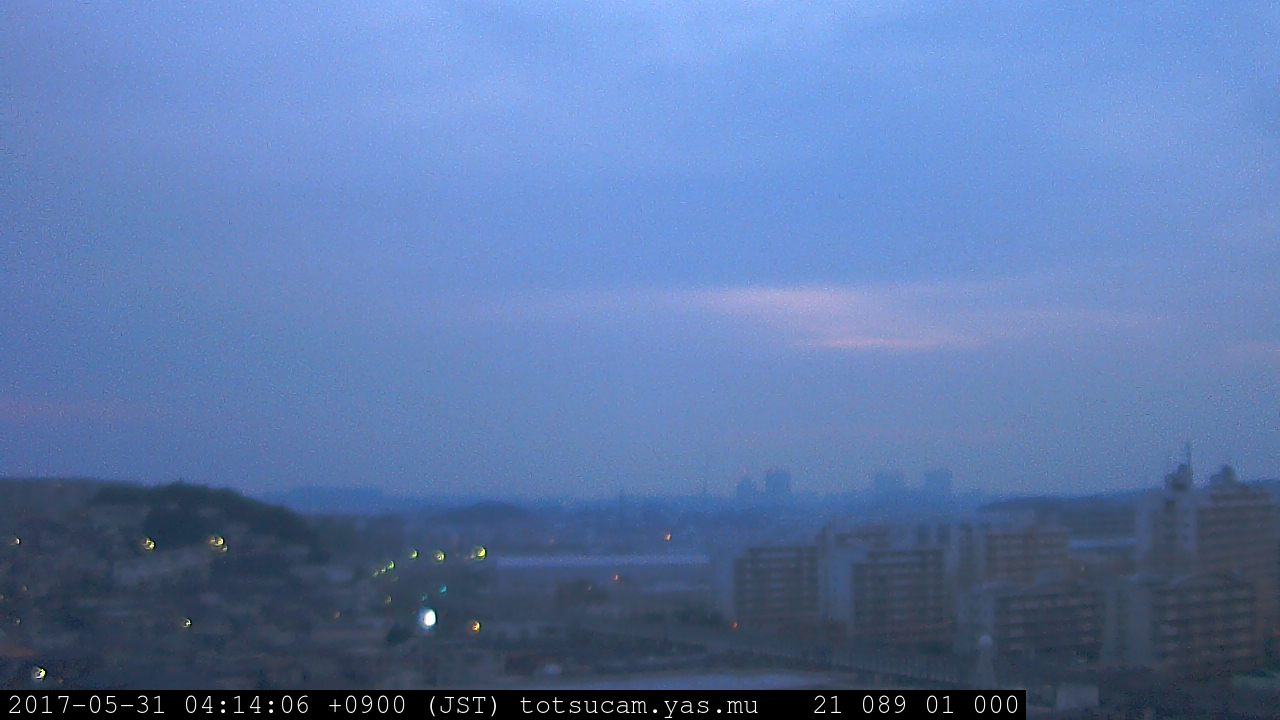 横浜市戸塚駅周辺から 東戸塚方面(北北東)を望む展望カメラの映像です。 左は現在の映像です。 下に並んでいるのは、 7日間に亘る日の出どき、昼間、夕暮れどきの写真(サムネイル)です。 それぞれ、日の出15分前、南中時、日没20分後の写真となっています。 各写真の下にはmpeg形式の動画へのリンクがあります。 それぞれ、日の出、南中、日没の前後1時間の画像です。 右欄にはその日24時間の動画へのリンクがあります。 この7日間以外は日付が一覧表示されています。 日付部分をクリックすると、 その日付から7日分が展開されて表示されます。
