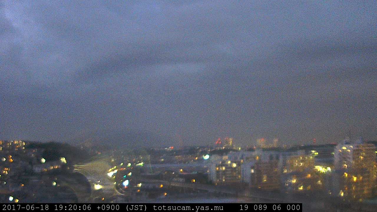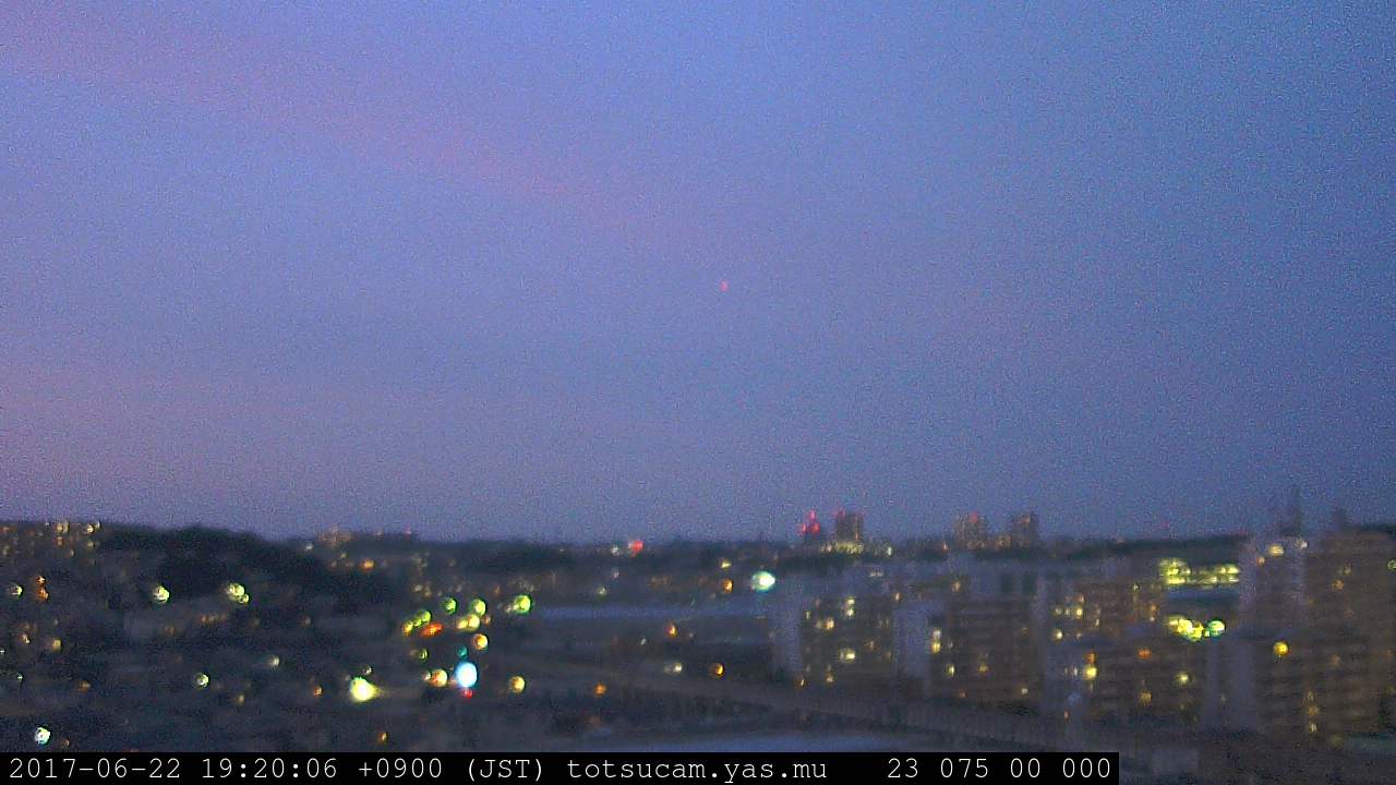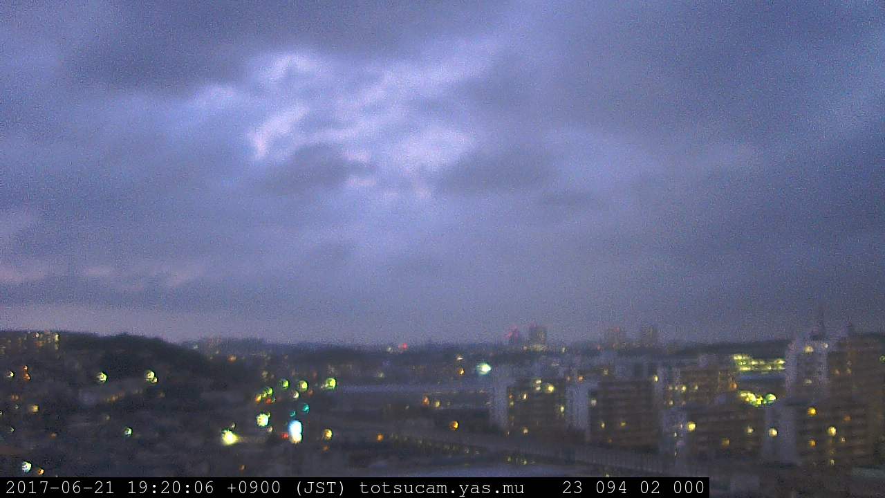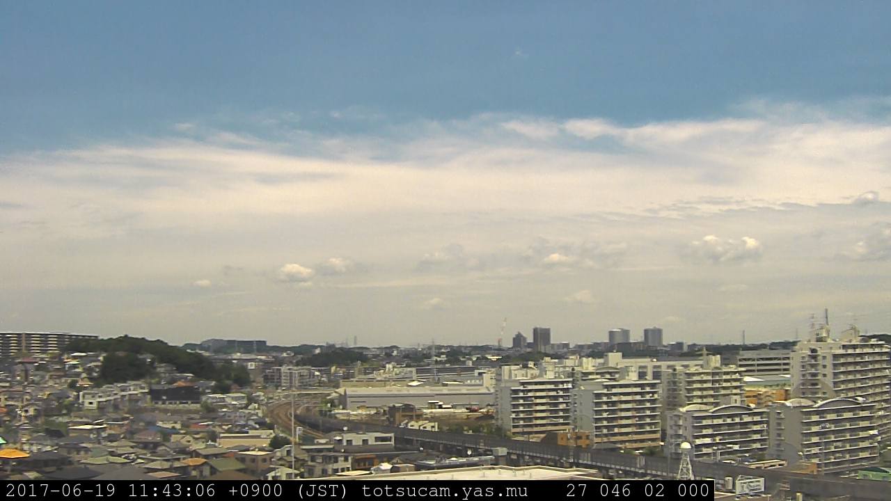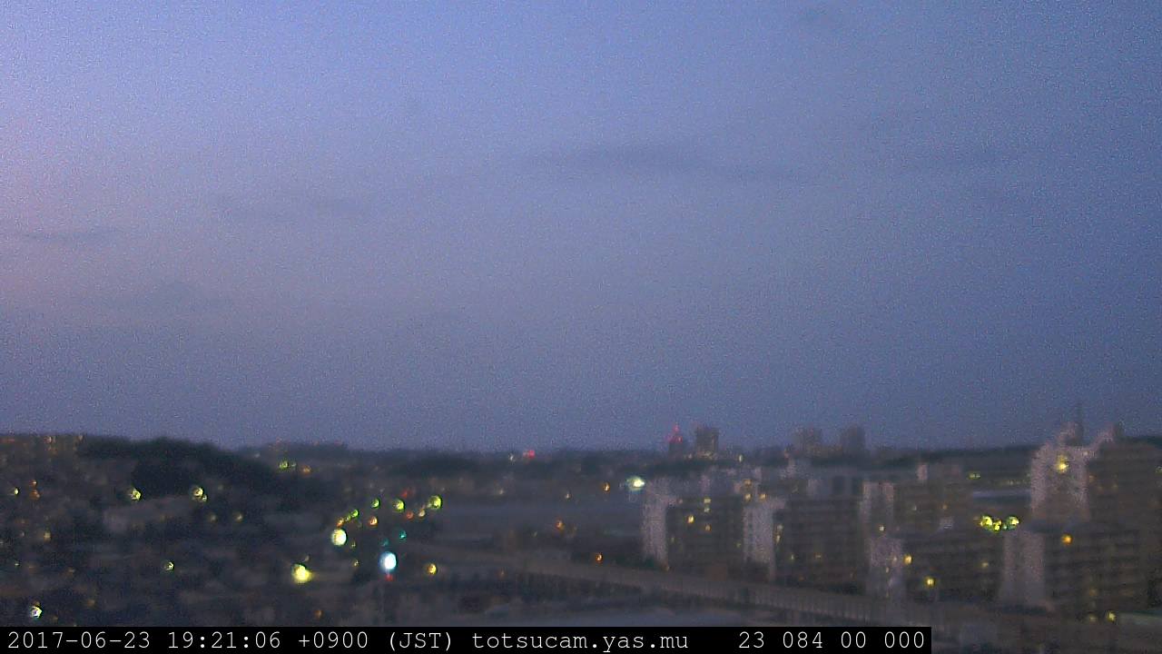 横浜市戸塚駅周辺から 東戸塚方面(北北東)を望む展望カメラの映像です。 左は現在の映像です。 下に並んでいるのは、 7日間に亘る日の出どき、昼間、夕暮れどきの写真(サムネイル)です。 それぞれ、日の出15分前、南中時、日没20分後の写真となっています。 各写真の下にはmpeg形式の動画へのリンクがあります。 それぞれ、日の出、南中、日没の前後1時間の画像です。 右欄にはその日24時間の動画へのリンクがあります。 この7日間以外は日付が一覧表示されています。 日付部分をクリックすると、 その日付から7日分が展開されて表示されます。
