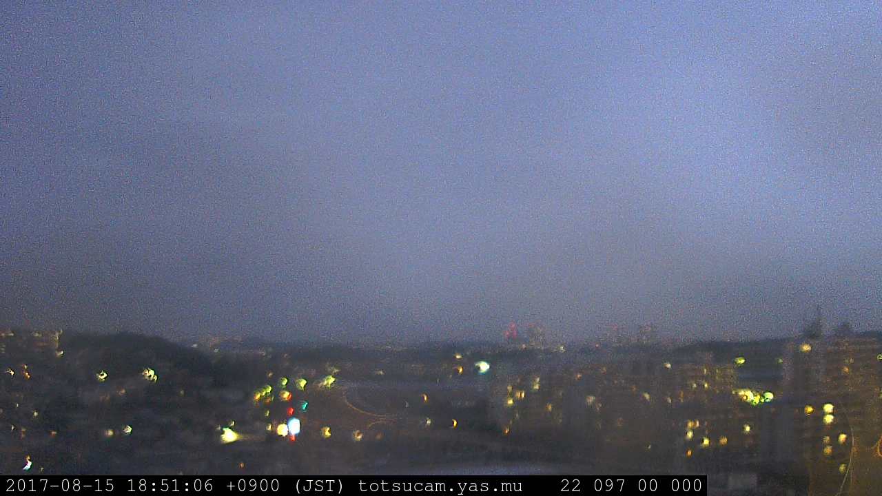 横浜市戸塚駅周辺から 東戸塚方面(北北東)を望む展望カメラの映像です。 左は現在の映像です。 下に並んでいるのは、 7日間に亘る日の出どき、昼間、夕暮れどきの写真(サムネイル)です。 それぞれ、日の出15分前、南中時、日没20分後の写真となっています。 各写真の下にはmpeg形式の動画へのリンクがあります。 それぞれ、日の出、南中、日没の前後1時間の画像です。 右欄にはその日24時間の動画へのリンクがあります。 この7日間以外は日付が一覧表示されています。 日付部分をクリックすると、 その日付から7日分が展開されて表示されます。