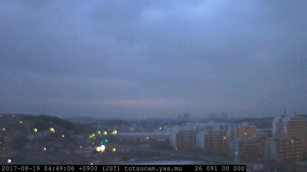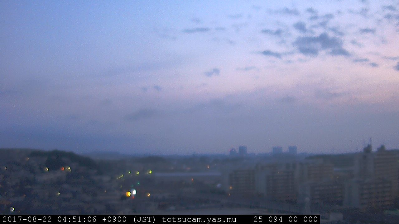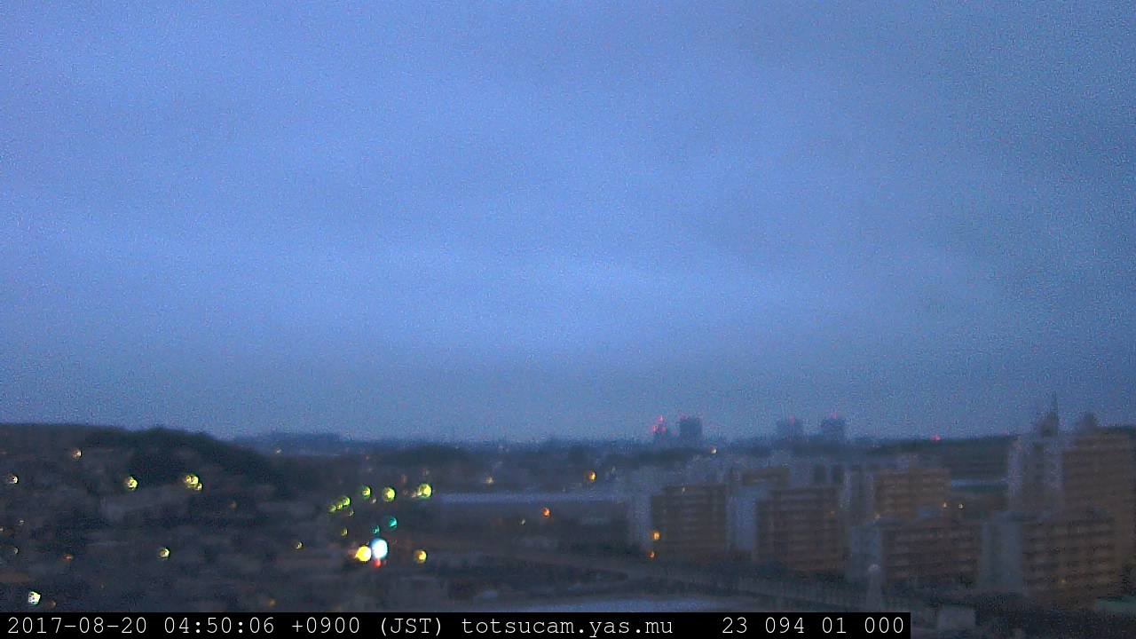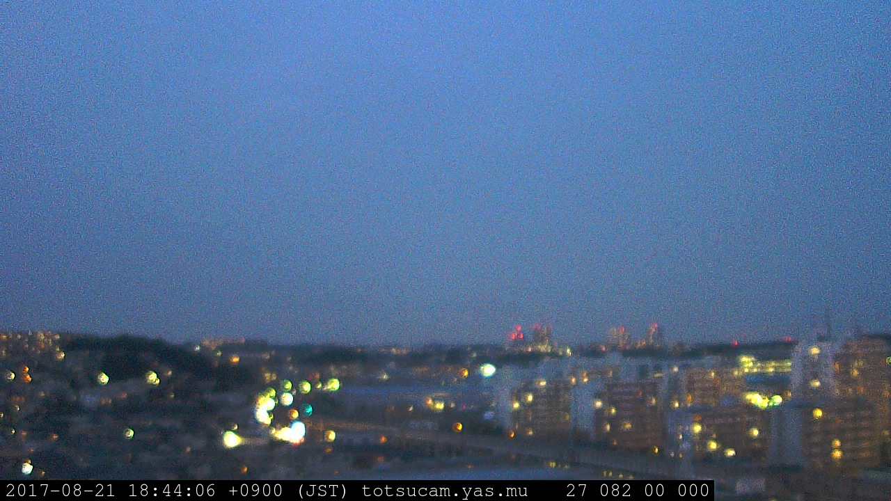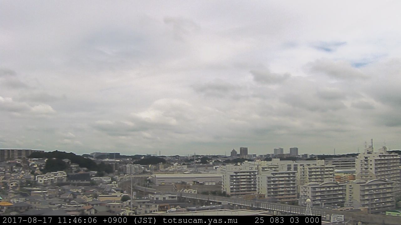 横浜市戸塚駅周辺から 東戸塚方面(北北東)を望む展望カメラの映像です。 左は現在の映像です。 下に並んでいるのは、 7日間に亘る日の出どき、昼間、夕暮れどきの写真(サムネイル)です。 それぞれ、日の出15分前、南中時、日没20分後の写真となっています。 各写真の下にはmpeg形式の動画へのリンクがあります。 それぞれ、日の出、南中、日没の前後1時間の画像です。 右欄にはその日24時間の動画へのリンクがあります。 この7日間以外は日付が一覧表示されています。 日付部分をクリックすると、 その日付から7日分が展開されて表示されます。