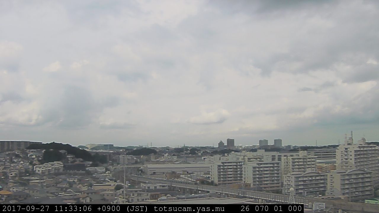 適度に曇った日の雲の動き (例: 2005-10-24) がとても楽しめます。 正面を横切っている高架は横須賀線下りです。 その下に横須賀線上り、東海道線、同貨物線が走っていますが、 高架に隠れていてよく見えません。 夜間は特に中央左寄りの車の動きがよく見えます。
