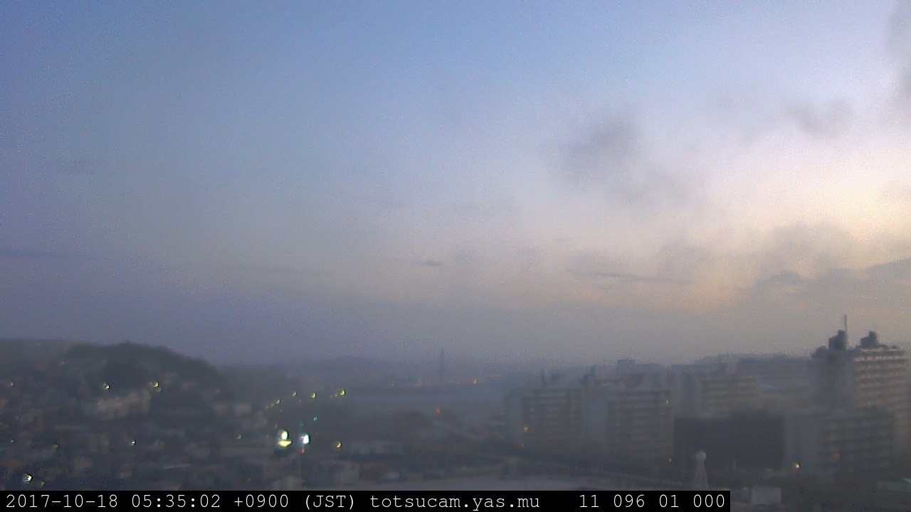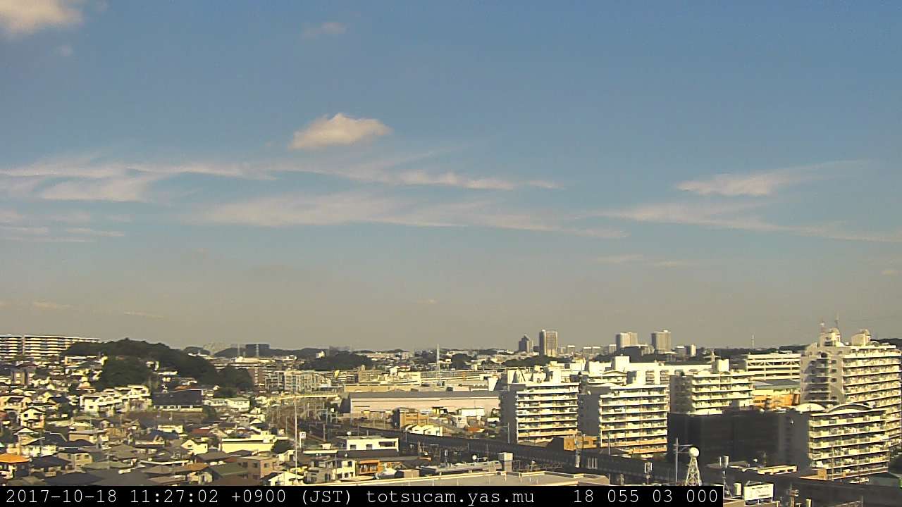 横浜市戸塚駅周辺から 東戸塚方面(北北東)を望む展望カメラの映像です。 左は現在の映像です。 下に並んでいるのは、 7日間に亘る日の出どき、昼間、夕暮れどきの写真(サムネイル)です。 それぞれ、日の出15分前、南中時、日没20分後の写真となっています。 各写真の下にはmpeg形式の動画へのリンクがあります。 それぞれ、日の出、南中、日没の前後1時間の画像です。 右欄にはその日24時間の動画へのリンクがあります。 この7日間以外は日付が一覧表示されています。 日付部分をクリックすると、 その日付から7日分が展開されて表示されます。