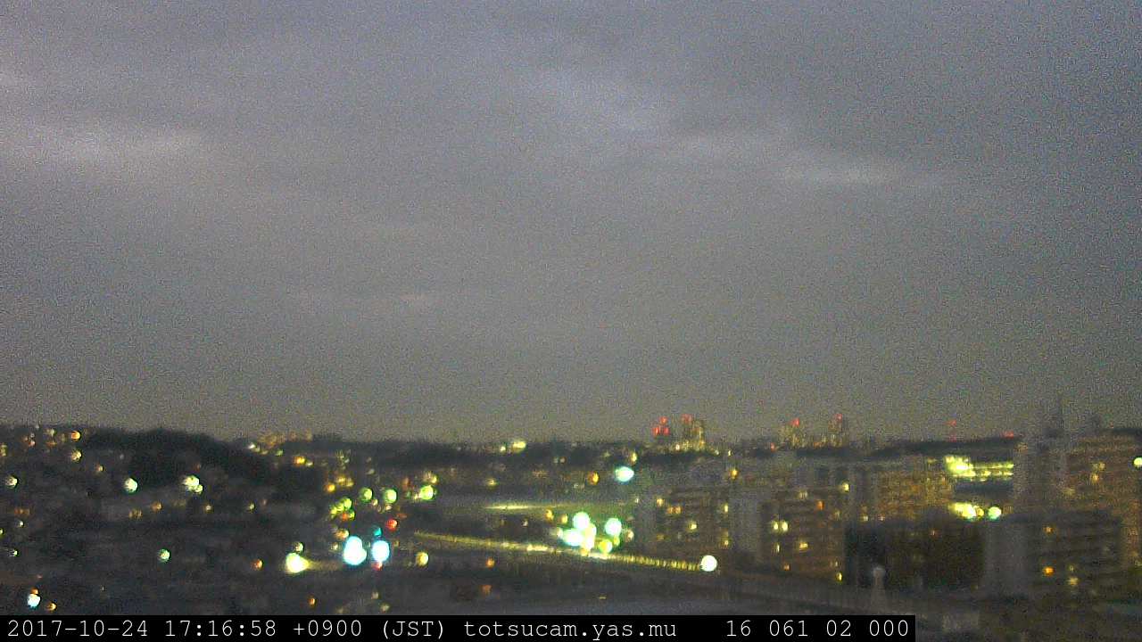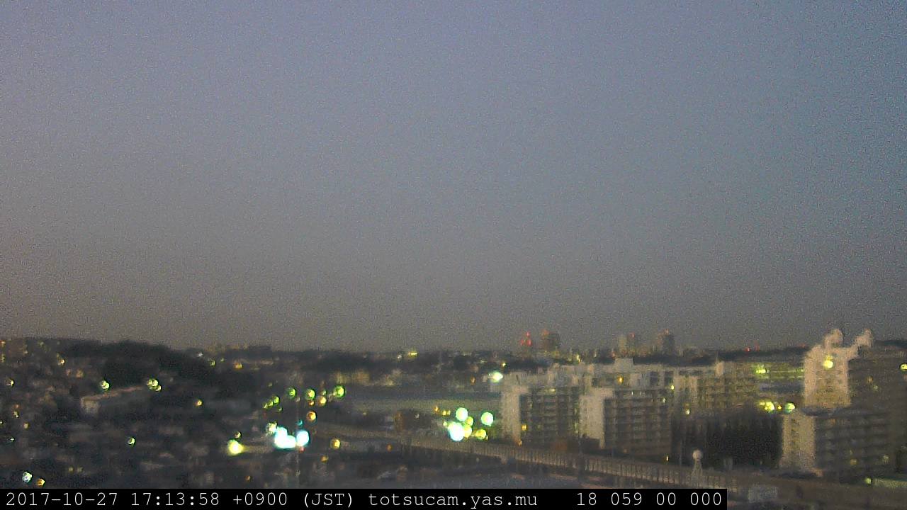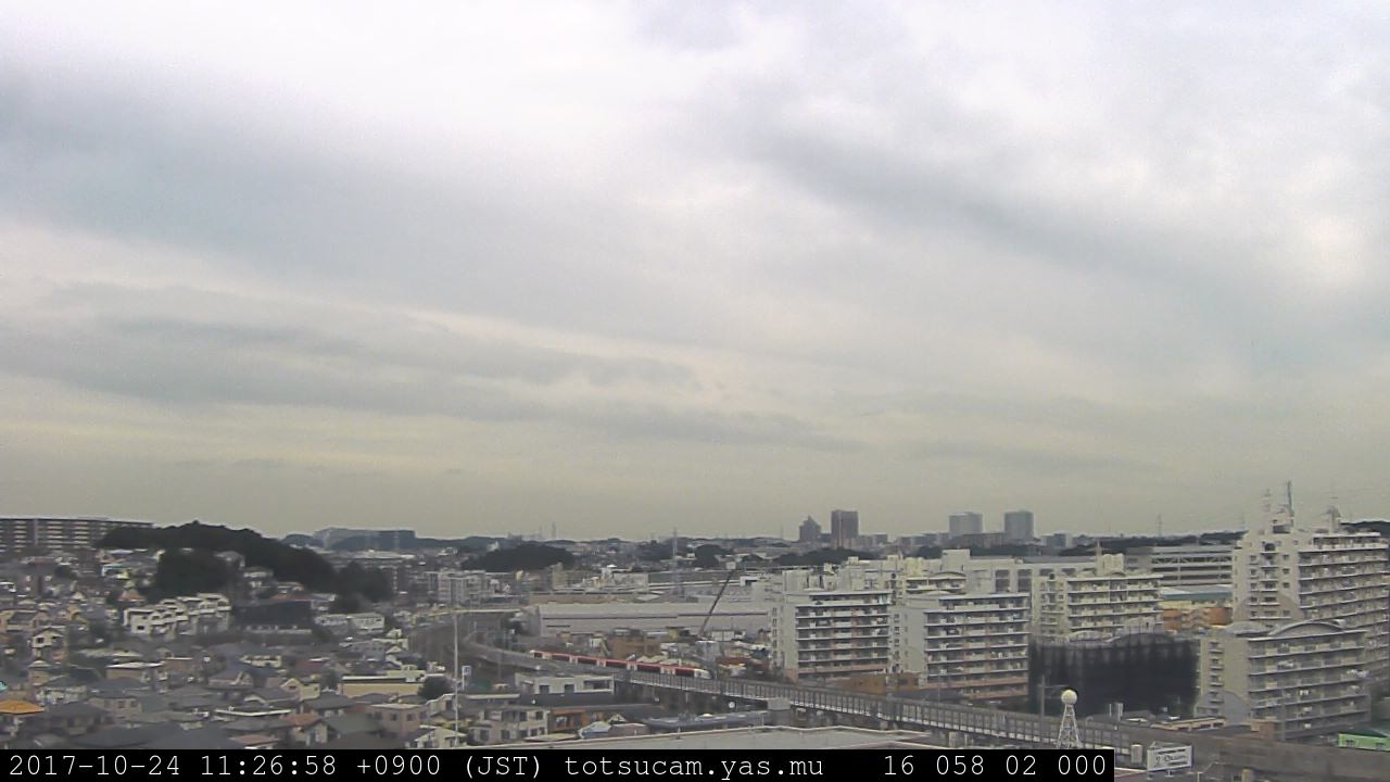 適度に曇った日の雲の動き (例: 2005-10-24) がとても楽しめます。 正面を横切っている高架は横須賀線下りです。 その下に横須賀線上り、東海道線、同貨物線が走っていますが、 高架に隠れていてよく見えません。 夜間は特に中央左寄りの車の動きがよく見えます。