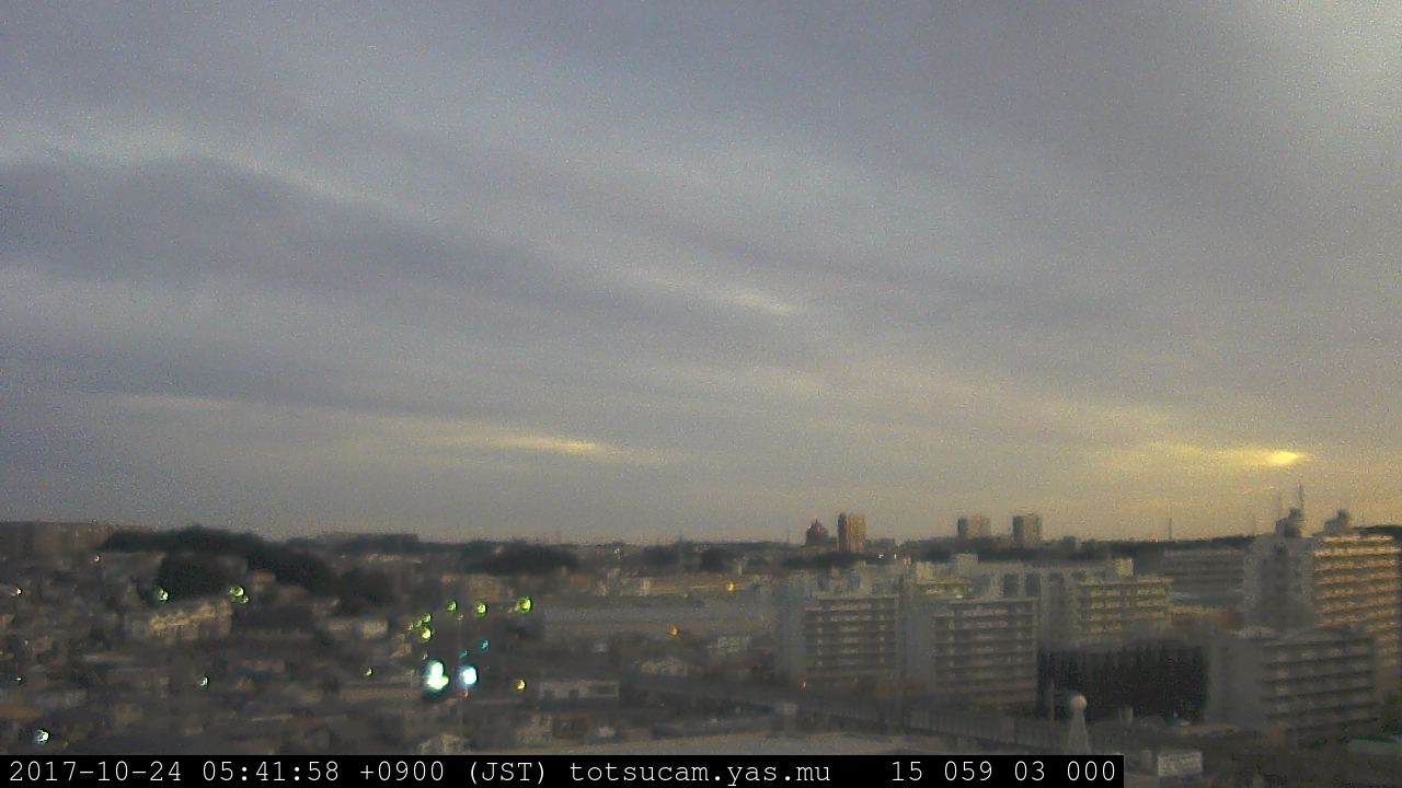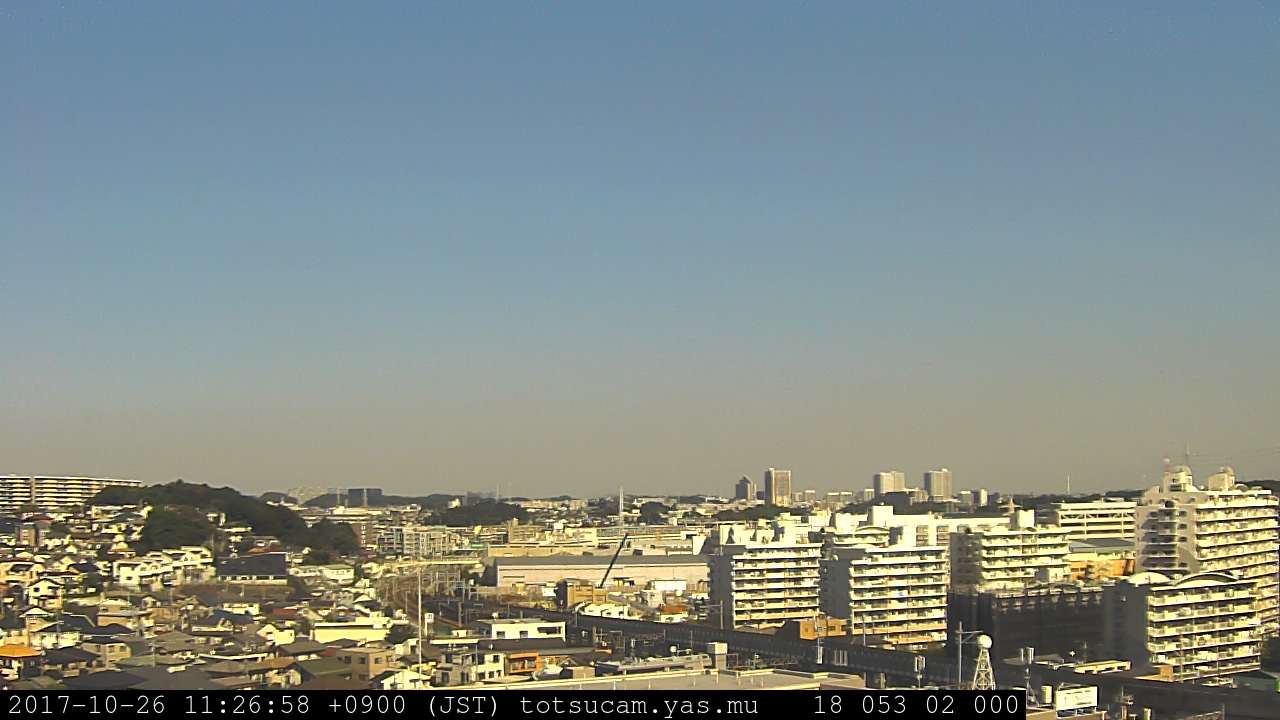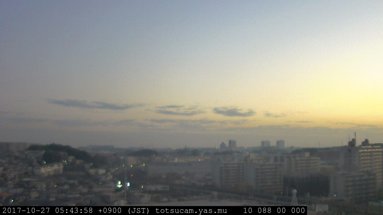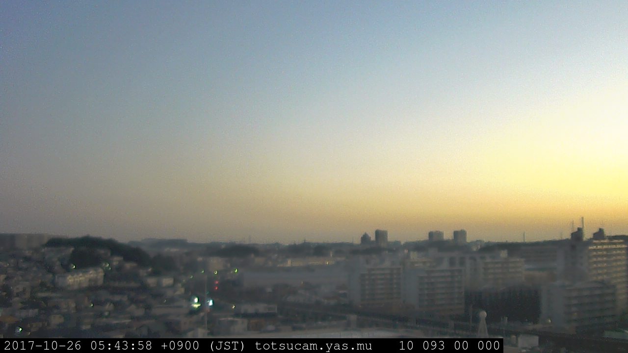 横浜市戸塚駅周辺から 東戸塚方面(北北東)を望む展望カメラの映像です。 左は現在の映像です。 下に並んでいるのは、 7日間に亘る日の出どき、昼間、夕暮れどきの写真(サムネイル)です。 それぞれ、日の出15分前、南中時、日没20分後の写真となっています。 各写真の下にはmpeg形式の動画へのリンクがあります。 それぞれ、日の出、南中、日没の前後1時間の画像です。 右欄にはその日24時間の動画へのリンクがあります。 この7日間以外は日付が一覧表示されています。 日付部分をクリックすると、 その日付から7日分が展開されて表示されます。