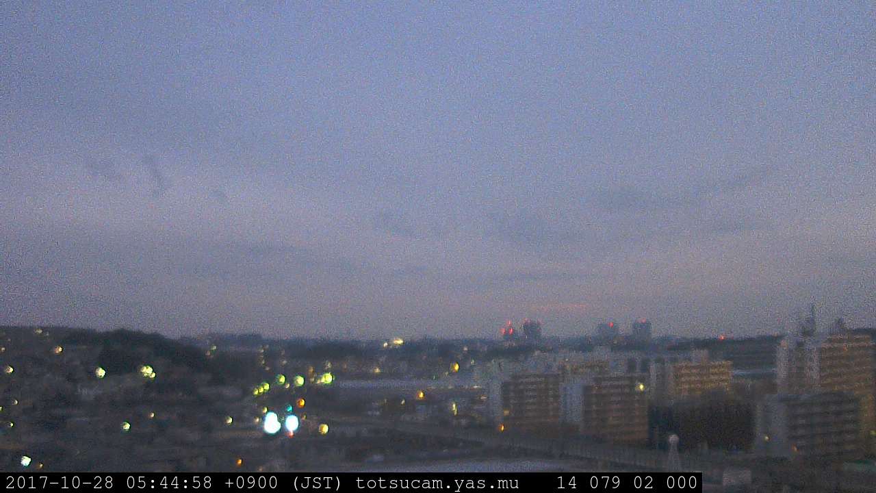 横浜市戸塚駅周辺から 東戸塚方面(北北東)を望む展望カメラの映像です。 左は現在の映像です。 下に並んでいるのは、 7日間に亘る日の出どき、昼間、夕暮れどきの写真(サムネイル)です。 それぞれ、日の出15分前、南中時、日没20分後の写真となっています。 各写真の下にはmpeg形式の動画へのリンクがあります。 それぞれ、日の出、南中、日没の前後1時間の画像です。 右欄にはその日24時間の動画へのリンクがあります。 この7日間以外は日付が一覧表示されています。 日付部分をクリックすると、 その日付から7日分が展開されて表示されます。