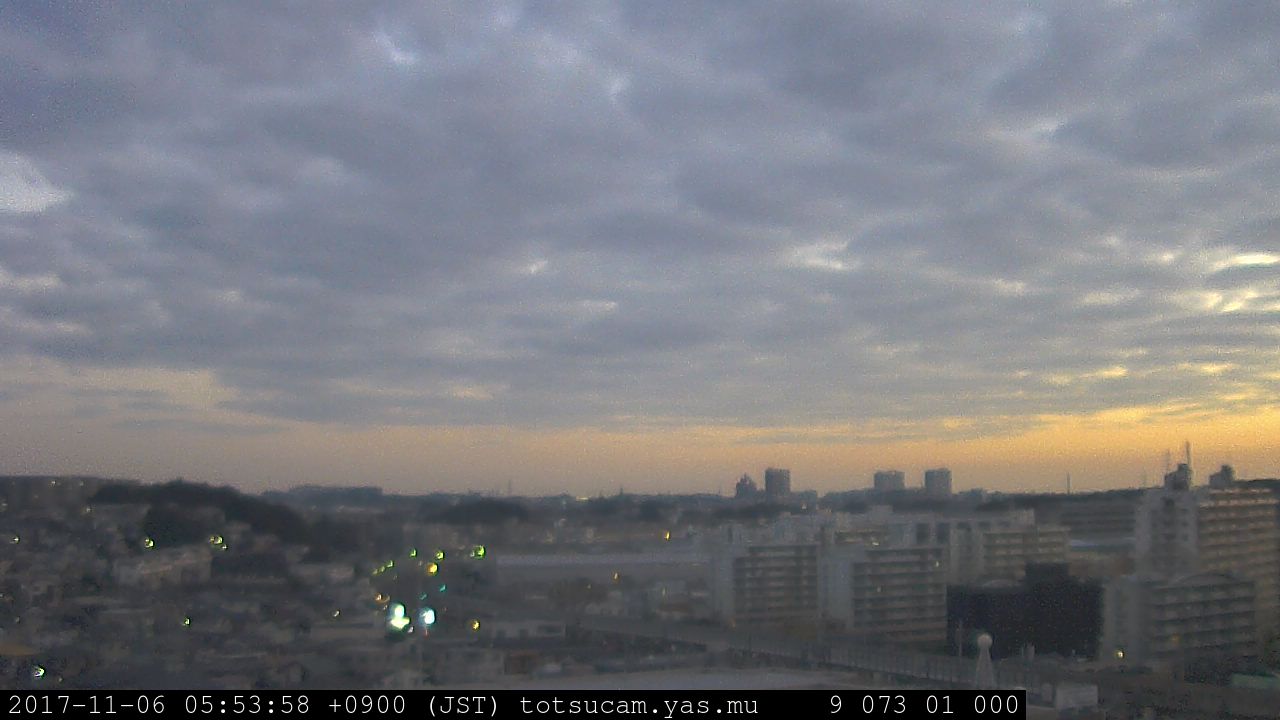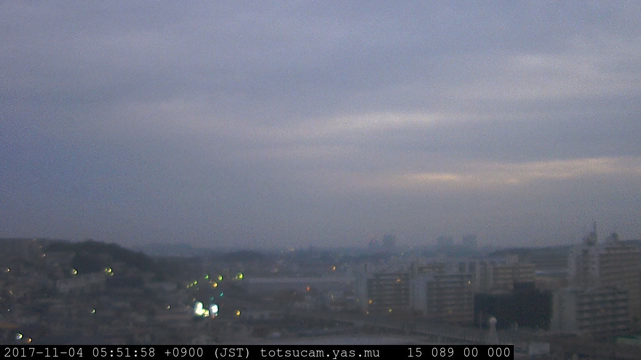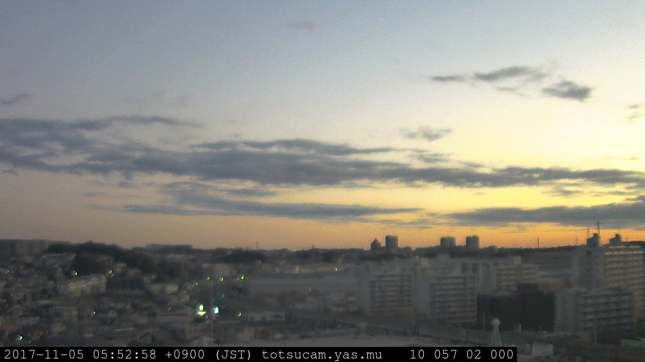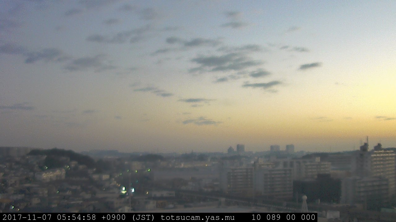 横浜市戸塚駅周辺から 東戸塚方面(北北東)を望む展望カメラの映像です。 左は現在の映像です。 下に並んでいるのは、 7日間に亘る日の出どき、昼間、夕暮れどきの写真(サムネイル)です。 それぞれ、日の出15分前、南中時、日没20分後の写真となっています。 各写真の下にはmpeg形式の動画へのリンクがあります。 それぞれ、日の出、南中、日没の前後1時間の画像です。 右欄にはその日24時間の動画へのリンクがあります。 この7日間以外は日付が一覧表示されています。 日付部分をクリックすると、 その日付から7日分が展開されて表示されます。