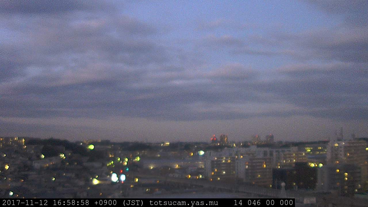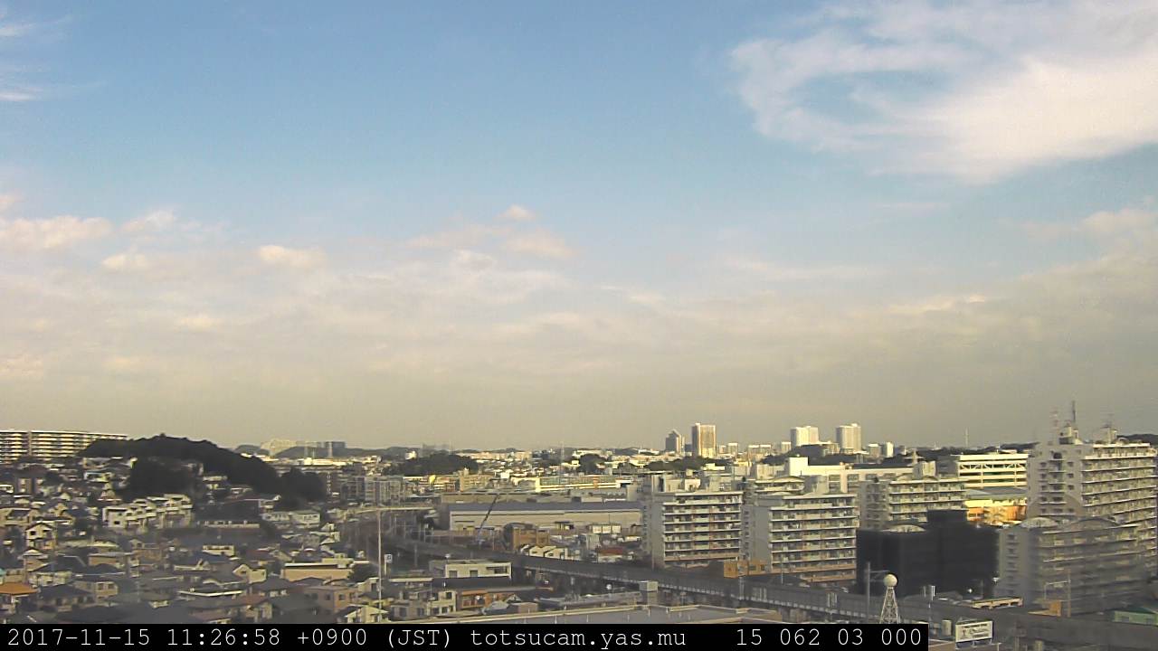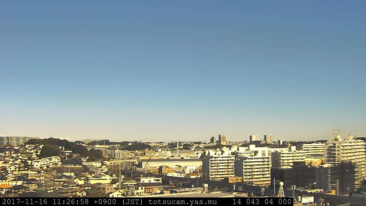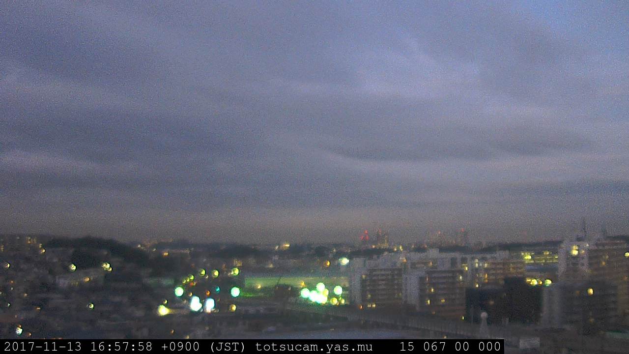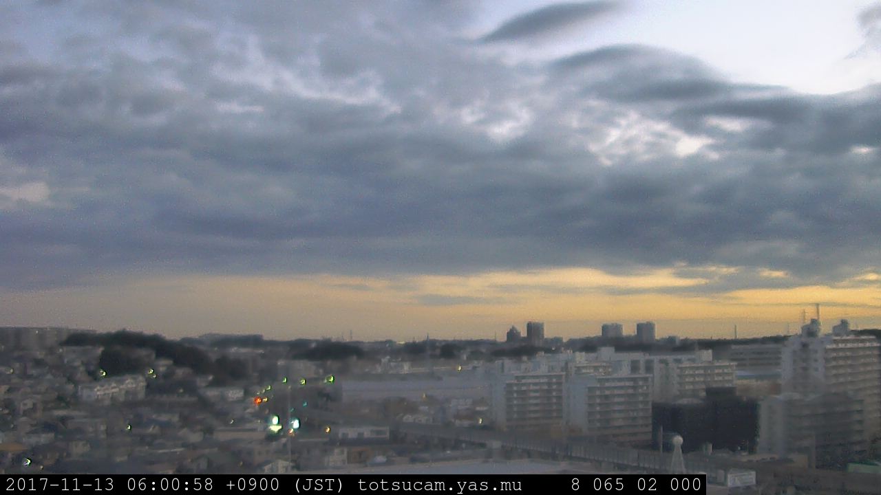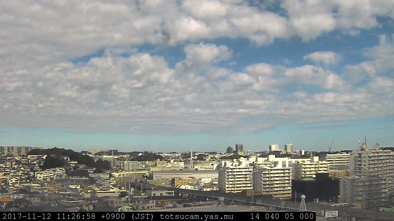 横浜市戸塚駅周辺から 東戸塚方面(北北東)を望む展望カメラの映像です。 左は現在の映像です。 下に並んでいるのは、 7日間に亘る日の出どき、昼間、夕暮れどきの写真(サムネイル)です。 それぞれ、日の出15分前、南中時、日没20分後の写真となっています。 各写真の下にはmpeg形式の動画へのリンクがあります。 それぞれ、日の出、南中、日没の前後1時間の画像です。 右欄にはその日24時間の動画へのリンクがあります。 この7日間以外は日付が一覧表示されています。 日付部分をクリックすると、 その日付から7日分が展開されて表示されます。