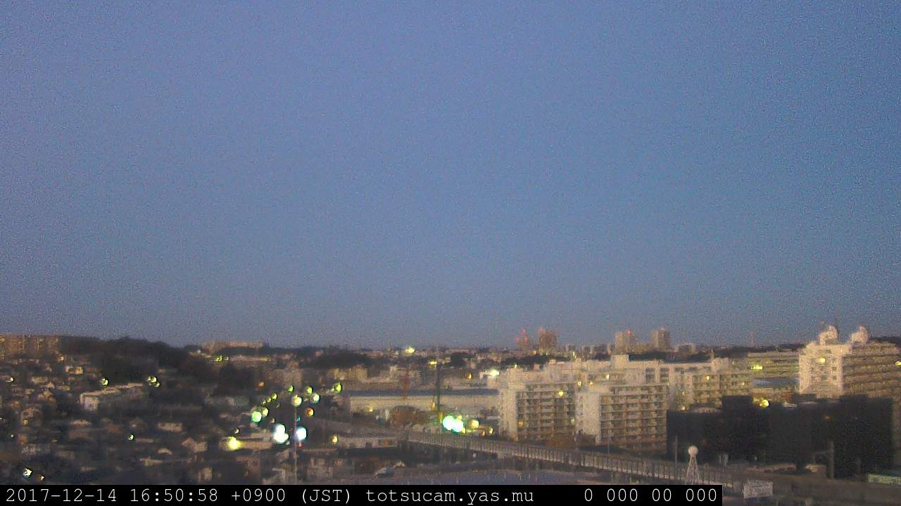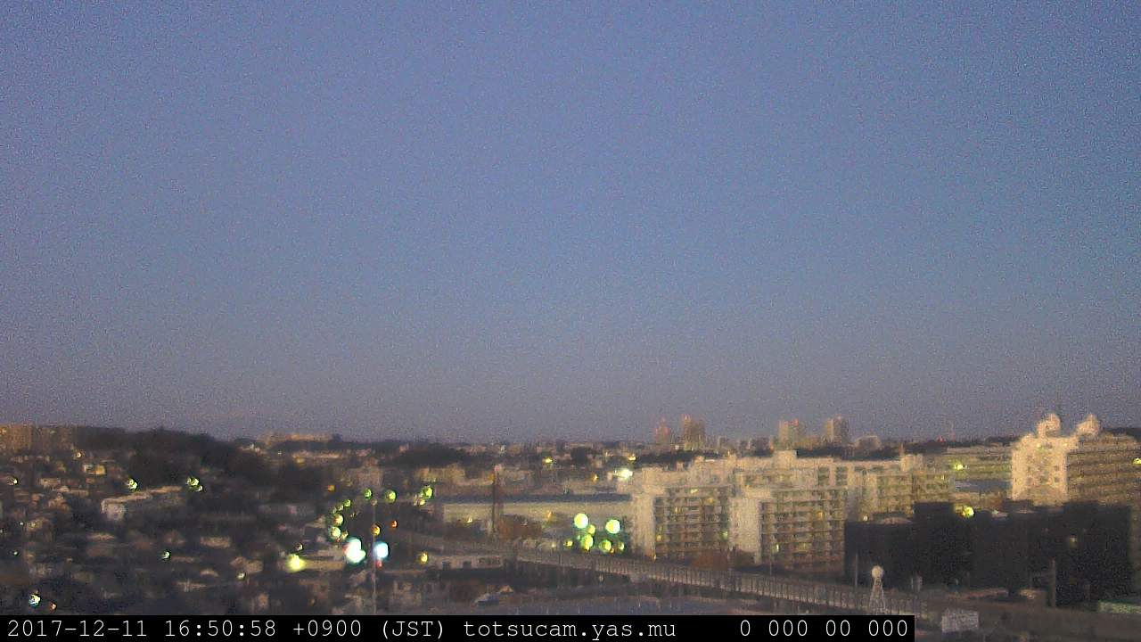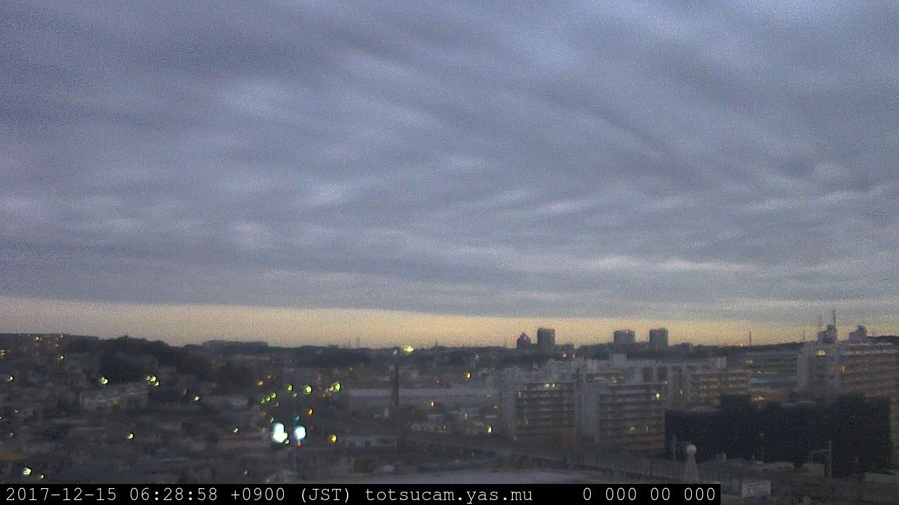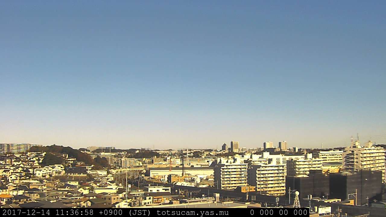 横浜市戸塚駅周辺から 東戸塚方面(北北東)を望む展望カメラの映像です。 左は現在の映像です。 下に並んでいるのは、 7日間に亘る日の出どき、昼間、夕暮れどきの写真(サムネイル)です。 それぞれ、日の出15分前、南中時、日没20分後の写真となっています。 各写真の下にはmpeg形式の動画へのリンクがあります。 それぞれ、日の出、南中、日没の前後1時間の画像です。 右欄にはその日24時間の動画へのリンクがあります。 この7日間以外は日付が一覧表示されています。 日付部分をクリックすると、 その日付から7日分が展開されて表示されます。