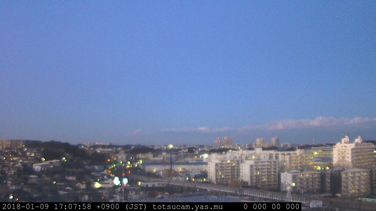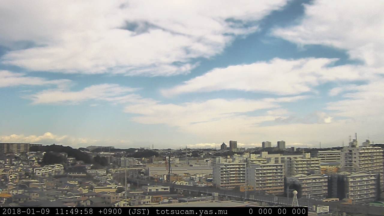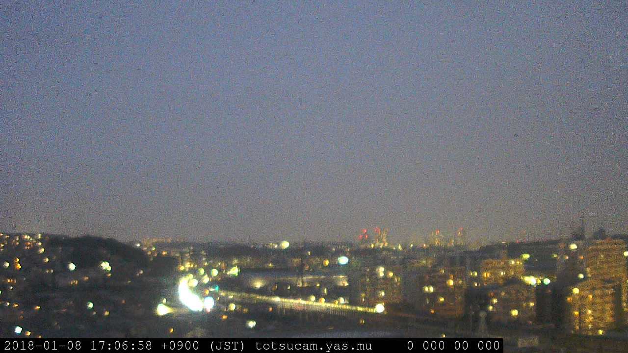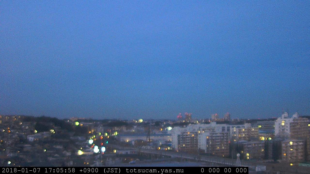横浜市戸塚駅周辺から 東戸塚方面(北北東)を望む展望カメラの映像です。 左は現在の映像です。 下に並んでいるのは、 7日間に亘る日の出どき、昼間、夕暮れどきの写真(サムネイル)です。 それぞれ、日の出15分前、南中時、日没20分後の写真となっています。 各写真の下にはmpeg形式の動画へのリンクがあります。 それぞれ、日の出、南中、日没の前後1時間の画像です。 右欄にはその日24時間の動画へのリンクがあります。 この7日間以外は日付が一覧表示されています。 日付部分をクリックすると、 その日付から7日分が展開されて表示されます。