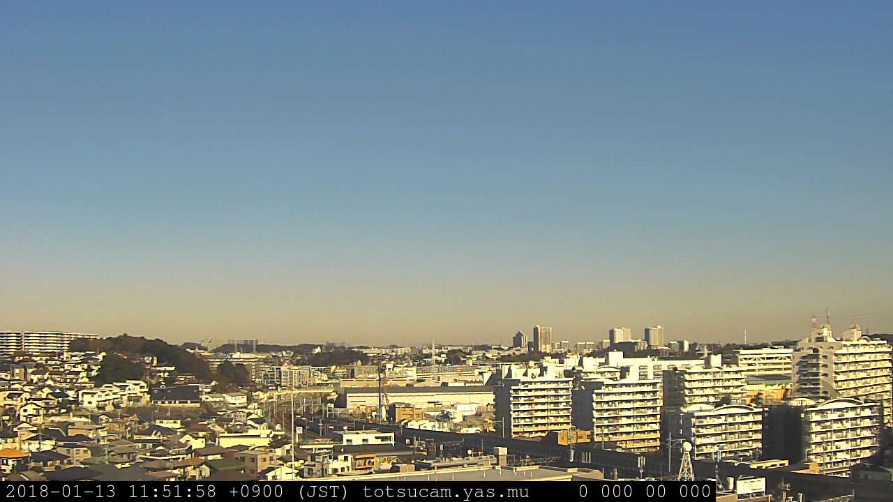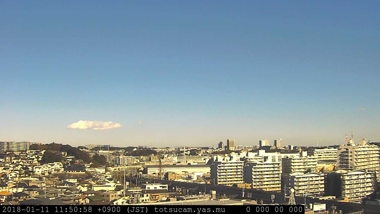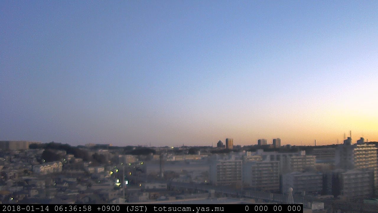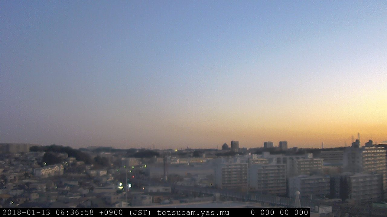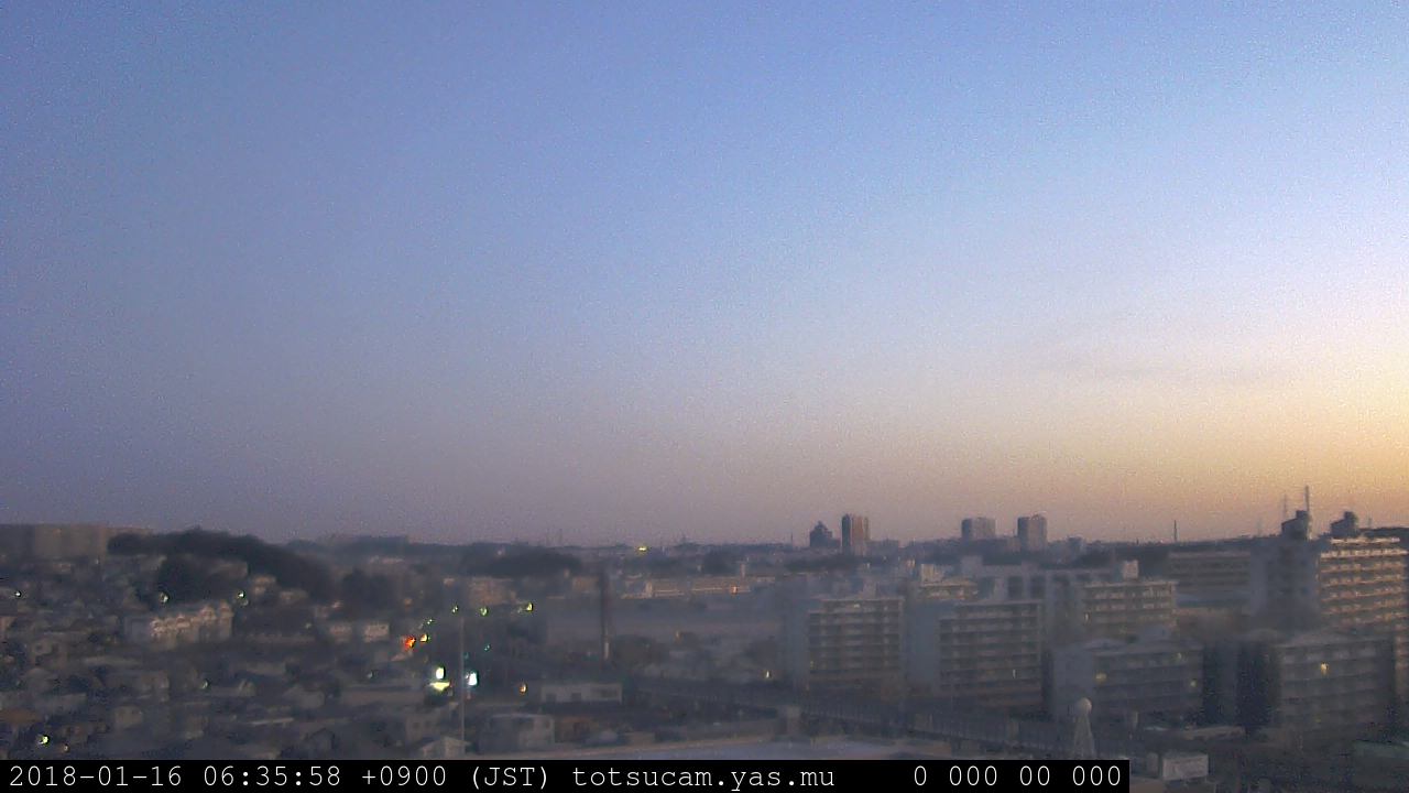 横浜市戸塚駅周辺から 東戸塚方面(北北東)を望む展望カメラの映像です。 左は現在の映像です。 下に並んでいるのは、 7日間に亘る日の出どき、昼間、夕暮れどきの写真(サムネイル)です。 それぞれ、日の出15分前、南中時、日没20分後の写真となっています。 各写真の下にはmpeg形式の動画へのリンクがあります。 それぞれ、日の出、南中、日没の前後1時間の画像です。 右欄にはその日24時間の動画へのリンクがあります。 この7日間以外は日付が一覧表示されています。 日付部分をクリックすると、 その日付から7日分が展開されて表示されます。