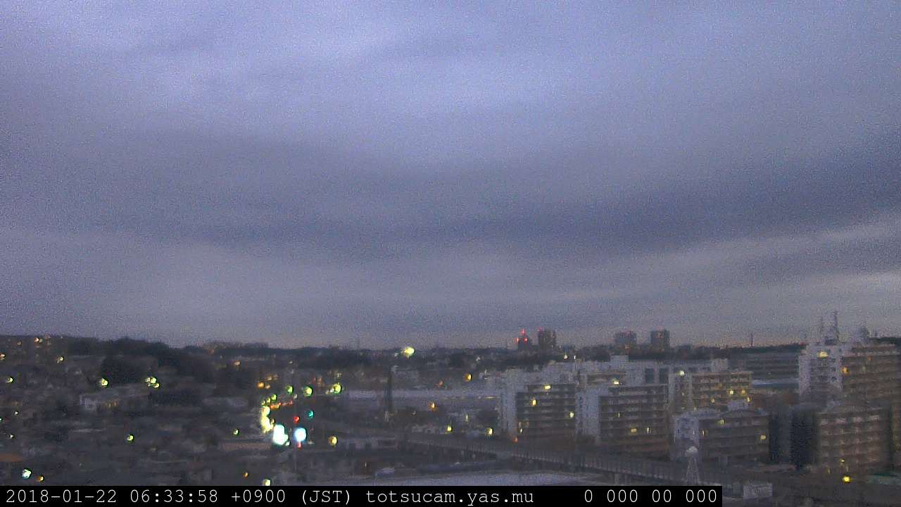 横浜市戸塚駅周辺から 東戸塚方面(北北東)を望む展望カメラの映像です。 左は現在の映像です。 下に並んでいるのは、 7日間に亘る日の出どき、昼間、夕暮れどきの写真(サムネイル)です。 それぞれ、日の出15分前、南中時、日没20分後の写真となっています。 各写真の下にはmpeg形式の動画へのリンクがあります。 それぞれ、日の出、南中、日没の前後1時間の画像です。 右欄にはその日24時間の動画へのリンクがあります。 この7日間以外は日付が一覧表示されています。 日付部分をクリックすると、 その日付から7日分が展開されて表示されます。